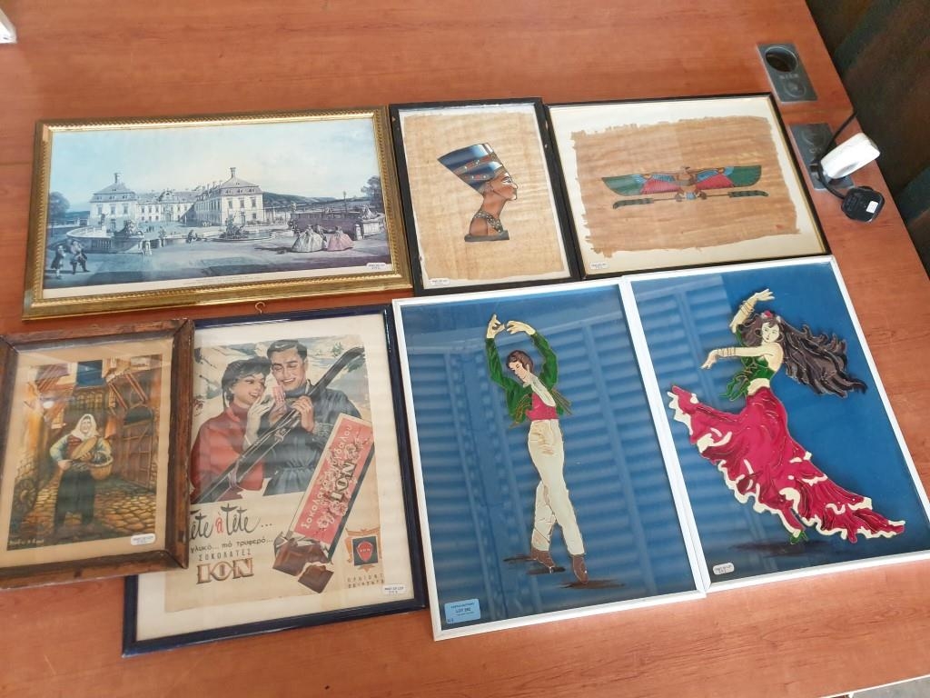 Collection of 7 x Assorted Framed Pictures inc; 2 x Egyptian Papyrus, Pair of Flamingo Dancers, Vintage Greek Advert etc (7)