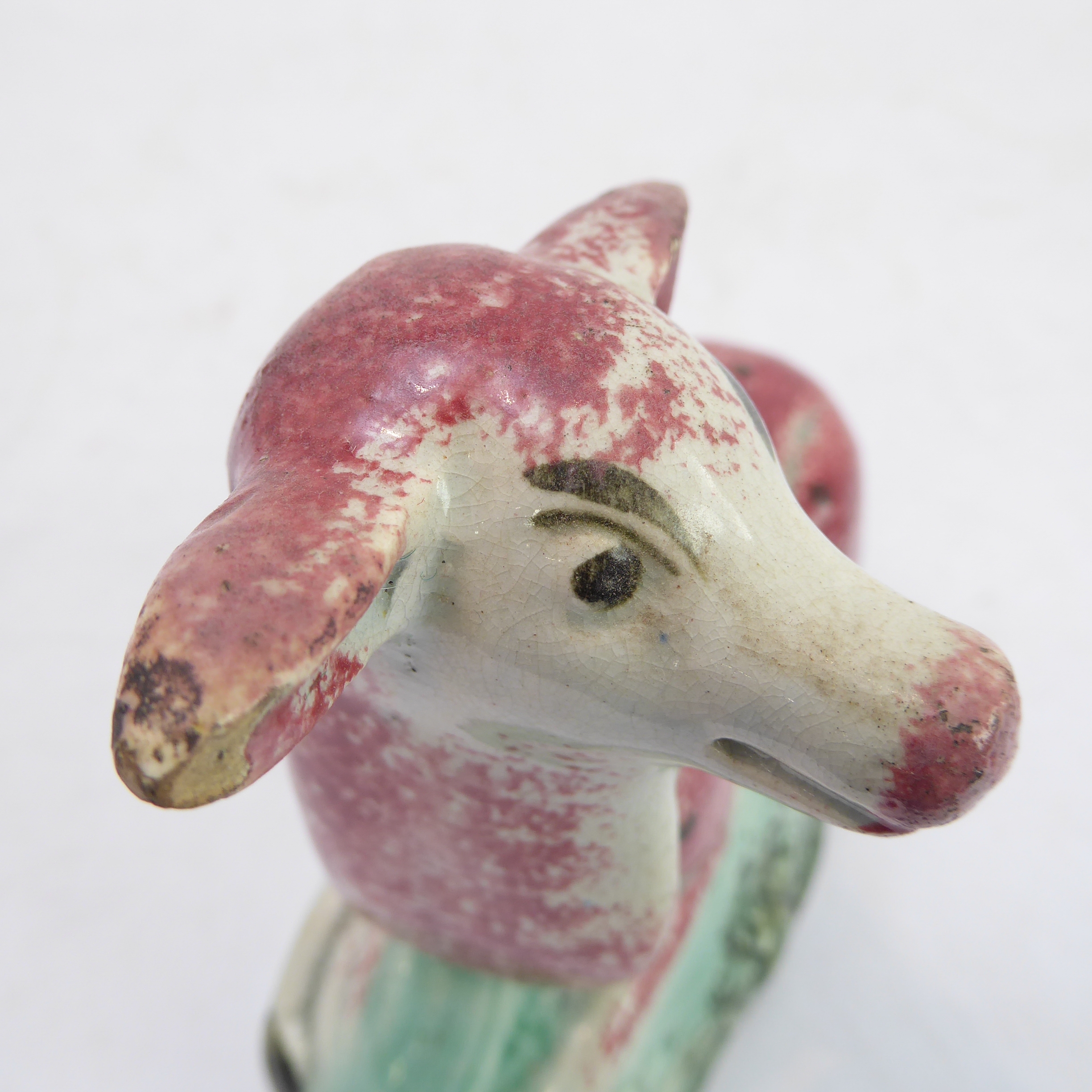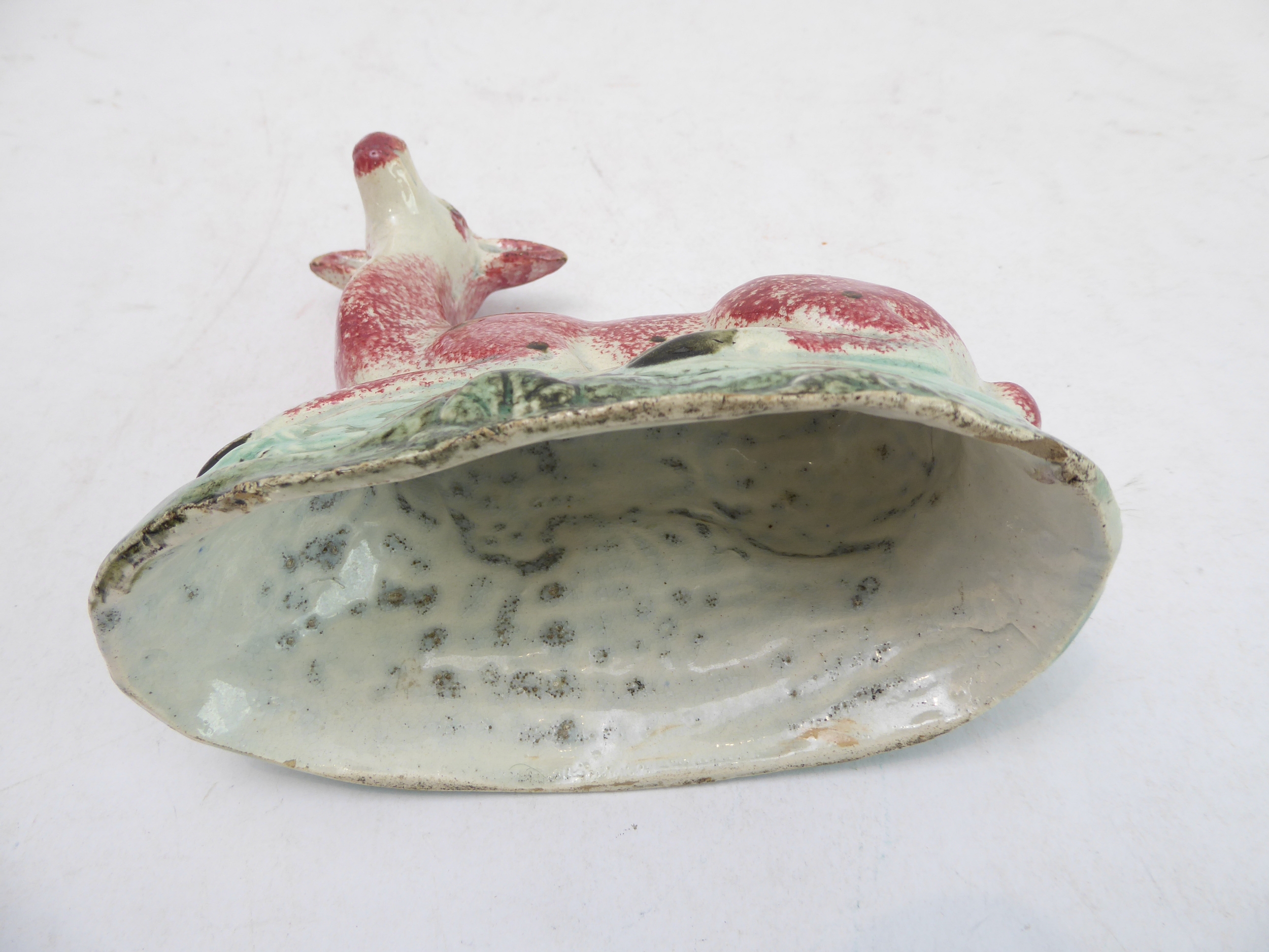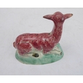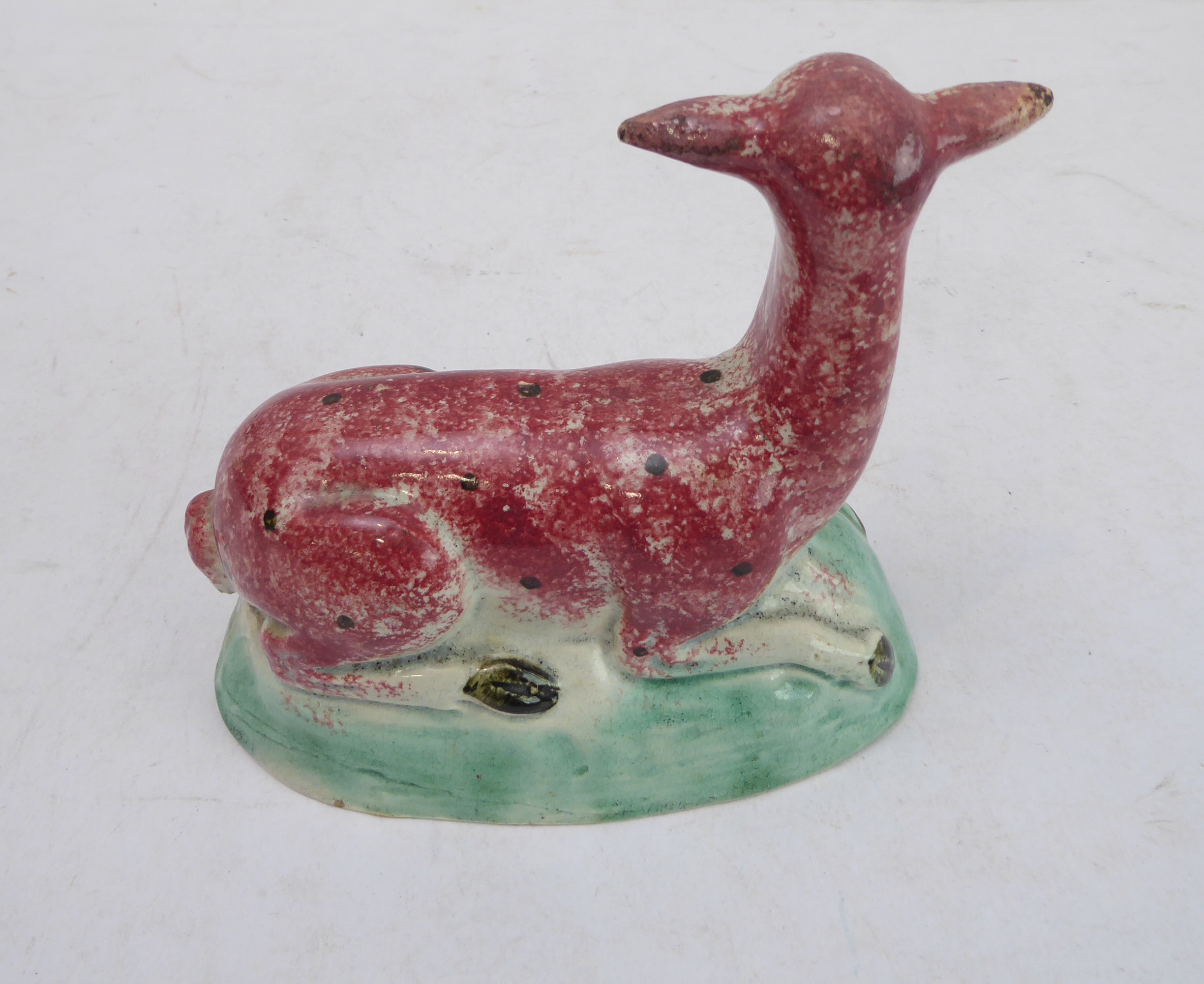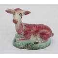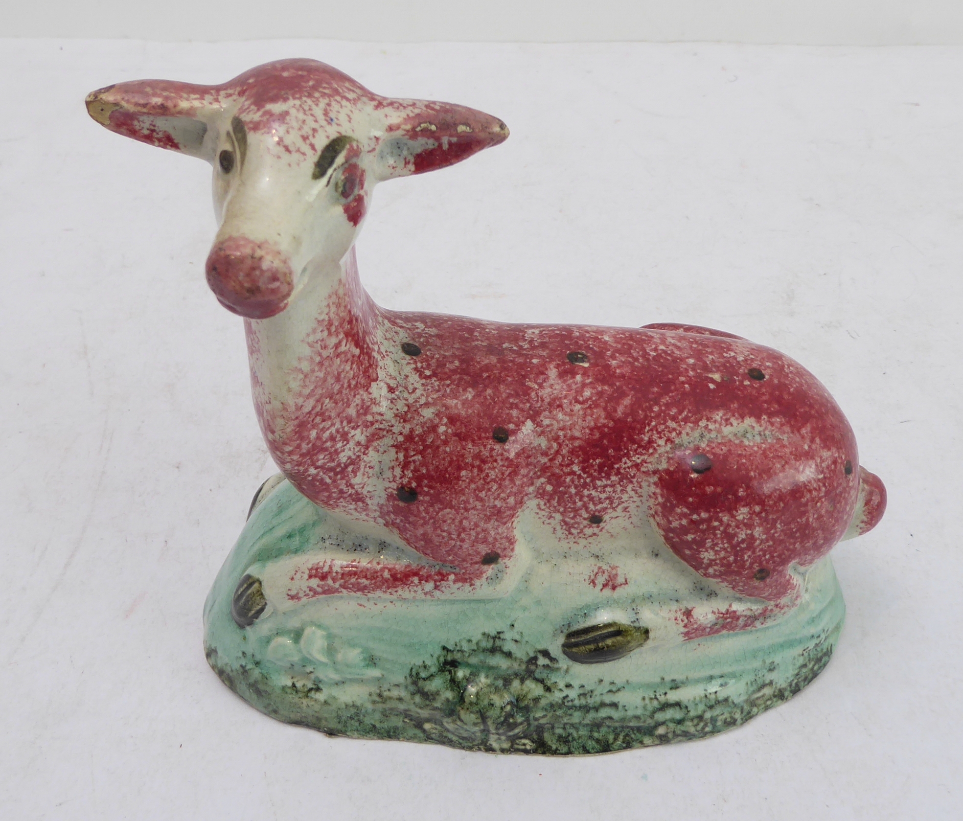 A late 18th to early 19th century Staffordshire pearlware model of a recumbent deer (14 x 7.4 x 14 cm)