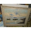 Large framed coastal scene painting - Signed - 95x75cm approx