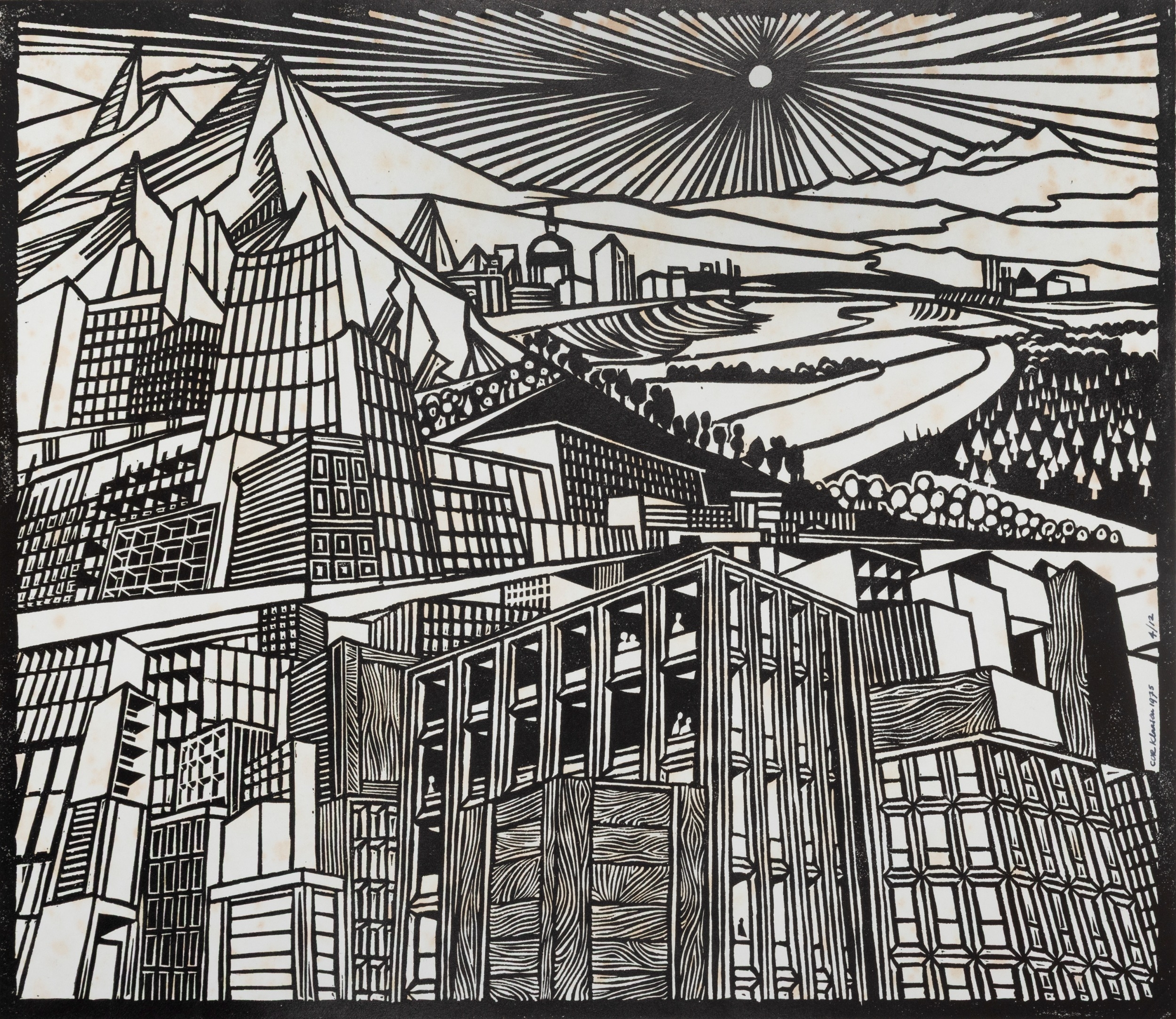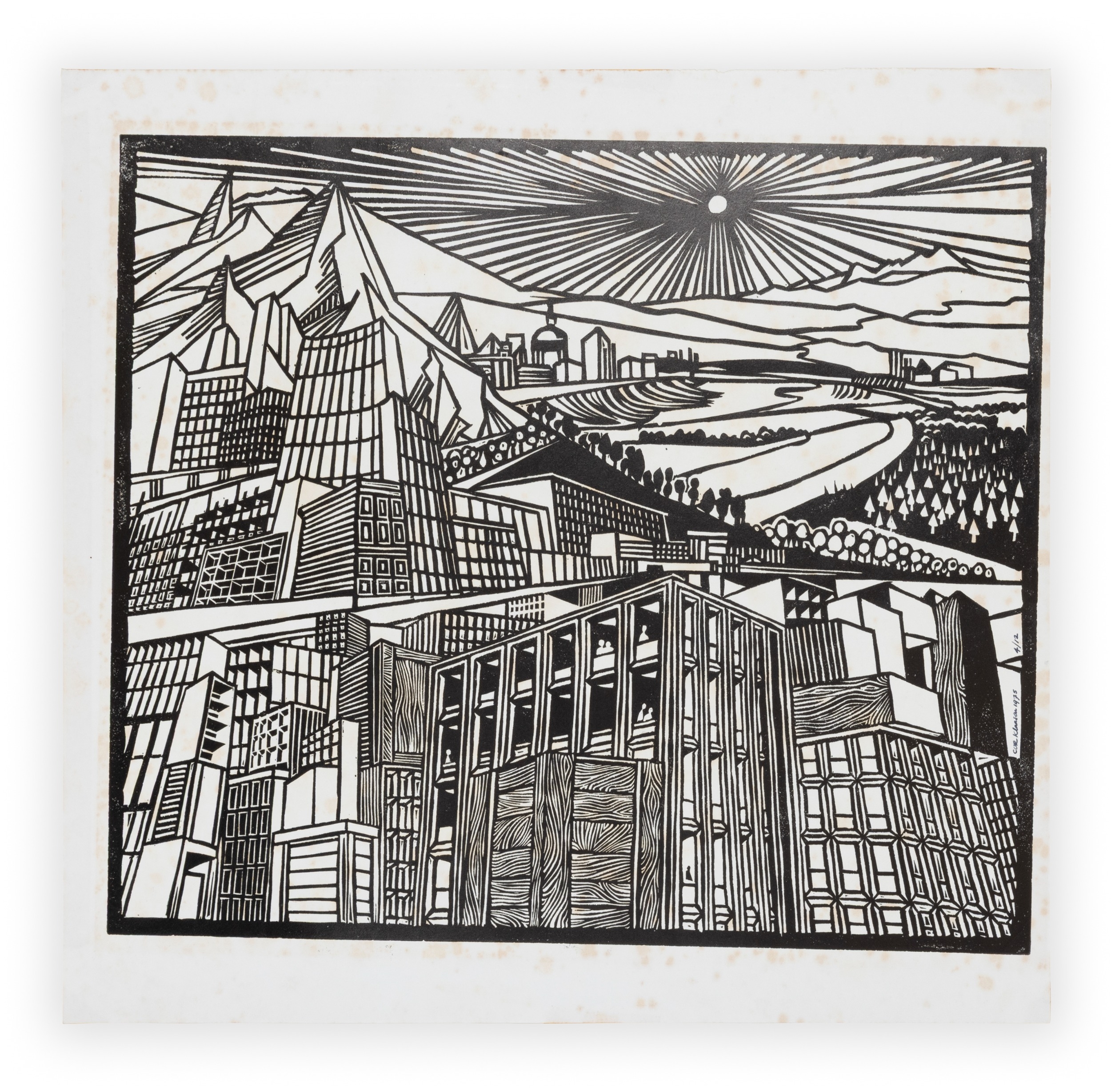 Cor Klaasen (1926-1989) City Woodblock print, 46 x 48cm Signed, dated 1975 and numbered 4/12 Unframed