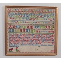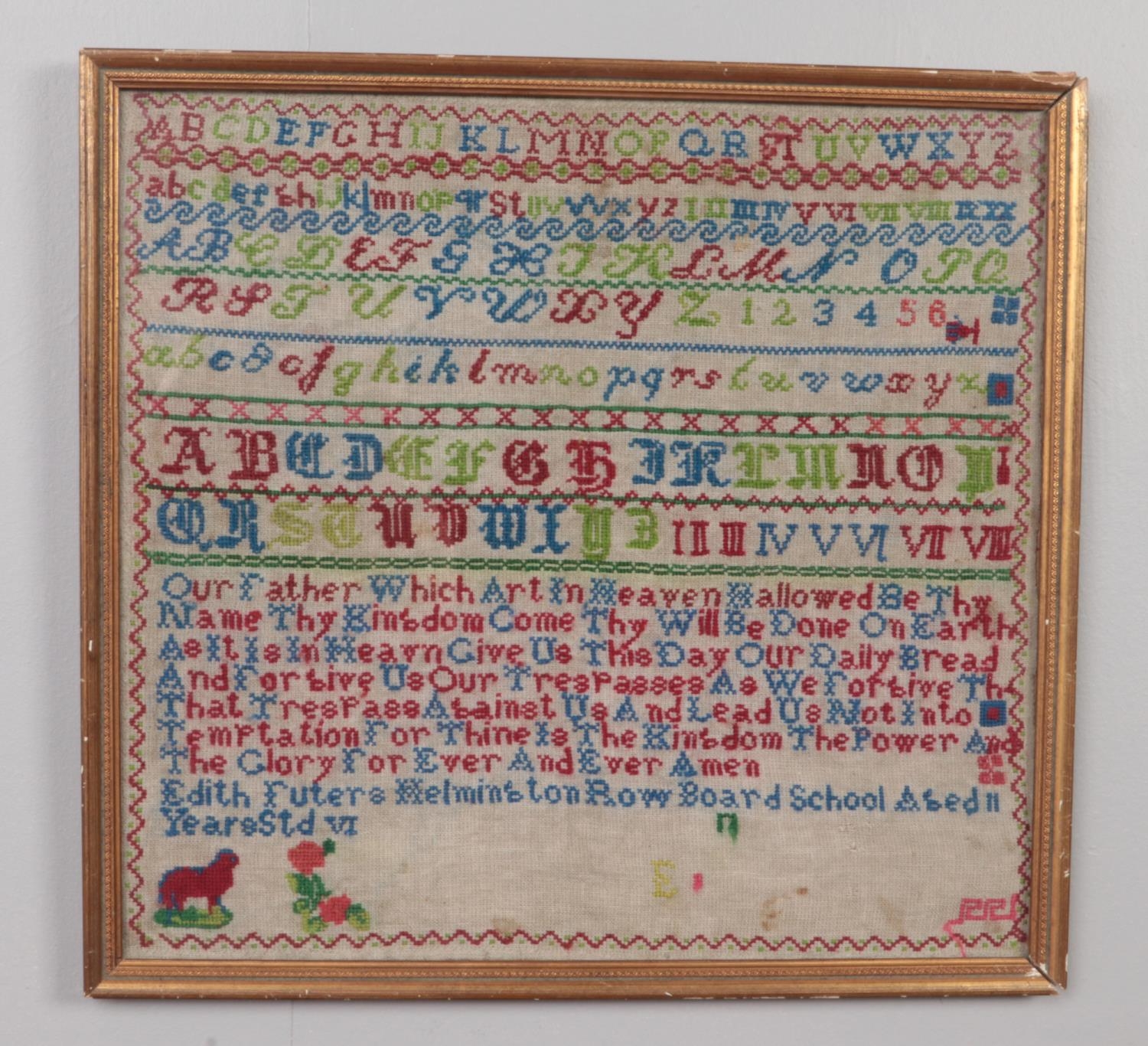 A Victorian framed sampler. By Edith Futers, Helmington Row Board School, aged 11.