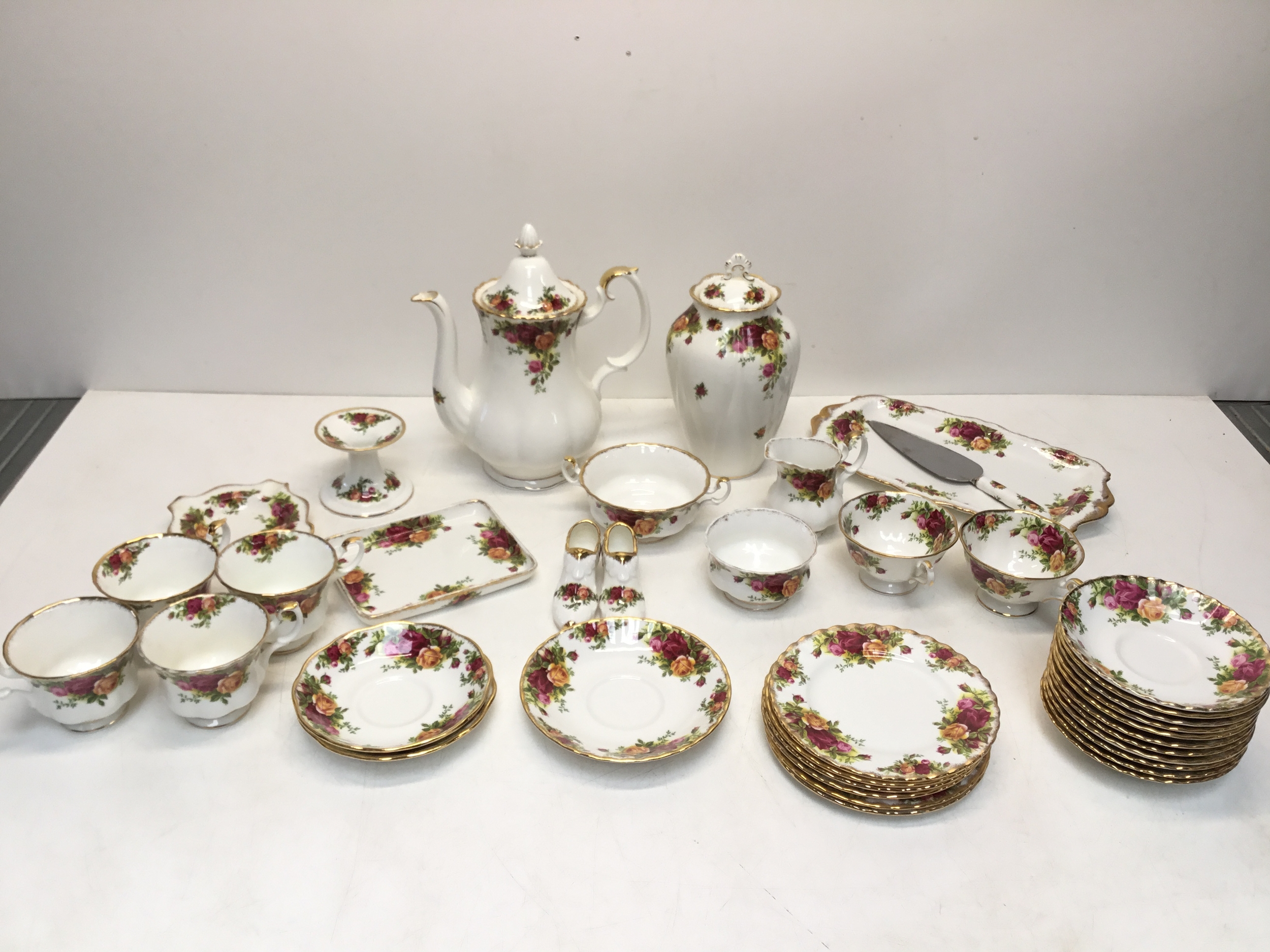 A quantity of Royal Albert Old Country Roses plates, teapot, cups and tray