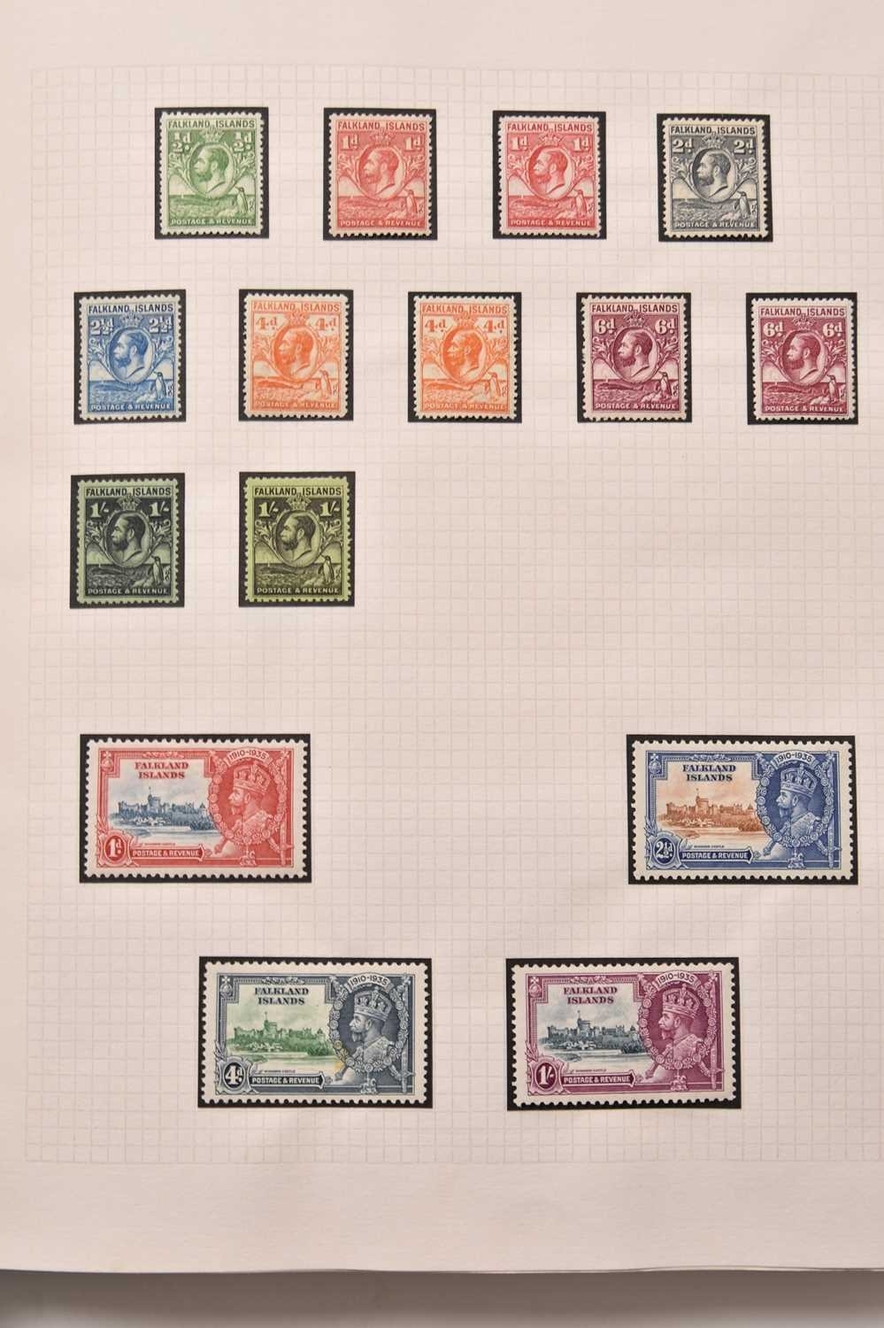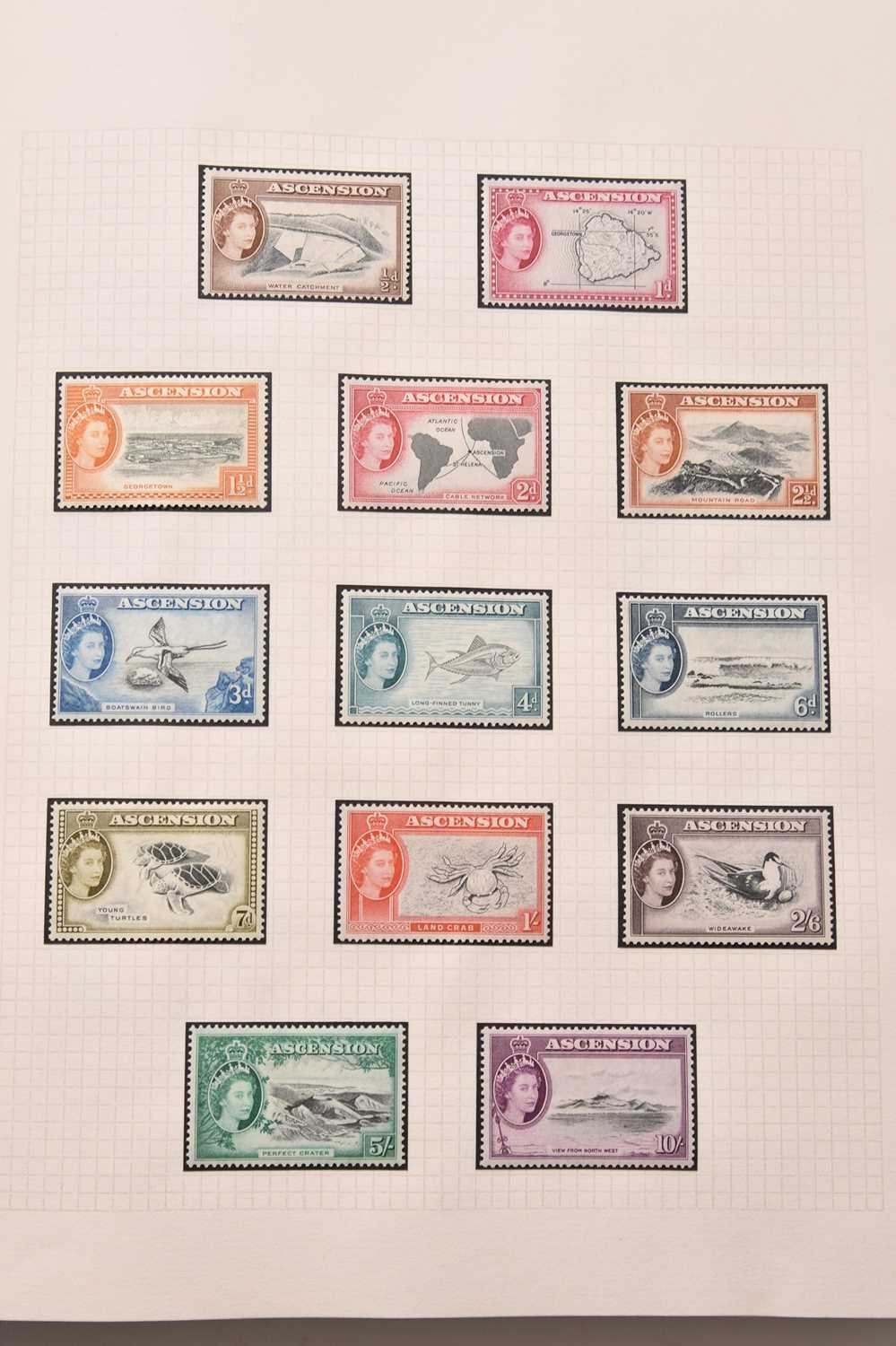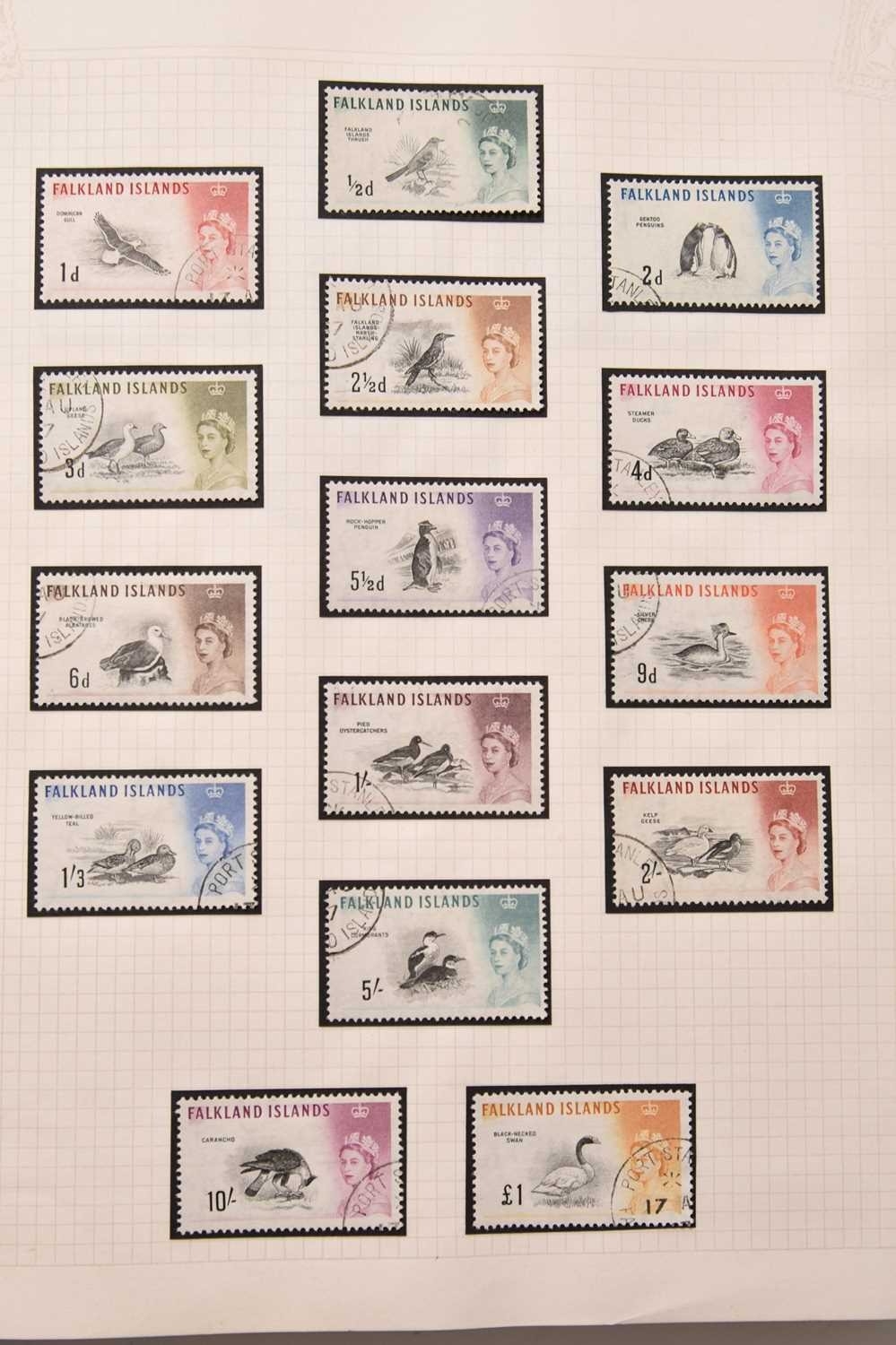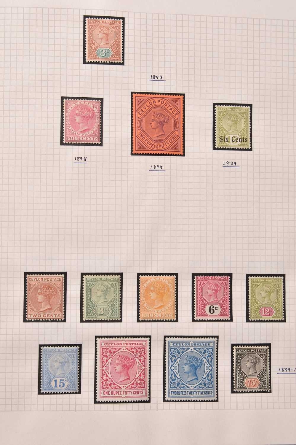 A large Commonwealth collection of stamps, housed in 15 albums, mint and used, spanning all periods.Noted: Aden 1937 set mint and used (less 8A used), 1938 set, 1948 RSW set both mint and used, 1953 set mint. Ascension 1922 values to 3/- mint and used, 1924 mint set plus 1d "broken mast" flaw and used values to 3/-, 1934 set, 1935 Silver Jubilee, 1938 all perf 13 and 13.5 issues all mint and used plus most perf 14. Ceylon 1858 ½d mint, 1899-1900 set mint, 1904-05 and 1910-11 sets mint. Falkland Islands good selection of QV issues, Geo V mint to 1/-, excellent range of KG VI and QE2 mint and used to 1981 plus Dependencies and South Georgia. St Helena good range of mint and used earlies, then complete to 1981. Guyana FDCs 1967-81. Canada FDCs 1974-83. Stockbook of duplicates plus loose in bag. Cat well in excess of £10,000. Inspection recommended