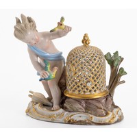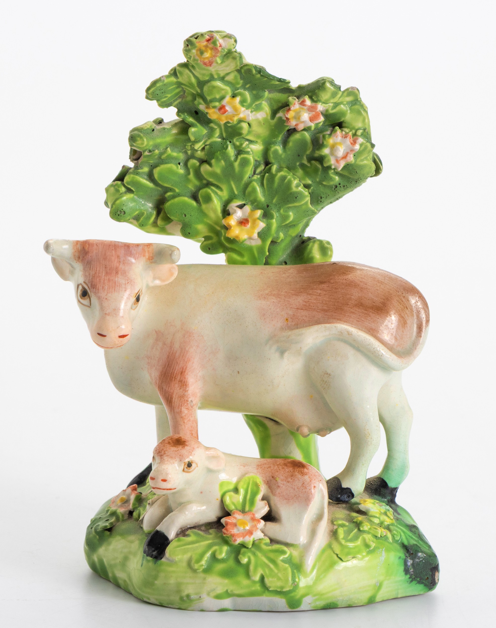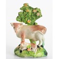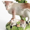 The cow standing with a reclining calf, both on a bocage base