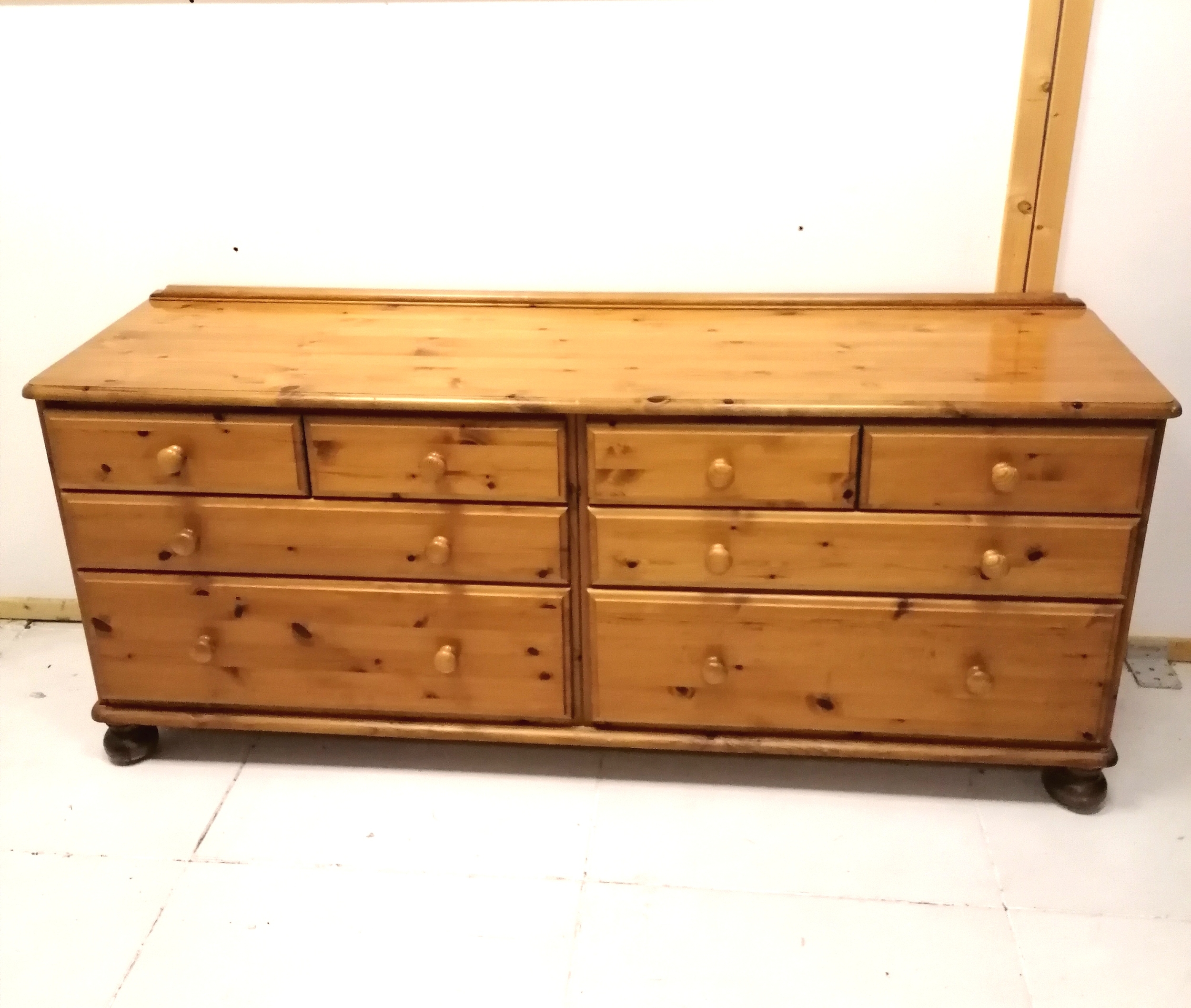 Modern pine double chest of drawer base unit - 168cm x 43cm x 70cm