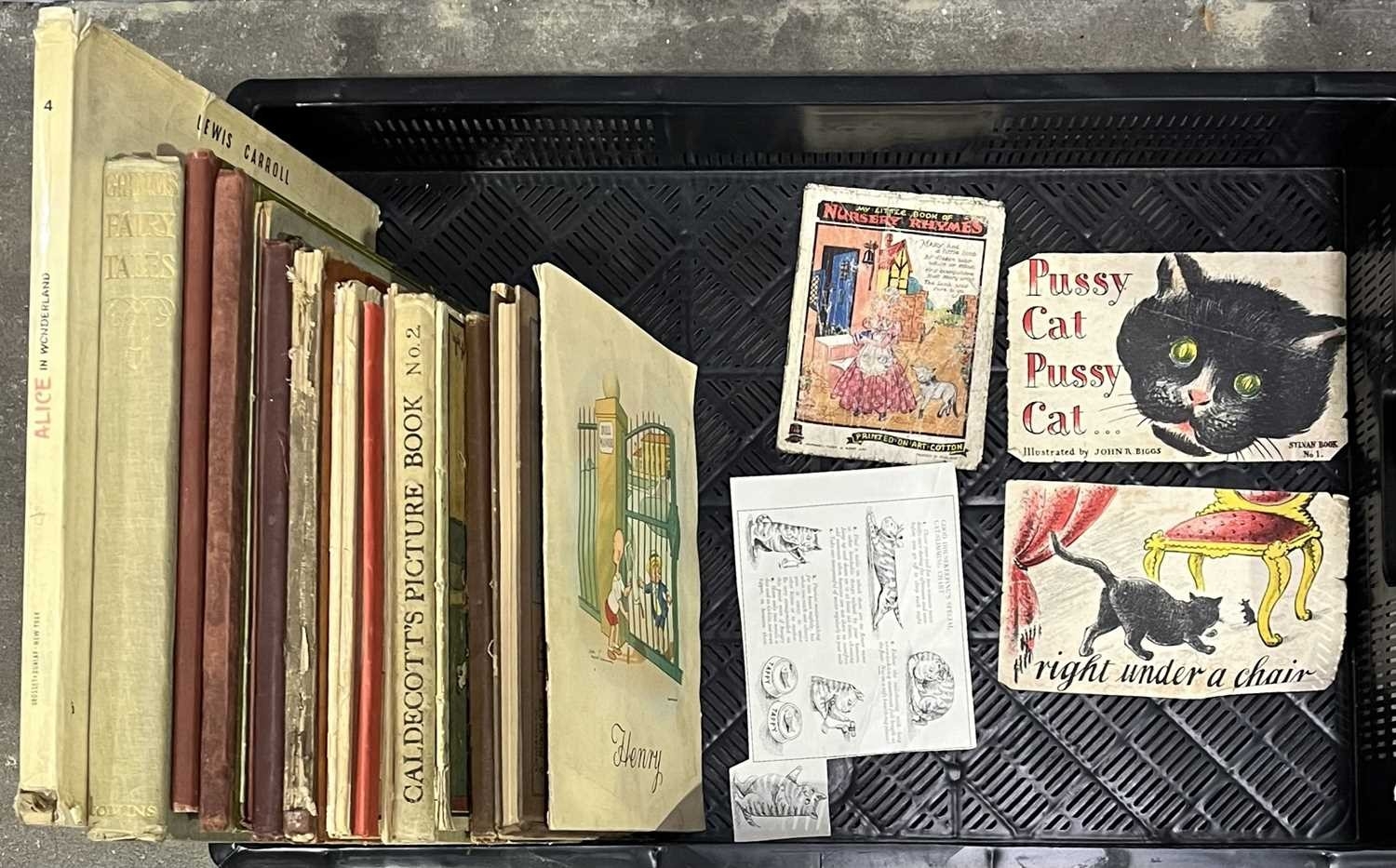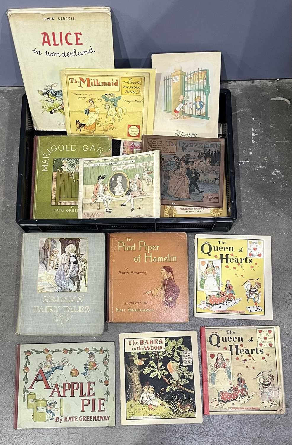 A collection of Caldecott picture books and other 19th century and onwards children's picture books and tales to include: Caldecott, R, Mrs Mary Blaize, The Queen of Hearts, The Farmers Boy, The Babes in the Wood, The Milkmaid, Come Lasses and Lads, The Panjandrum Picture Book, London: Routledge and Frederick Warne, other titles include: The Pied Piper of Hamelin illustrated by Kate Greenaway, Marigold Garden by Kate Greenaway, Grimm's Fairy Tales illustrated by Anne Anderson and Alice in Wonderland illustrated by Maraja, The Children's Friend, London: S.W Partridge & Co; (1 tray)