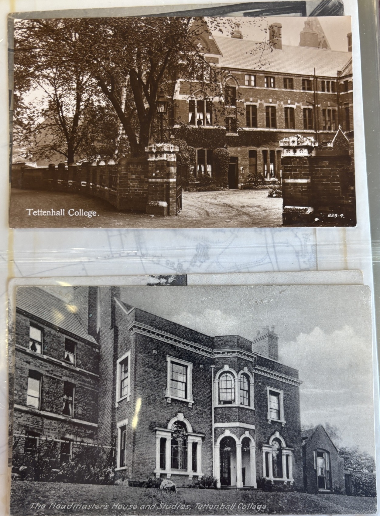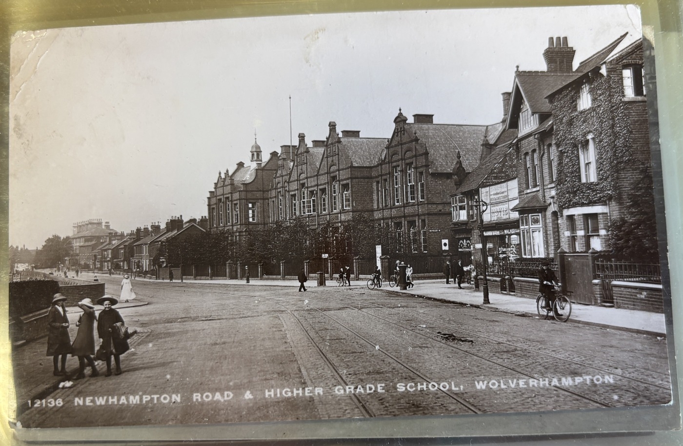 West Midlands. Coln of vintage cards in 2 Lindner albums, with ptd, artist drawn and R.P's, incl. Bilton, Codsall, Dudley with Brine Baths & Hotel, Wolverhampton with E.W. Knowles Carrier Service and Furniture Removals, Newhampton Road & Higher Grade School, Tettenhall College and Stourbridge. Qty. approx. 140. (2V)