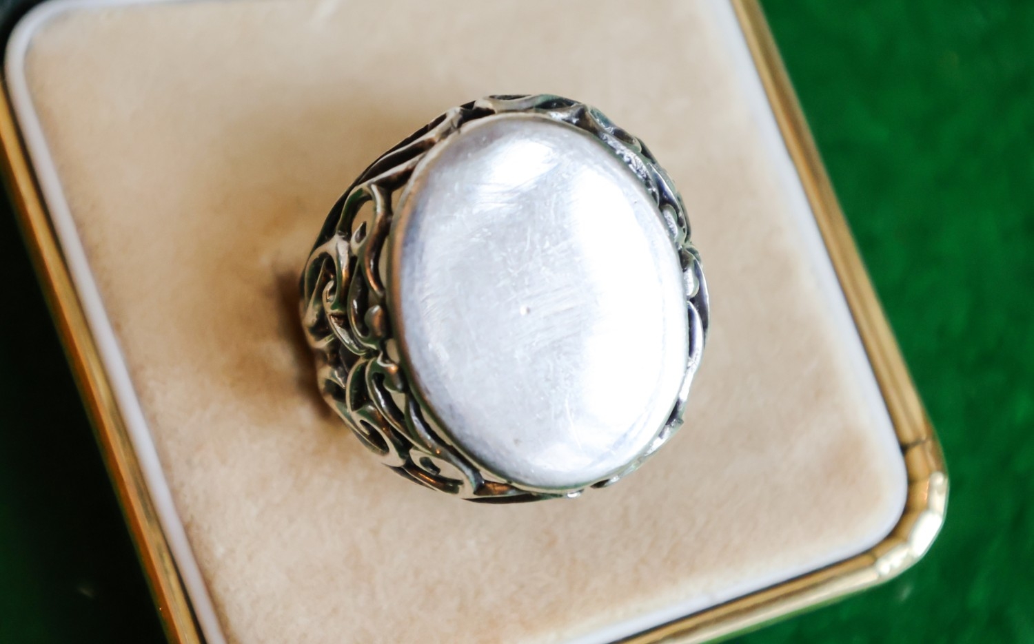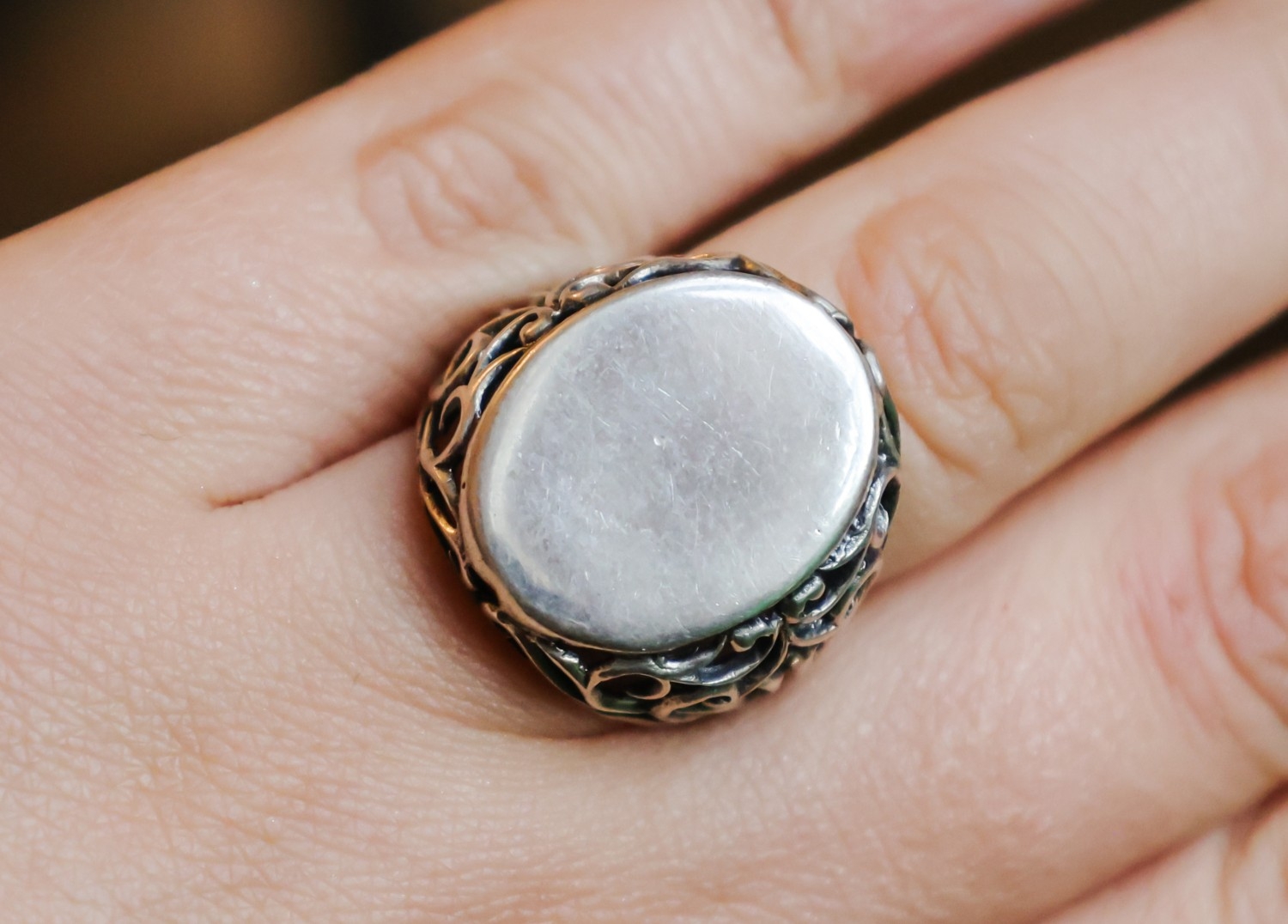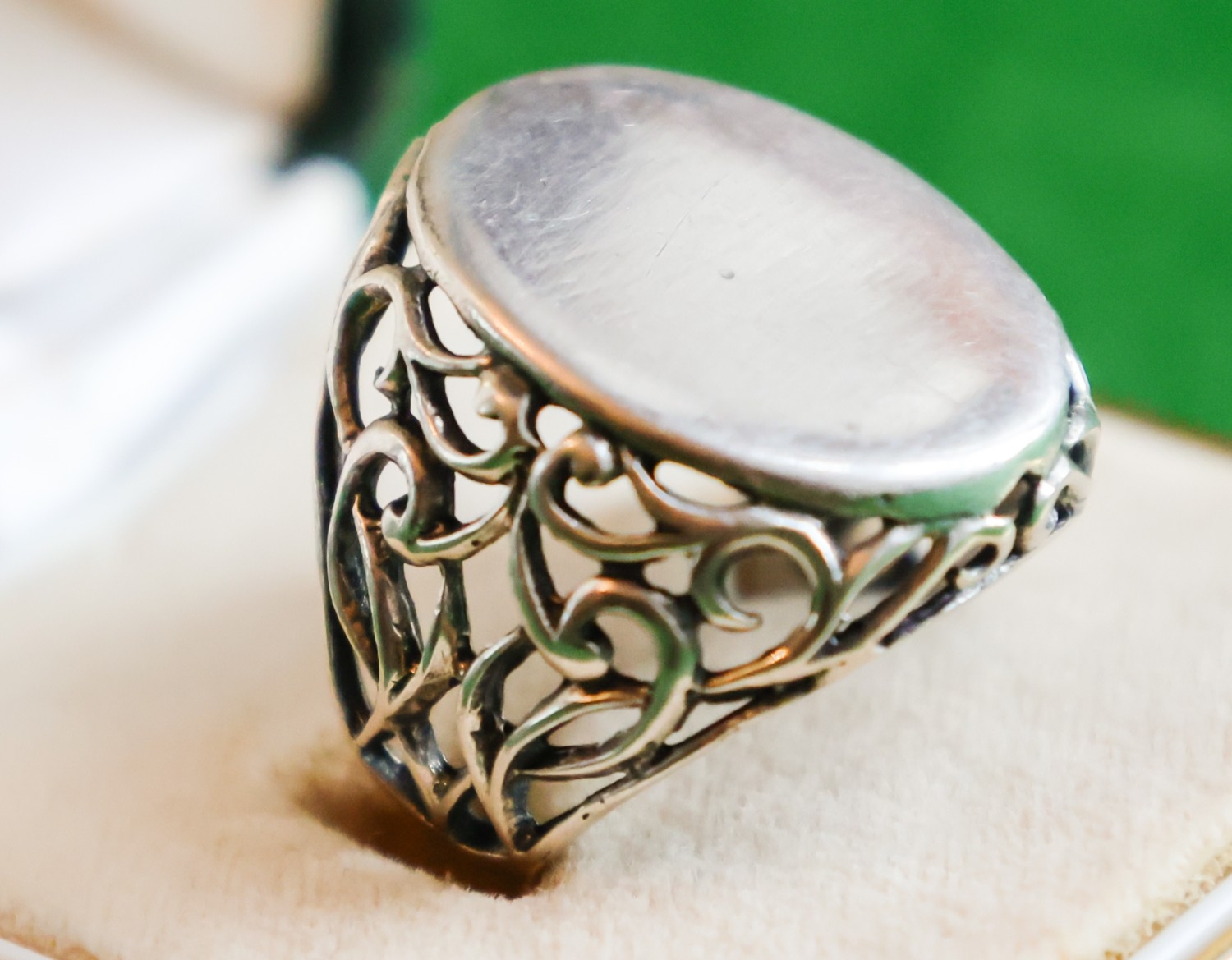 Vintage Silver Panel Ring Filigree Decorated Setting Band Size N