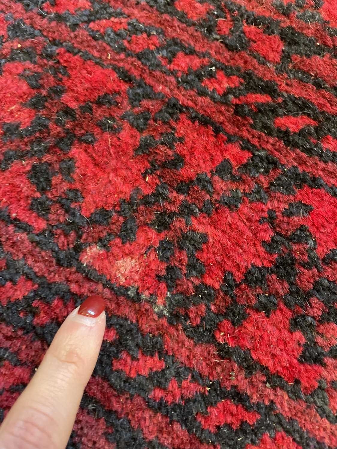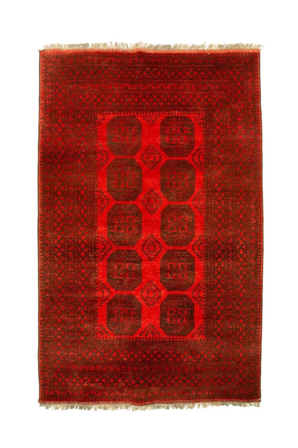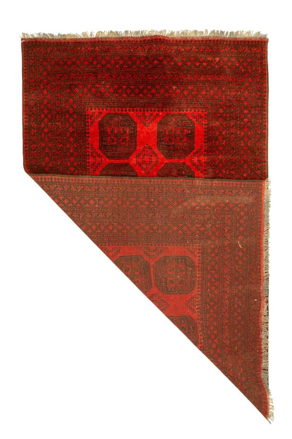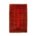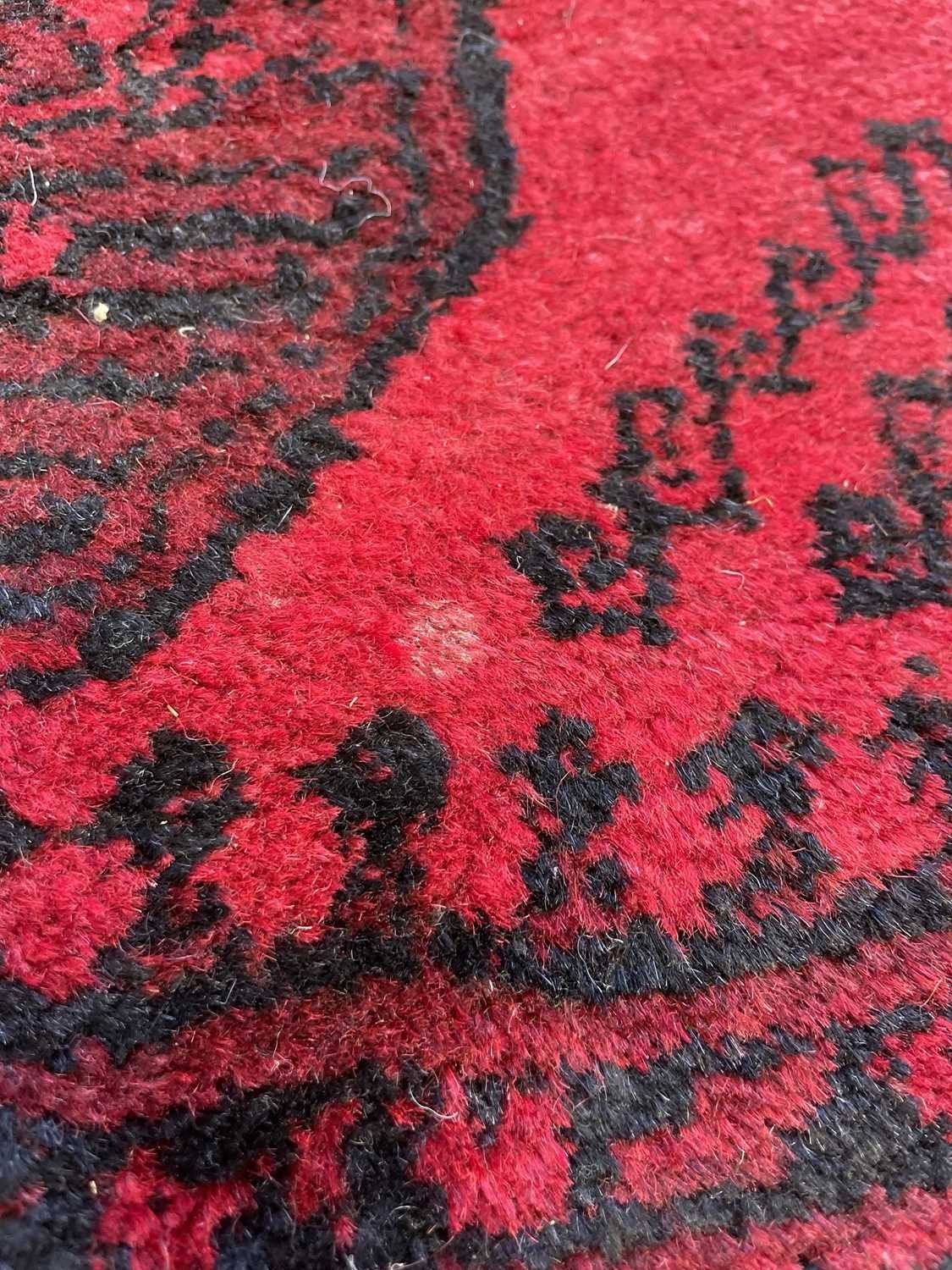 An Afghan Ersari Turkoman rug. Red ground, with black elephant foot pattern, wool pile on wool foundation, 238cm x 162cm Generally good, clean condition, some small white marks as per new photographs, would benefit from a light clean.