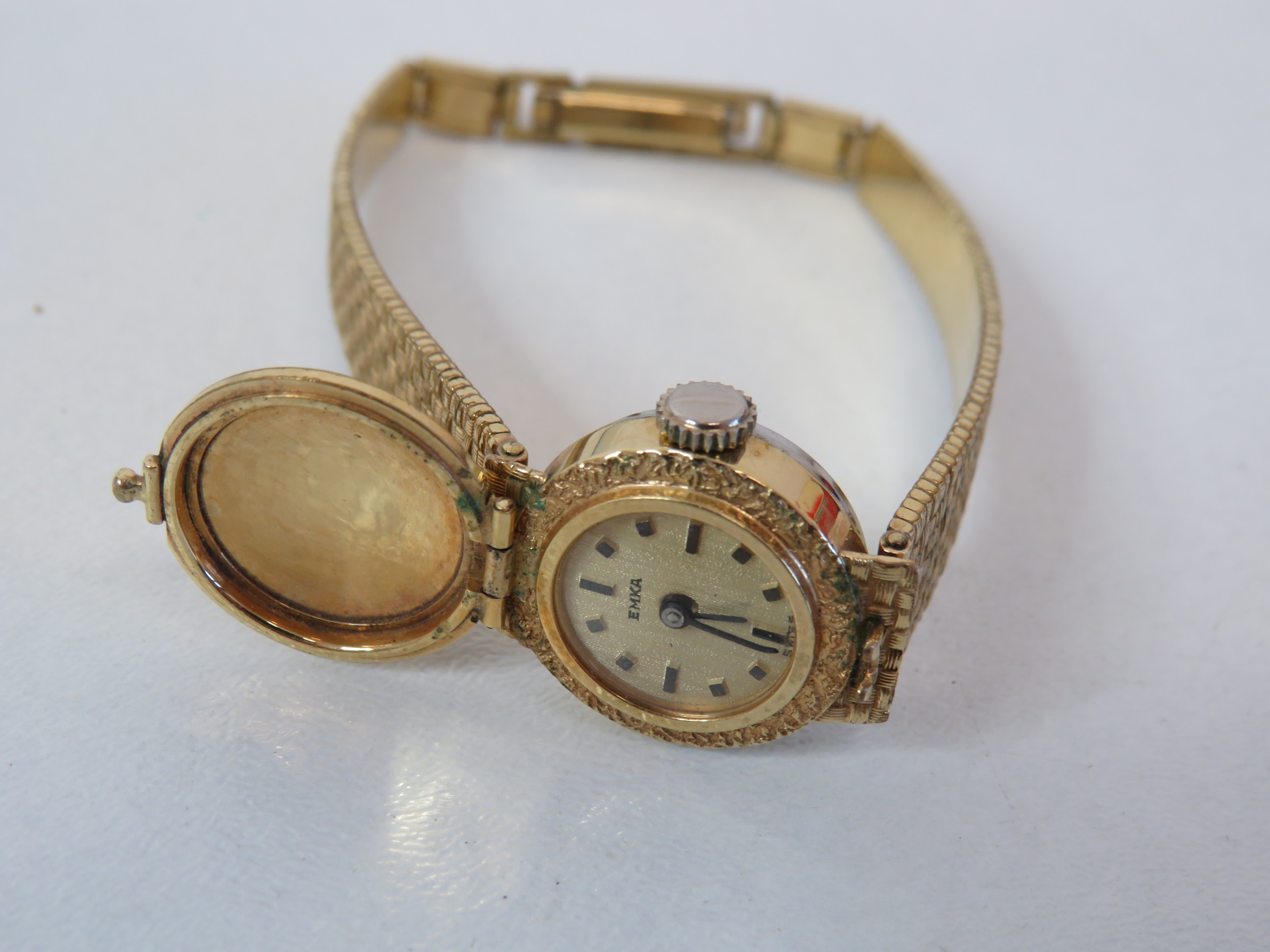 Ladies Art Deco wristwatch with yellow metal concealed watch