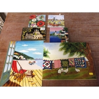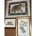 A SMALL ANTIQUE FLORAL PAINTING ON MILK GLASS TOGETHER WITH ANOTHER AND AN INDIAN PAINTING ON SILK (3)