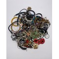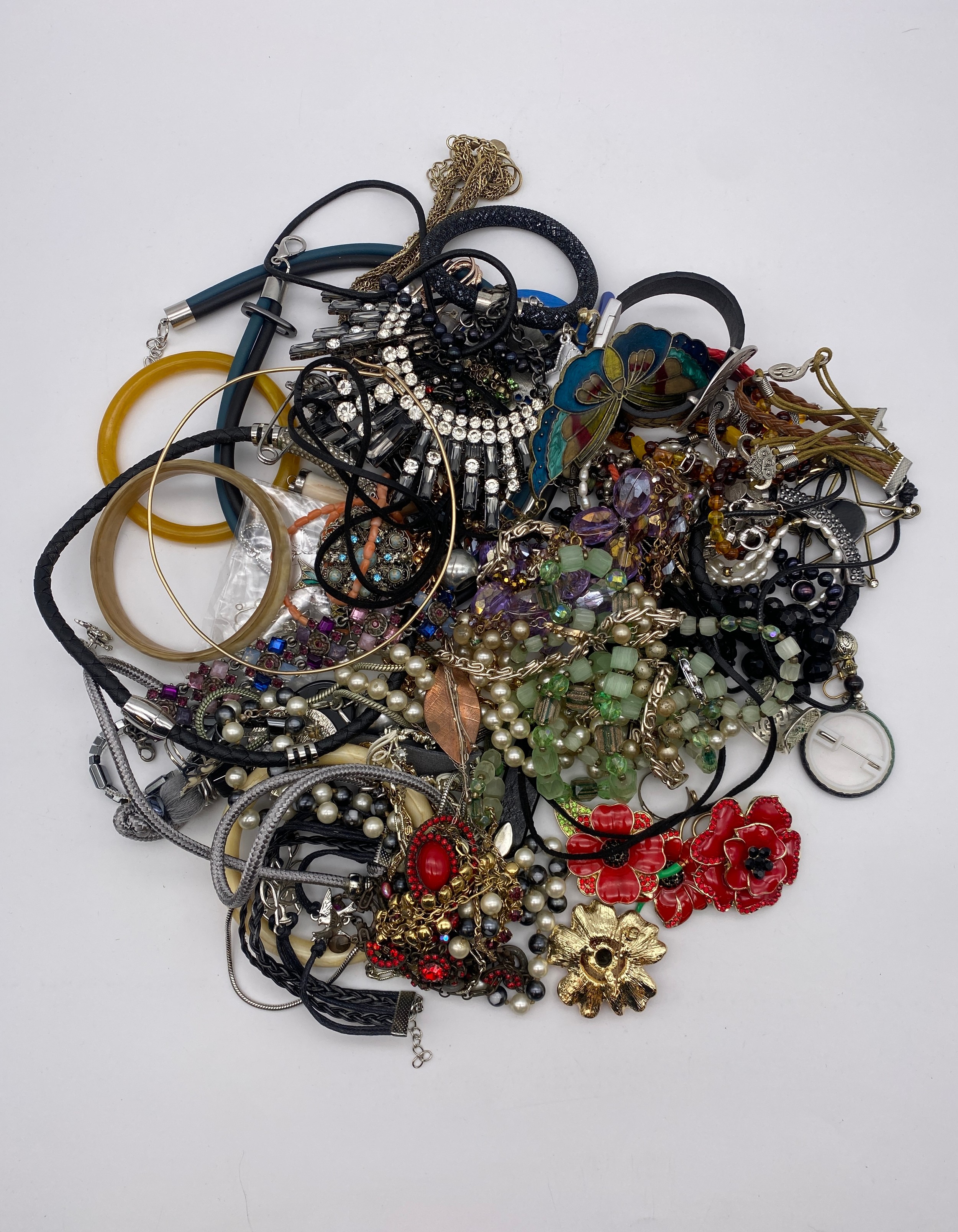 BOX OF MIXED COSTUME JEWELLERY INC. BEAD AND CHAIN NECKLACES, BRACELETS AND PLASTIC BANGLES