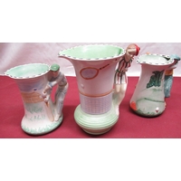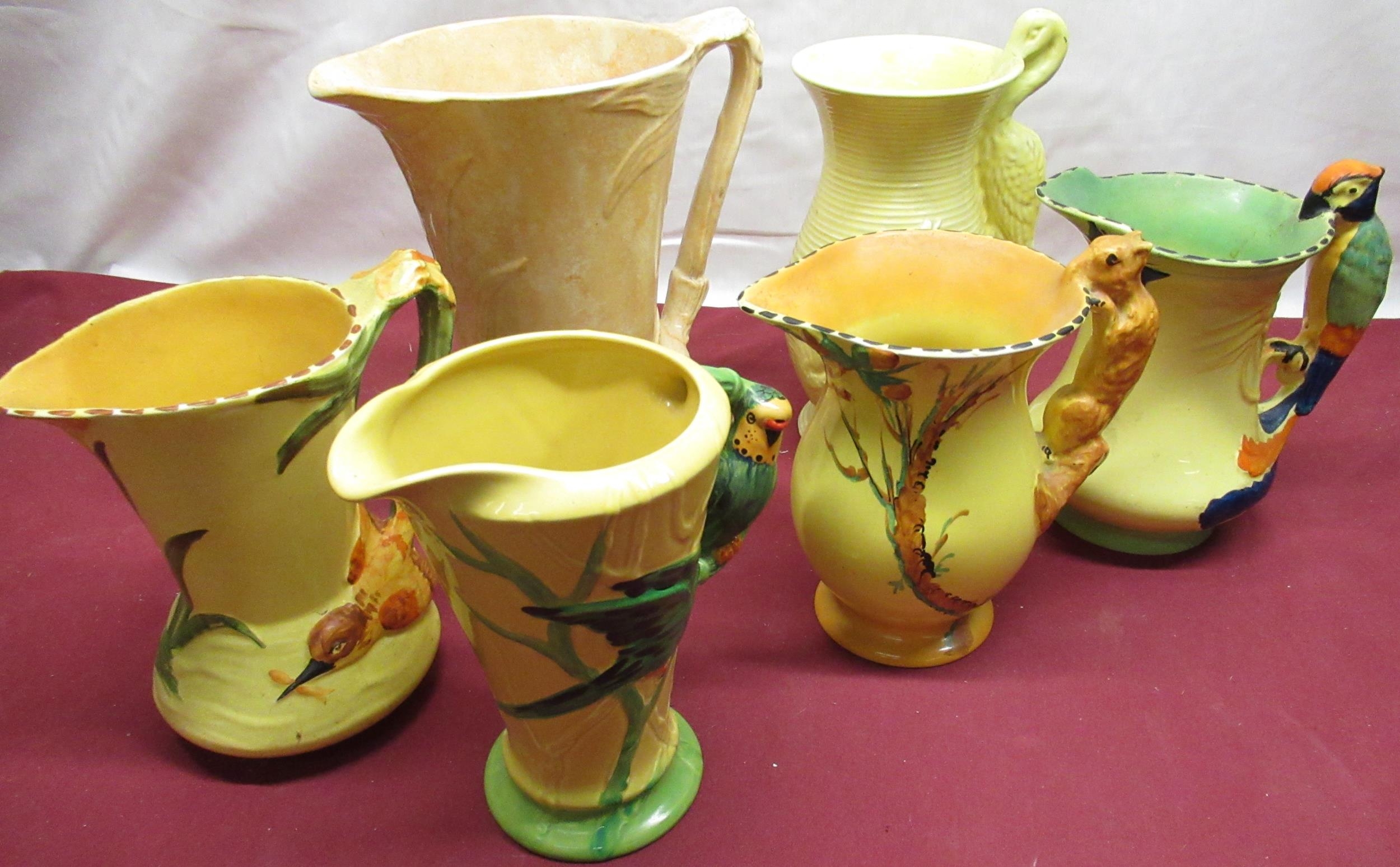 Art Deco Burgess & Leigh Ltd Burleigh Ware jugs: squirrel handle, parrot handles, and three other (5)