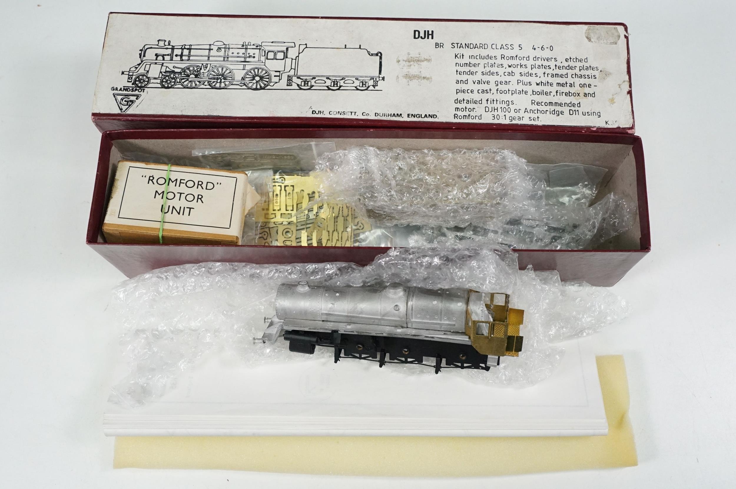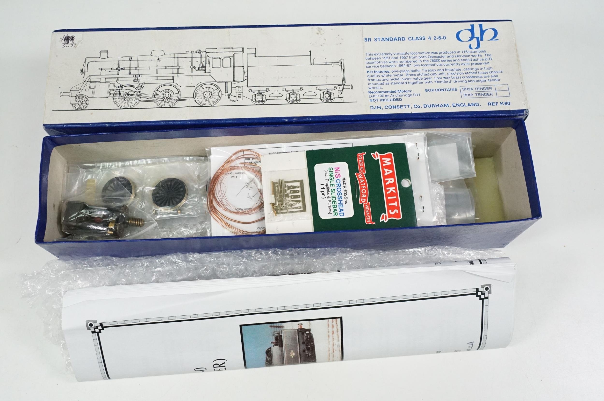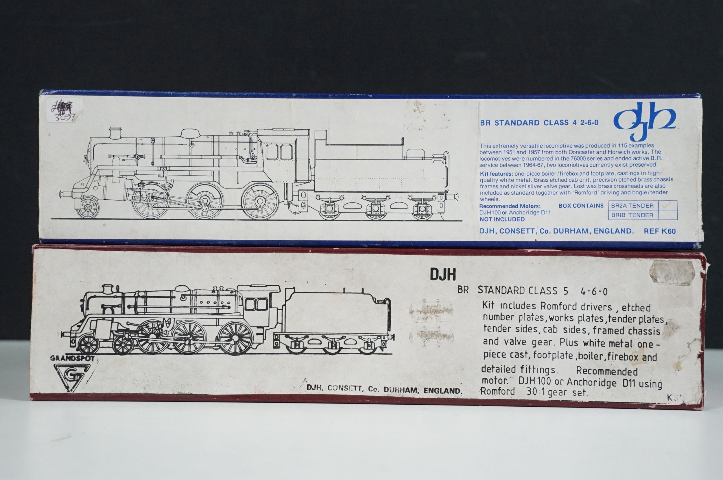 Two boxed DJH OO gauge metal locomotive kits to include K60 BR Standard Class 4 2-6-0 (unbuilt, complete, with LDP03 brass detailing pack & motor) and K35 BR Standard Class 5 4-6-0 (part built, appearing complete with all remaining components & motor)