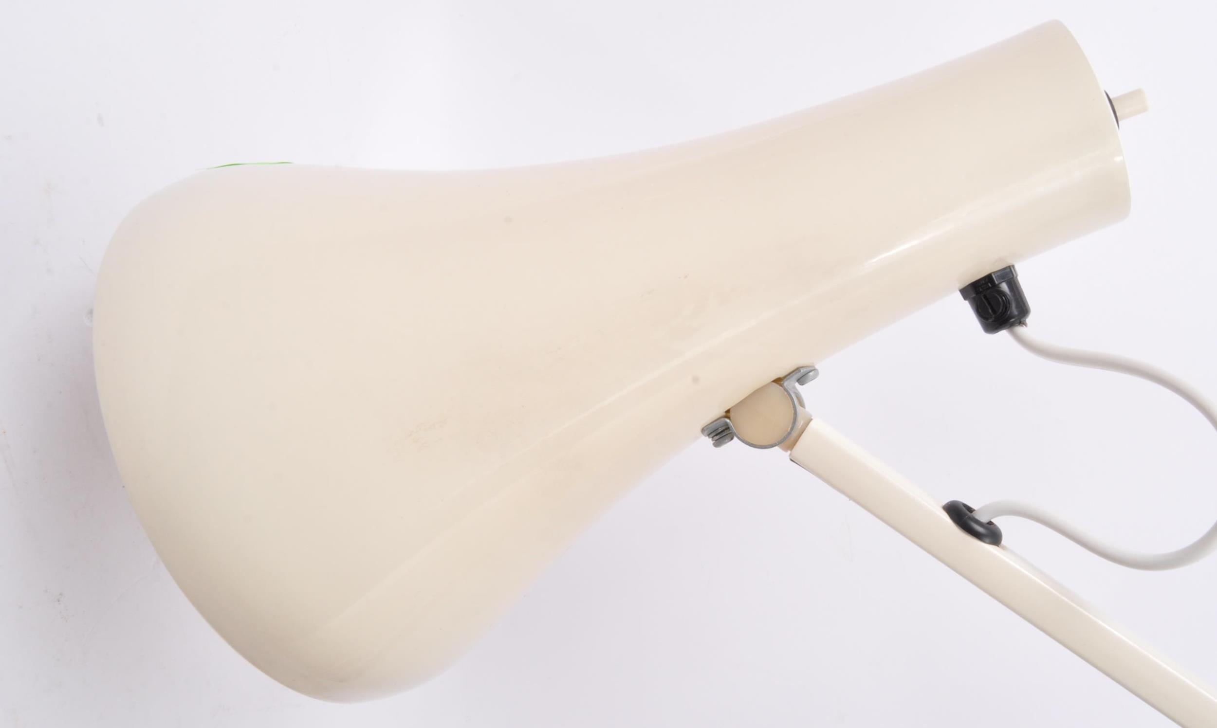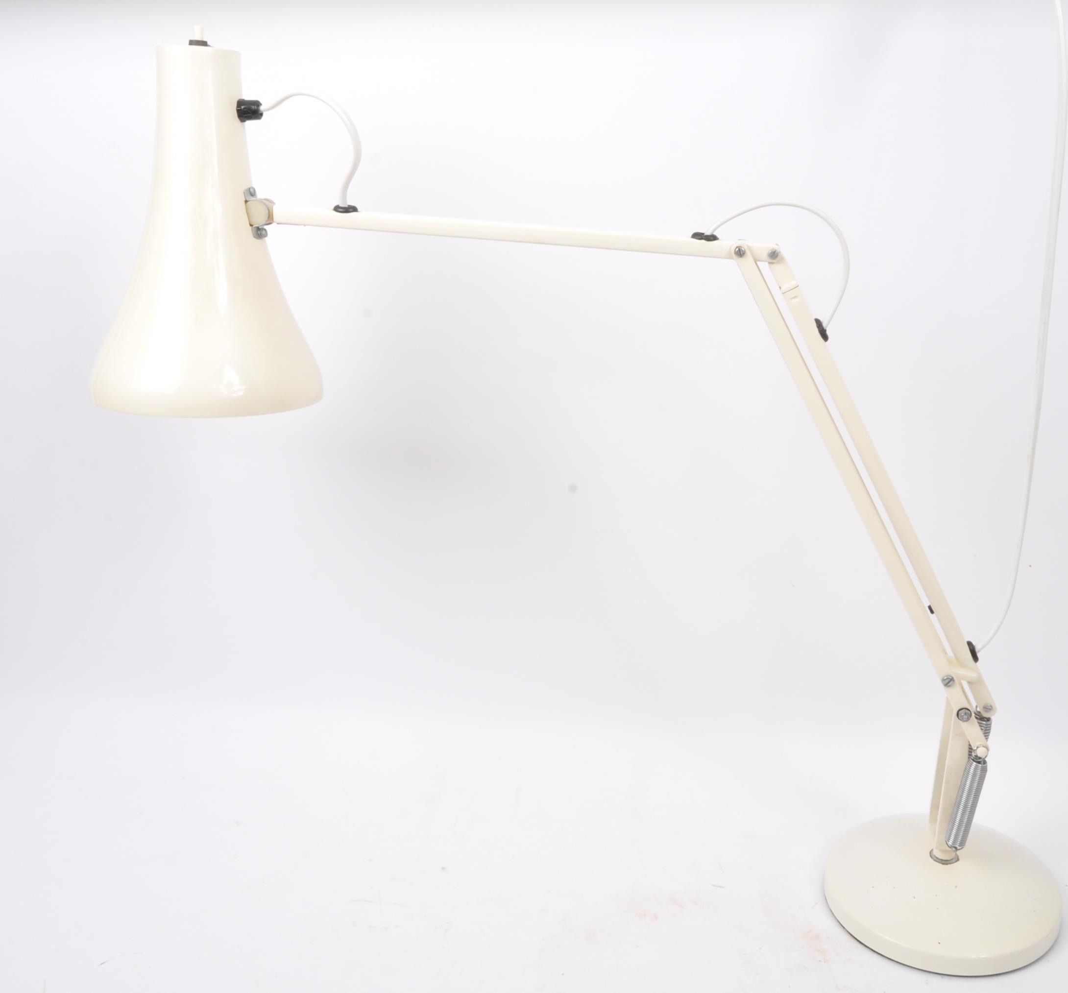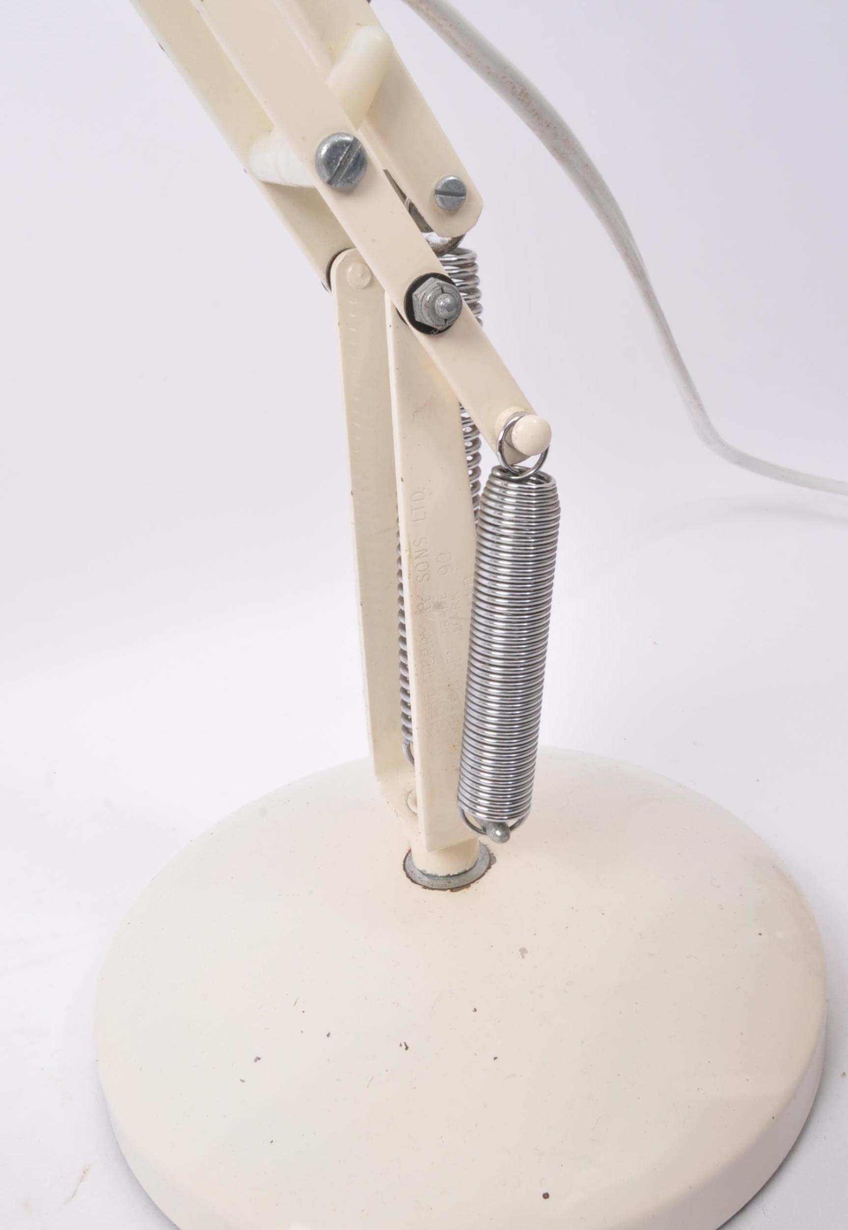 Herbert Terry & Sons - Model 90 - Al retro vintage mid 20th Century anglepoise industrial work factory desk table lamp light in a white colourway with enamel pendant shade with adjustable arm. All raised on circular weighted base. Sold as untested.