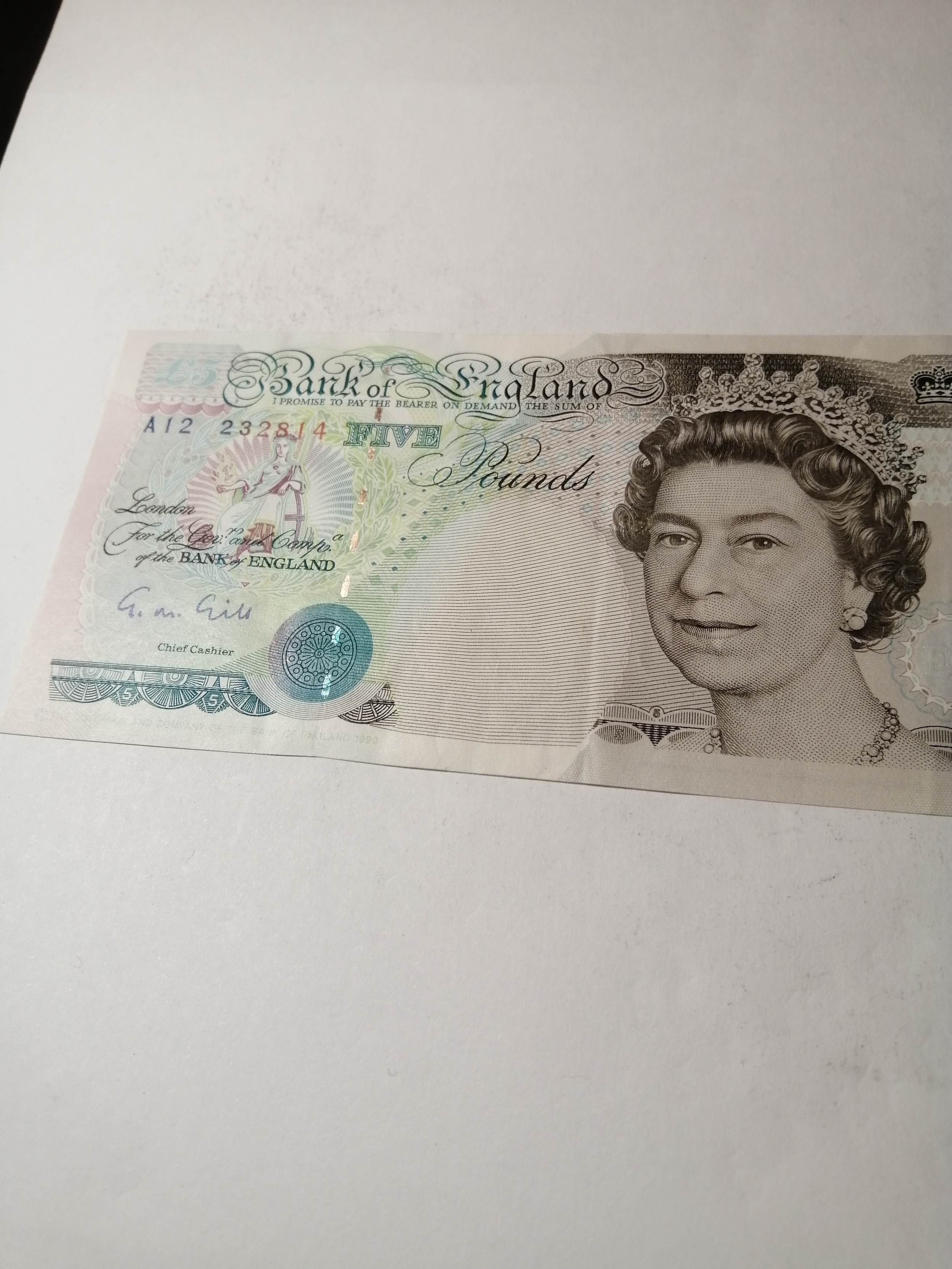 COINS : Elizabeth II 5 pounds note in excellent condition
