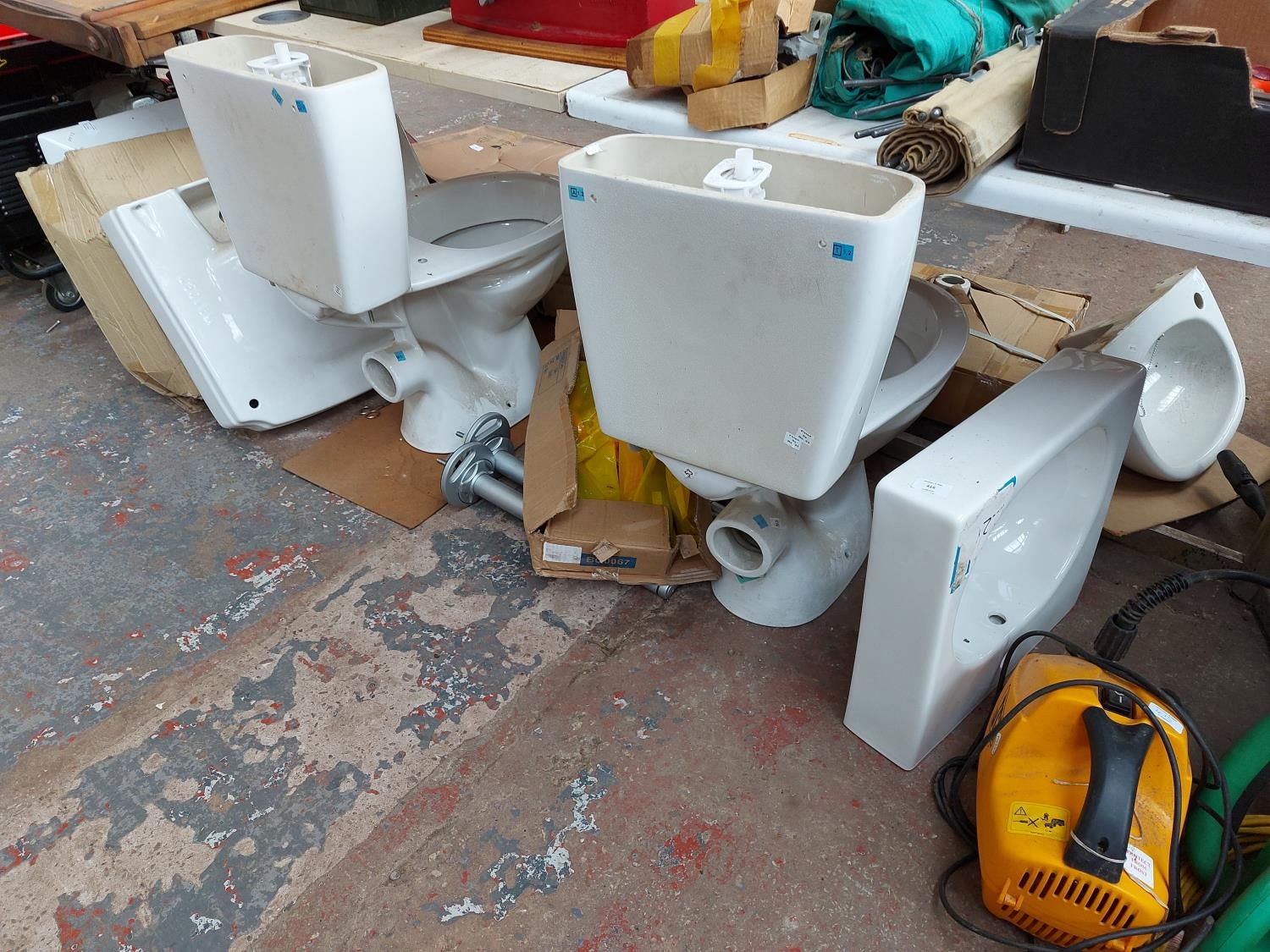 A large quantity of bathroom fittings to include wash basins, toilet with cisterns etc.