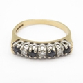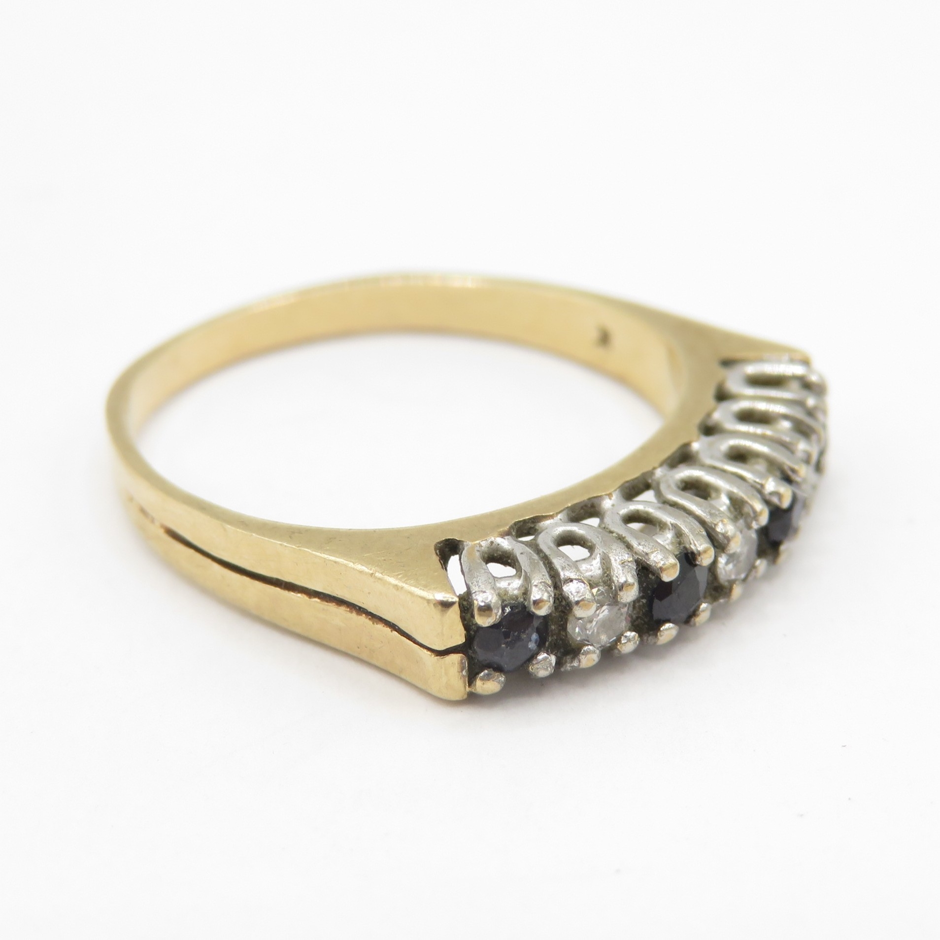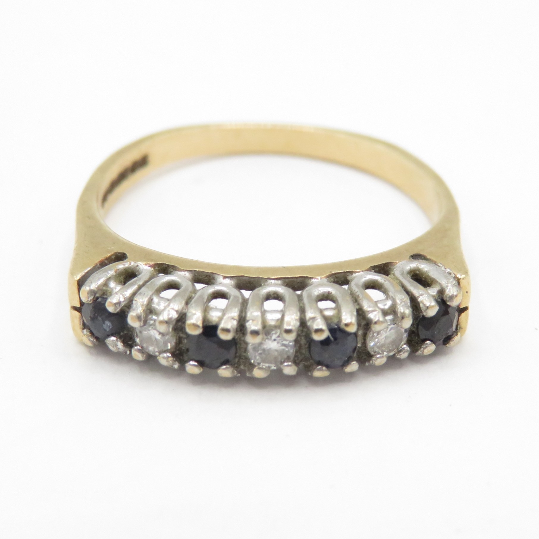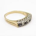 9ct gold diamond and sapphire row ring (2.3g) size L