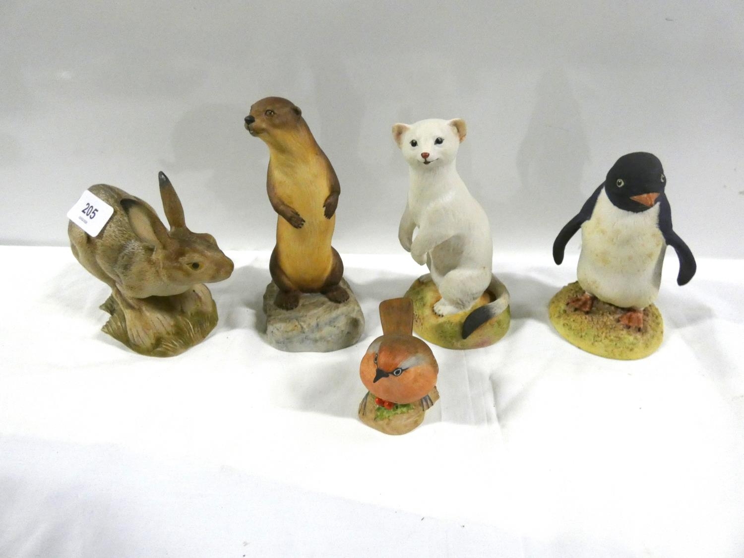 Aynsley figures to include penguin, stoat, otter, robin and Purbeck hare.(5)