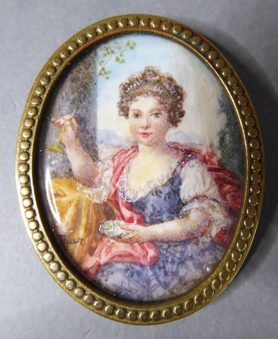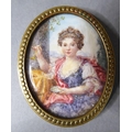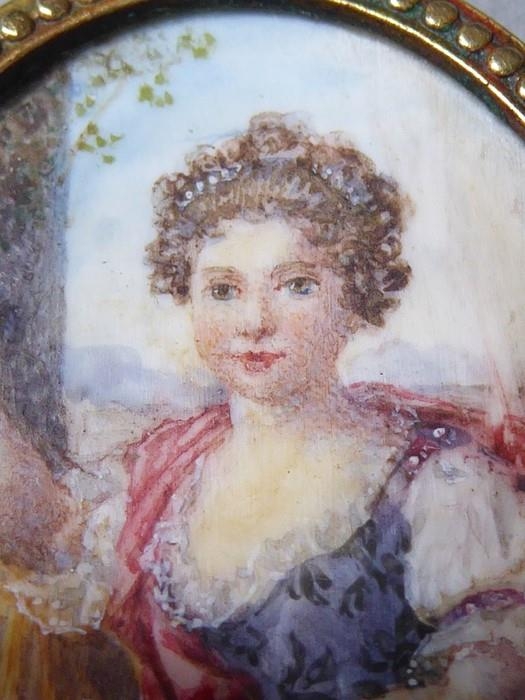 A late 19th century portrait miniature of a young lady in a pinchbeck frame
