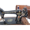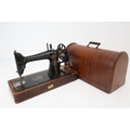 Cased Singer Model 66 Hand Sewing Machine with Sphinx Decals