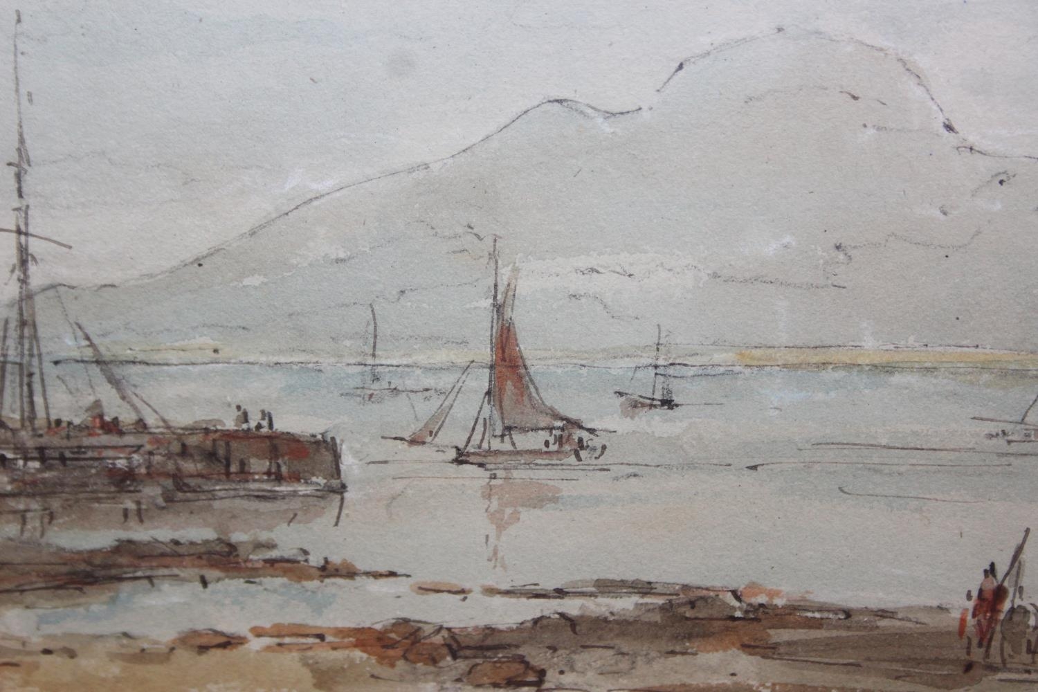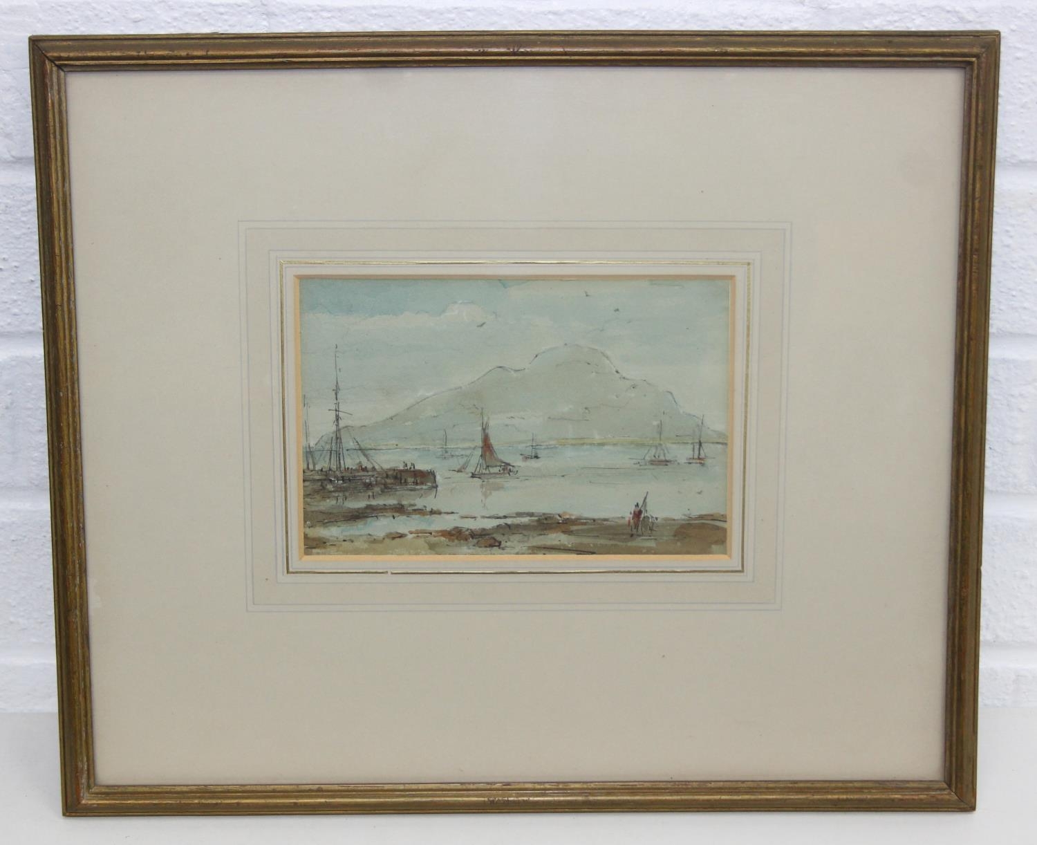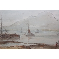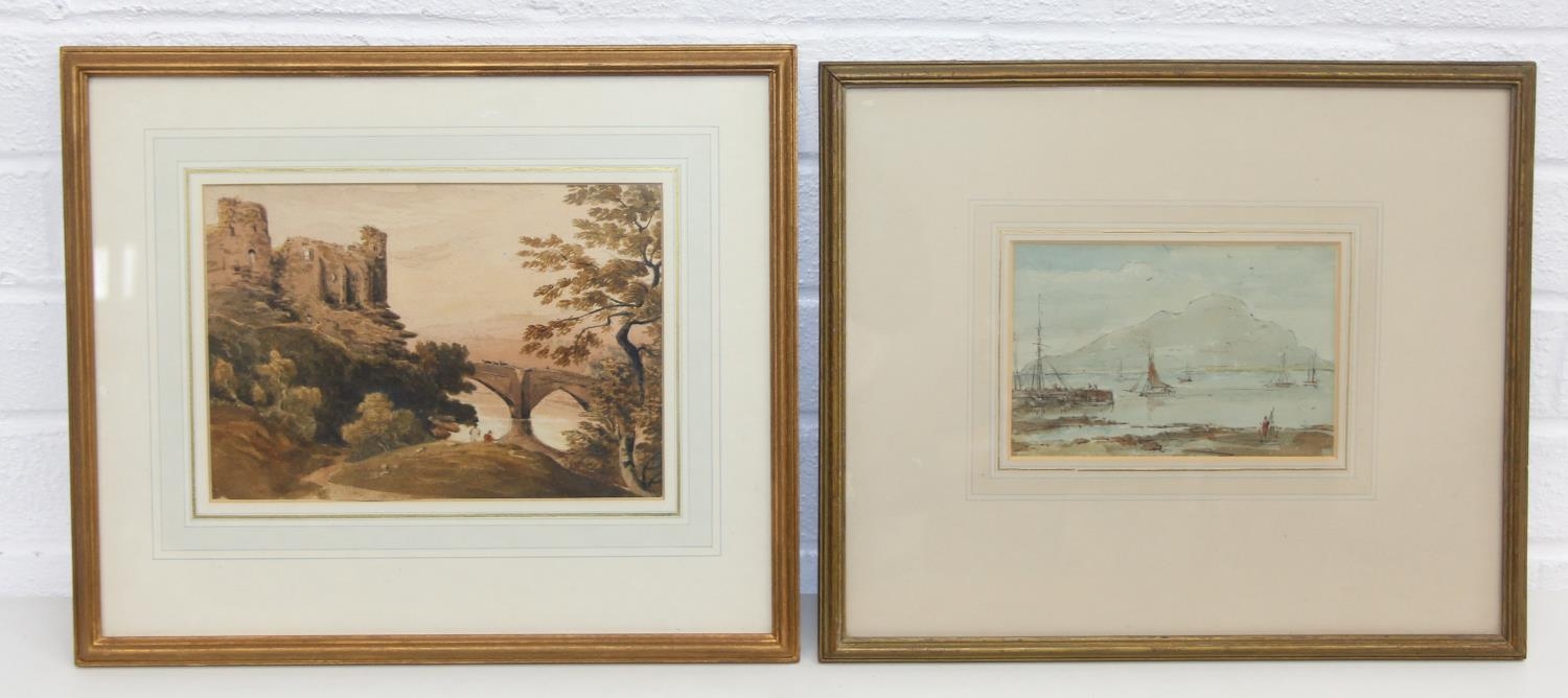 Two antique watercolours, one of Barnard Castle attributed to Norman Lans (fl. 19th century) & the other Sir J Shard? Lamlash on the Isle of Arran seascape, both unsigned but annotated verso, the largest 39cm x 33cm [2]