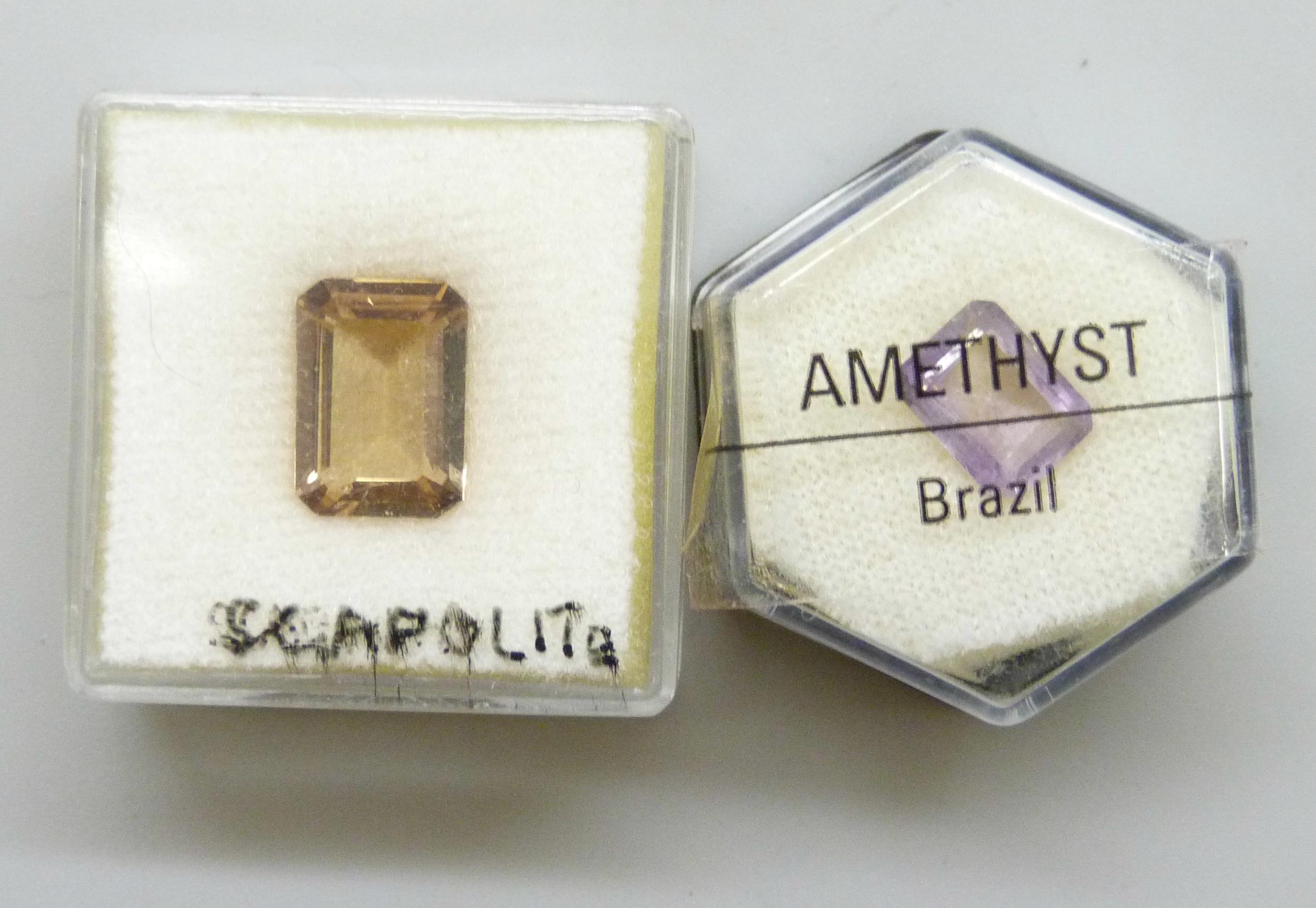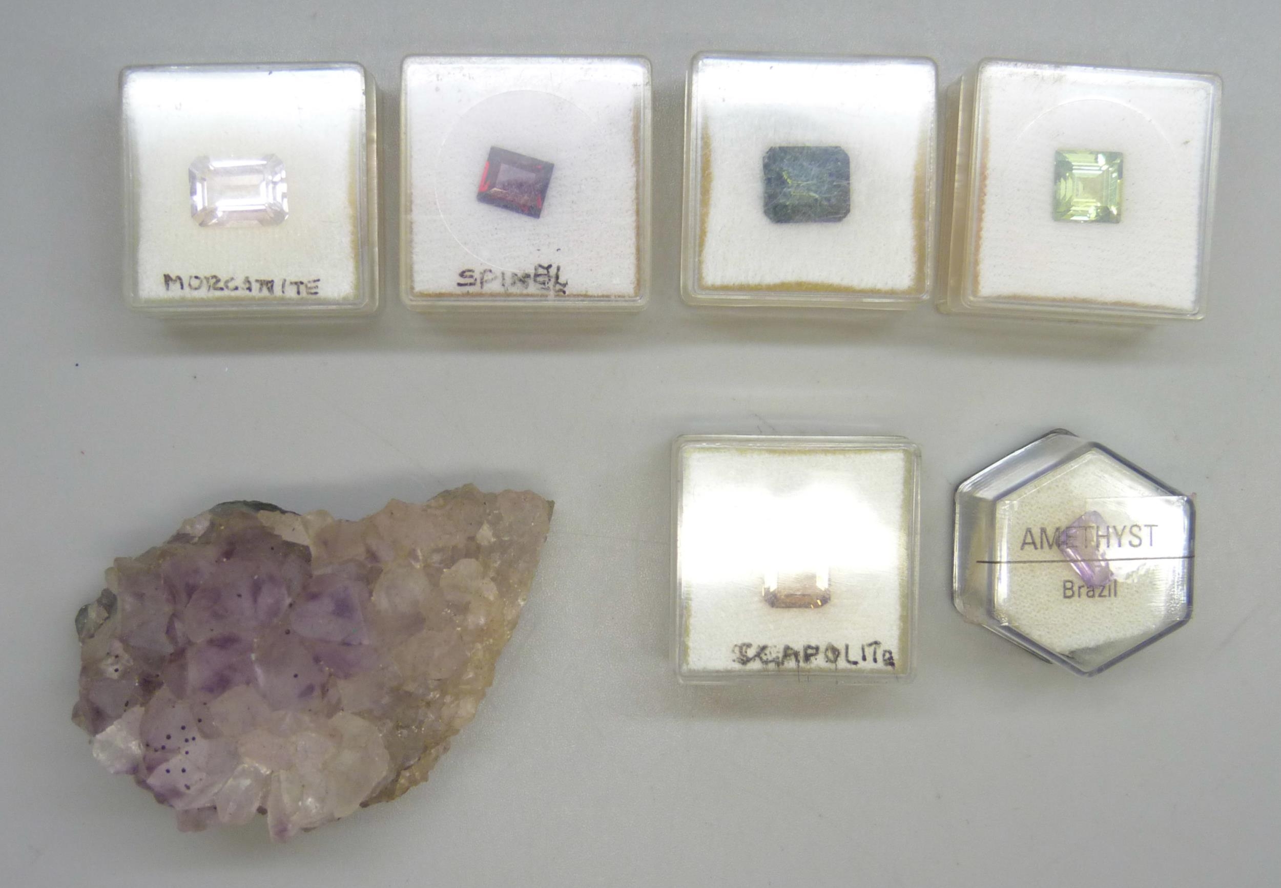 A collection of gemstones including a geode