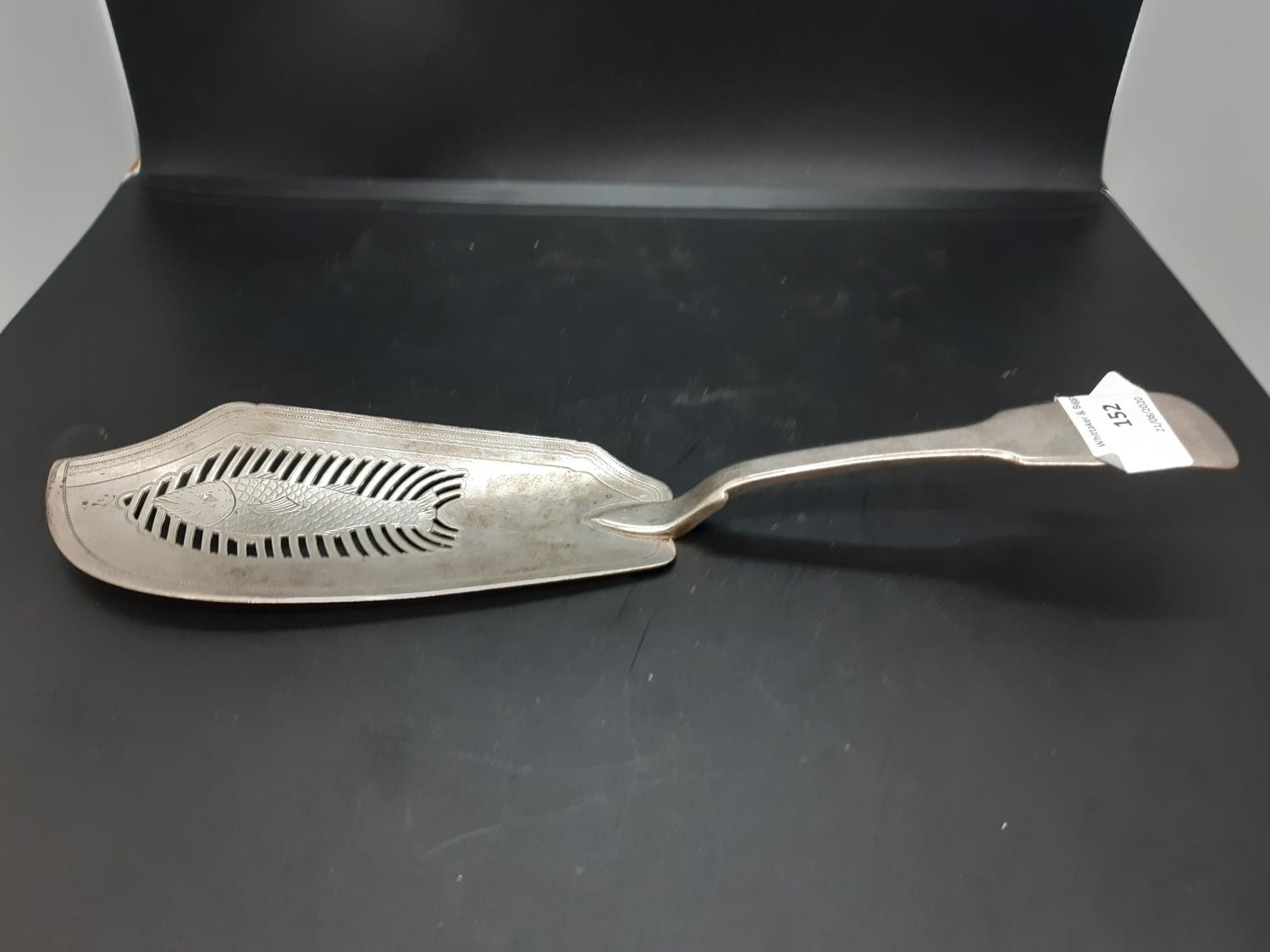 A hallmarked London silver fish server with pierced and etched fish design - total approx. weight 151 grams