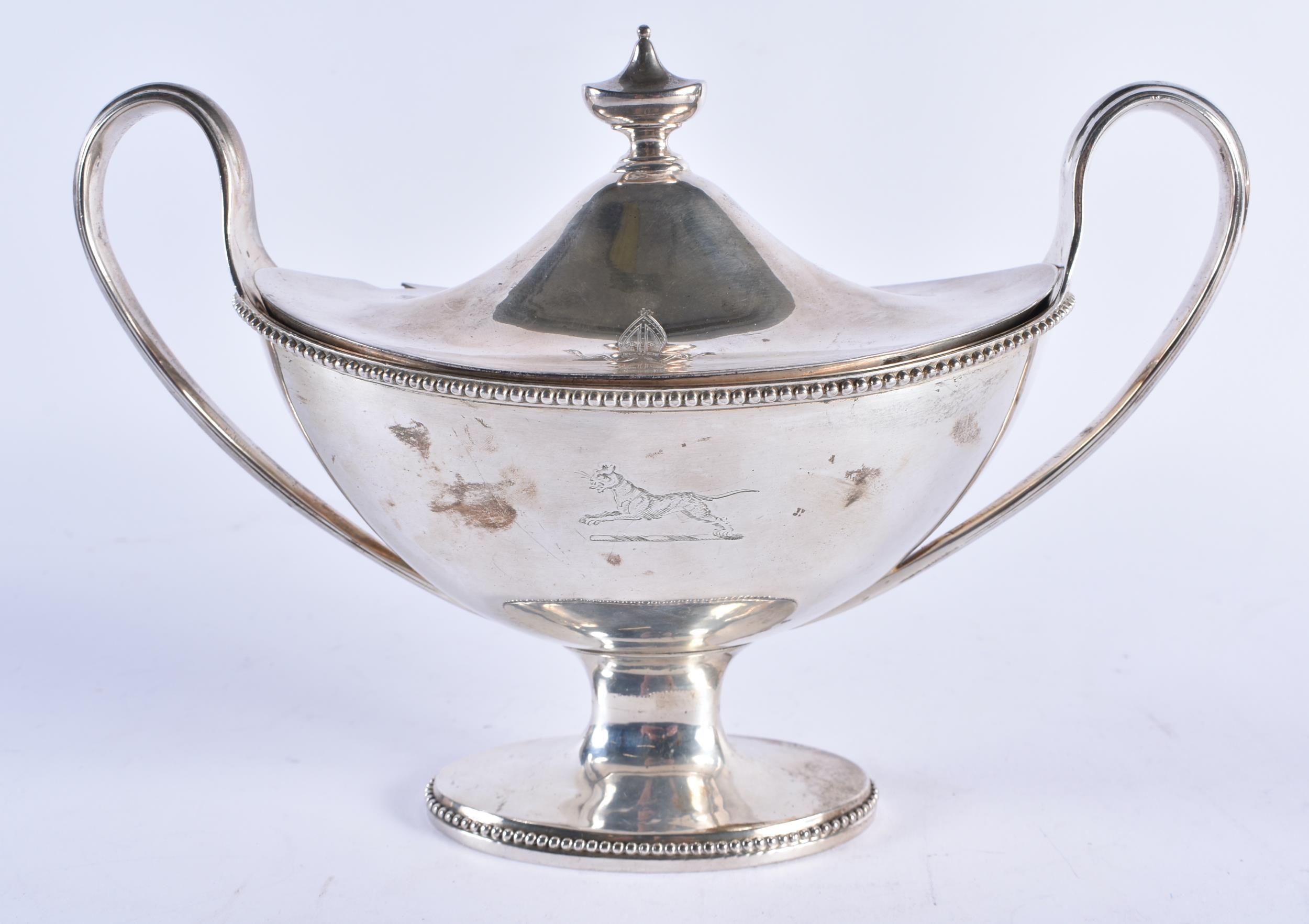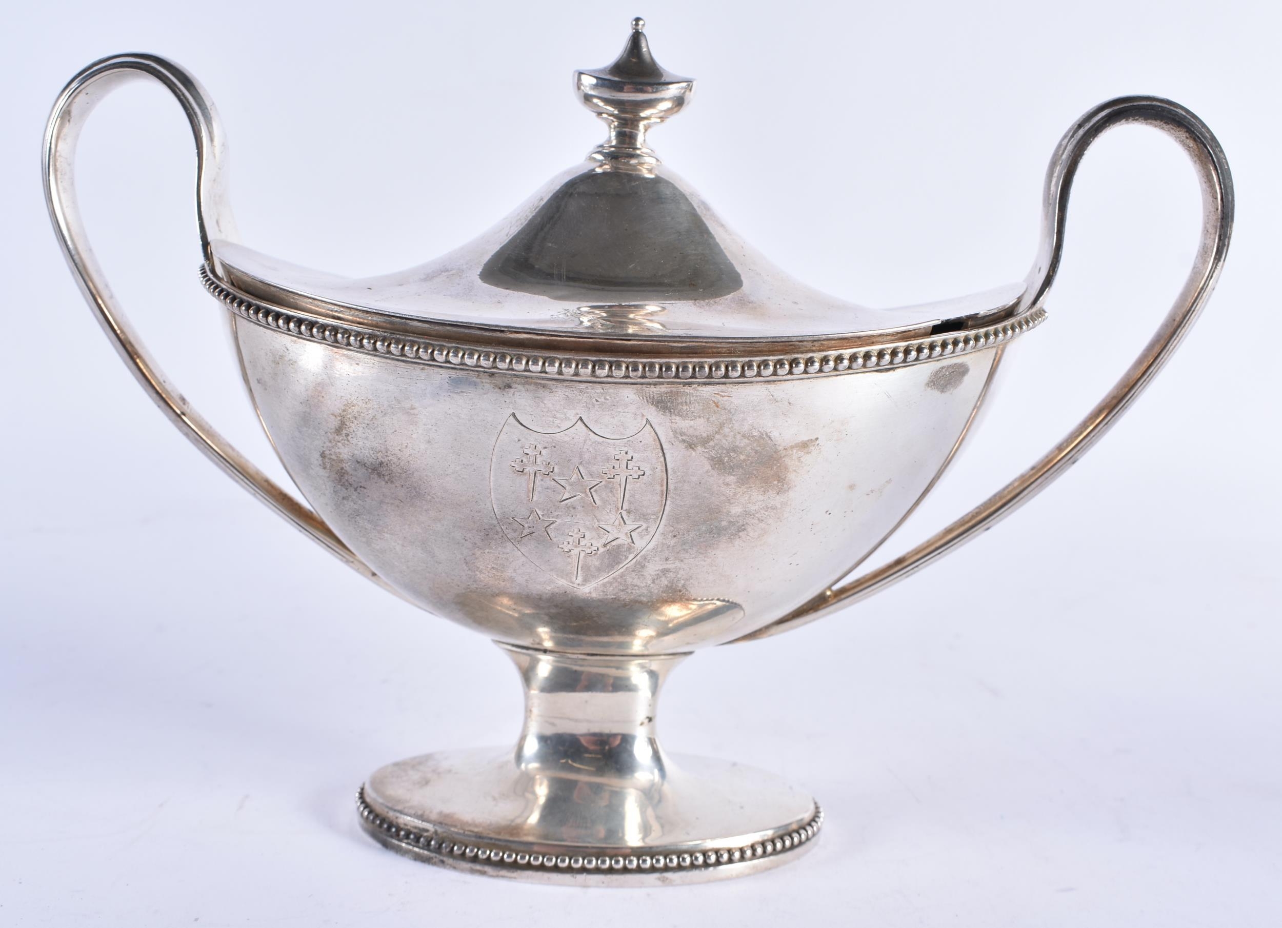 A GEORGE III SILVER SAUCE TUREEN AND COVER with interesting Bishops Mitre crest. 560 grams. London 1788. 21 cm x 15 cm.