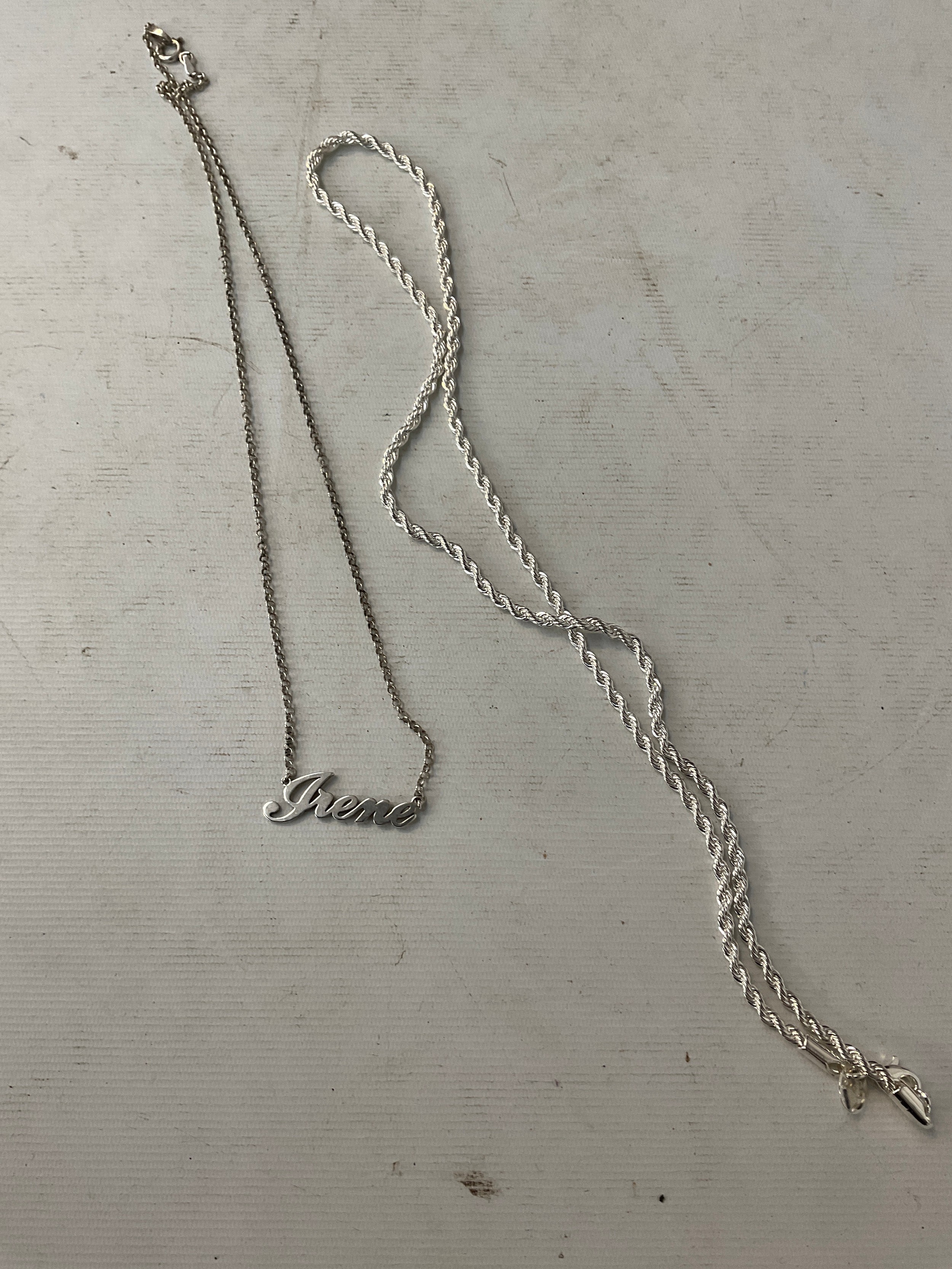 Two silver stamped necklaces, weight 15 grams