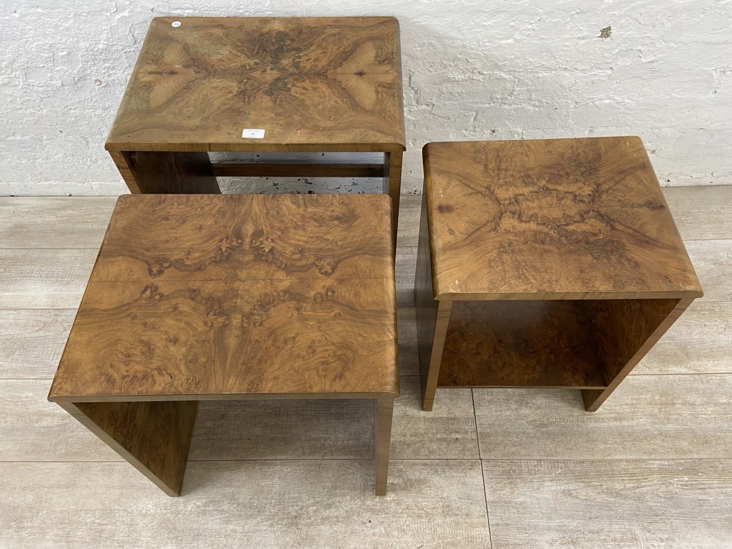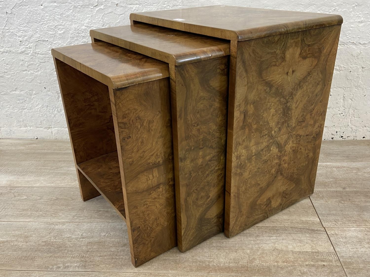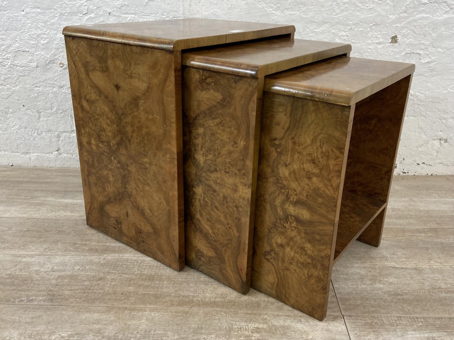 An Art Deco walnut nest of three tables - approx. 59cm high x 53cm wide x 38cm deep