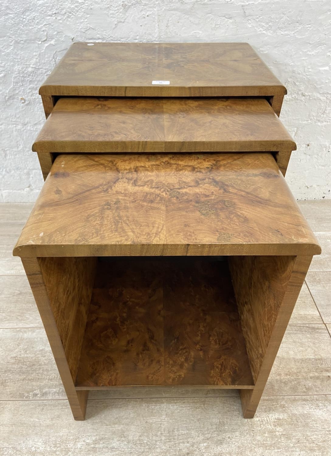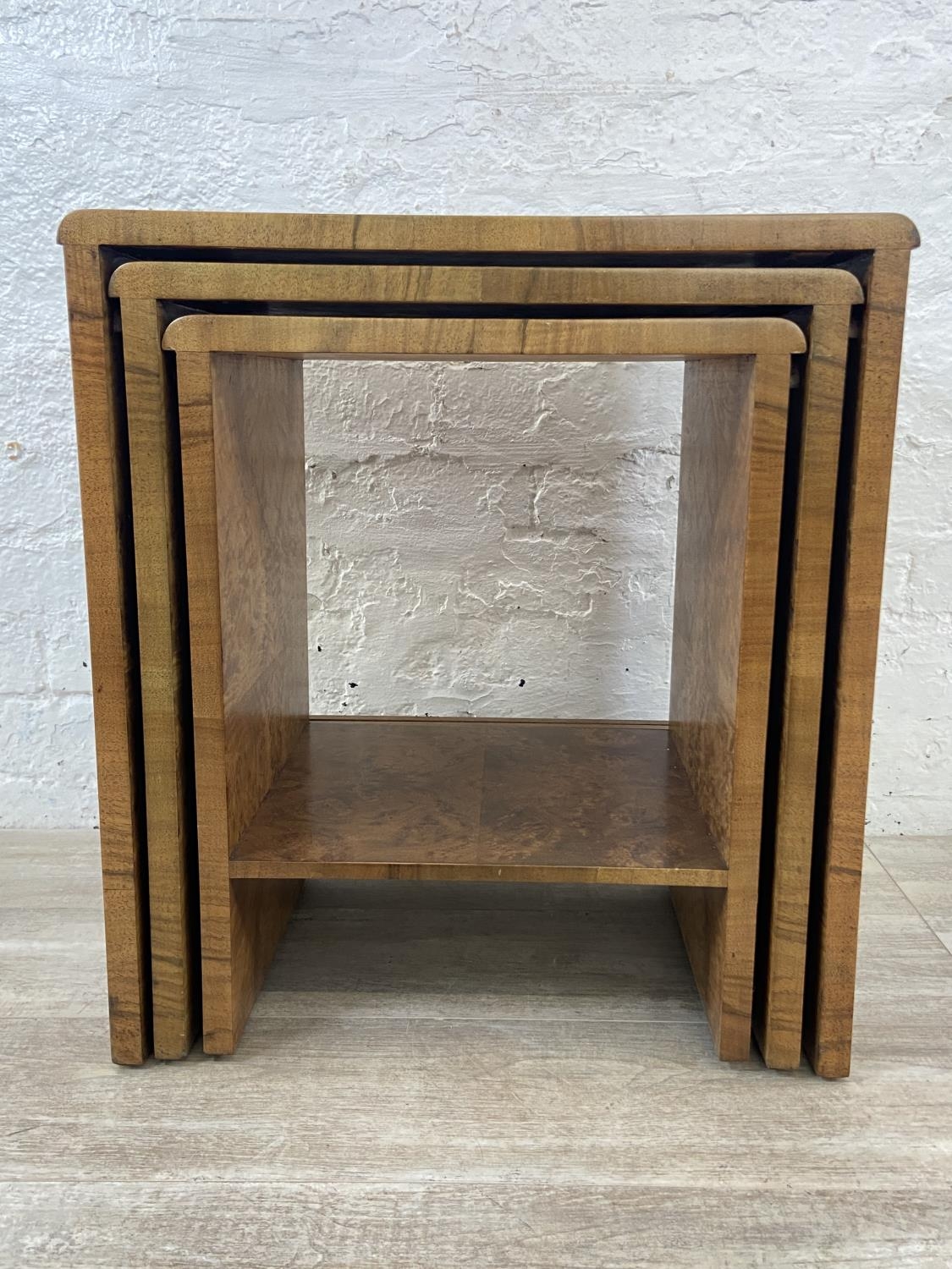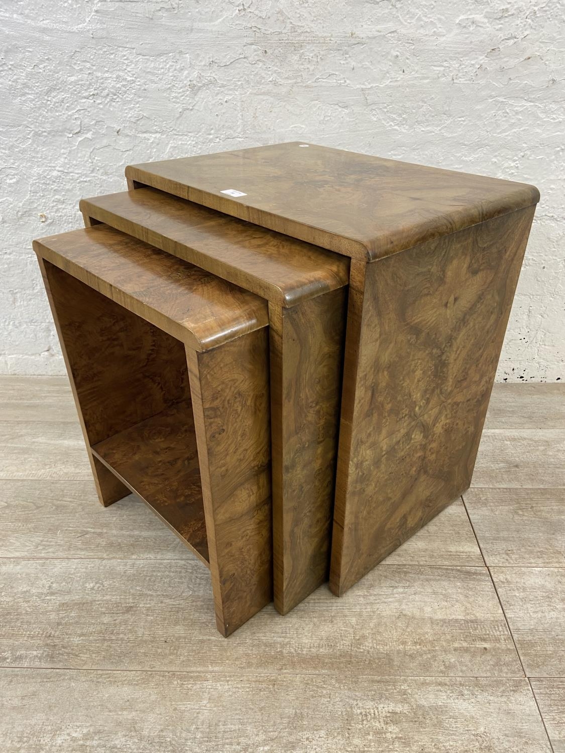 An Art Deco walnut nest of three tables - approx. 59cm high x 53cm wide x 38cm deep
