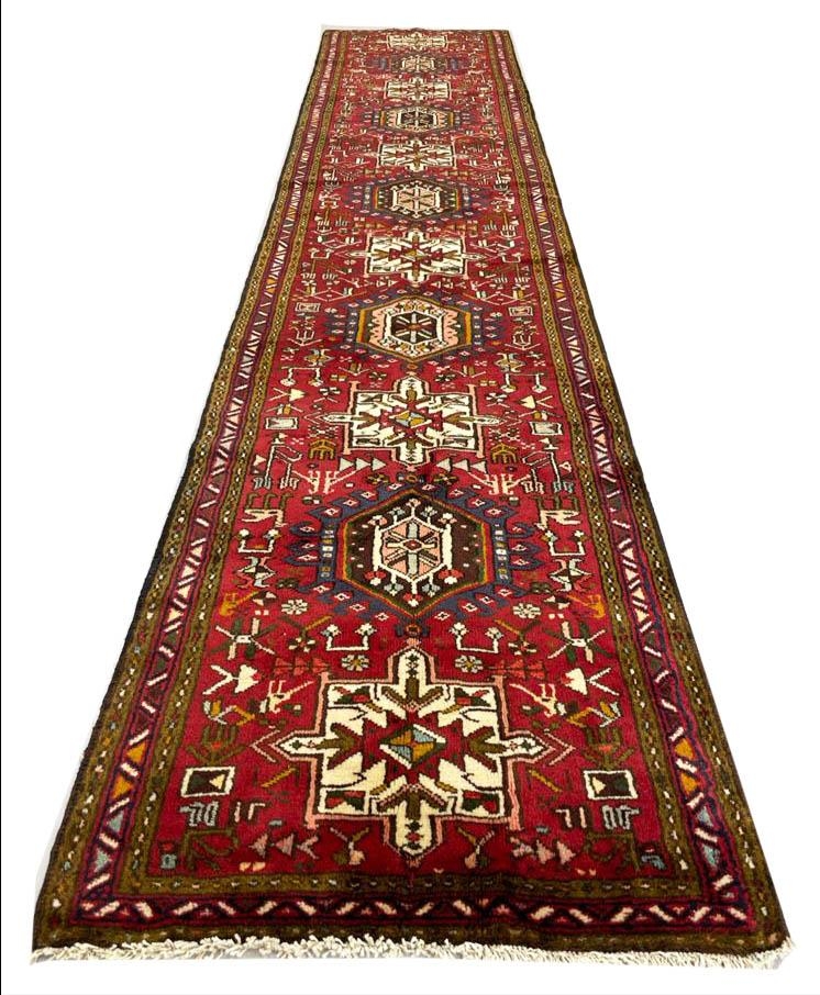 PERSIAN HERIZ RUNNER, 390cm x 77cm.