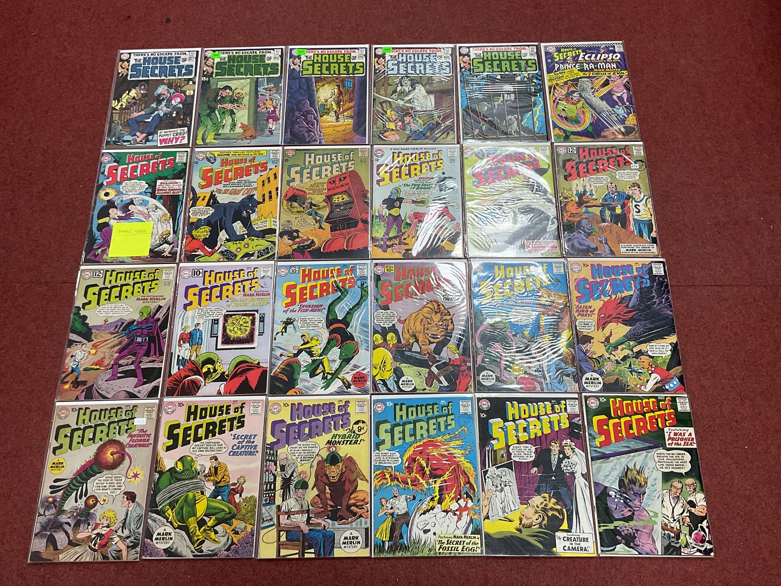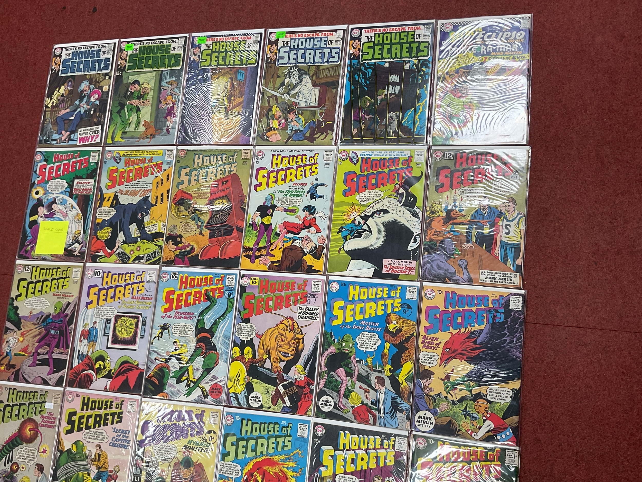 Twenty Four The House of Secrets comics by DC. Comprising of #10, #15, #27, #31, #37, #38, #39, #40, #44, #46, #50, #54, #58, #65, #66, #67, #69, #70, #77, #81 Key issue mystery format begins and first appearance of Abel, #82, #83, #85, #86. Conditions of comics are variable. Faults to comics noted.