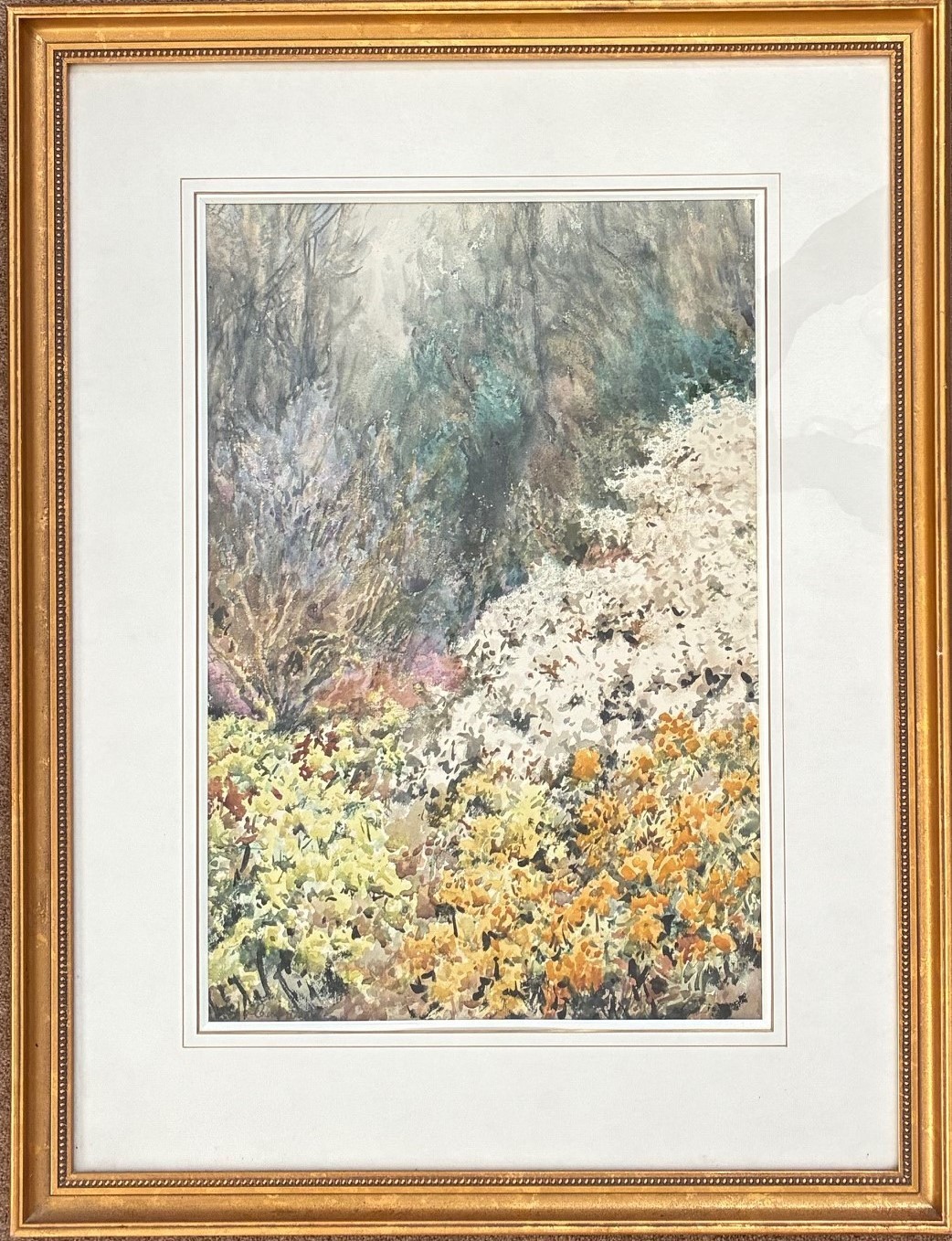 William John Caparne (British 1853-1940) Garden shrubs, watercolour, signed, 93 x 36cm.
