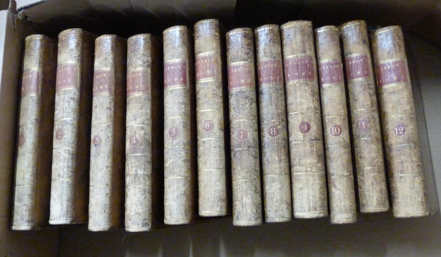 GIBBON EDWARD. The History of the Decline & Fall of the Roman Empire. 12 vols. Eng. port. frontis. Tree calf, a nice enough set. 1797.