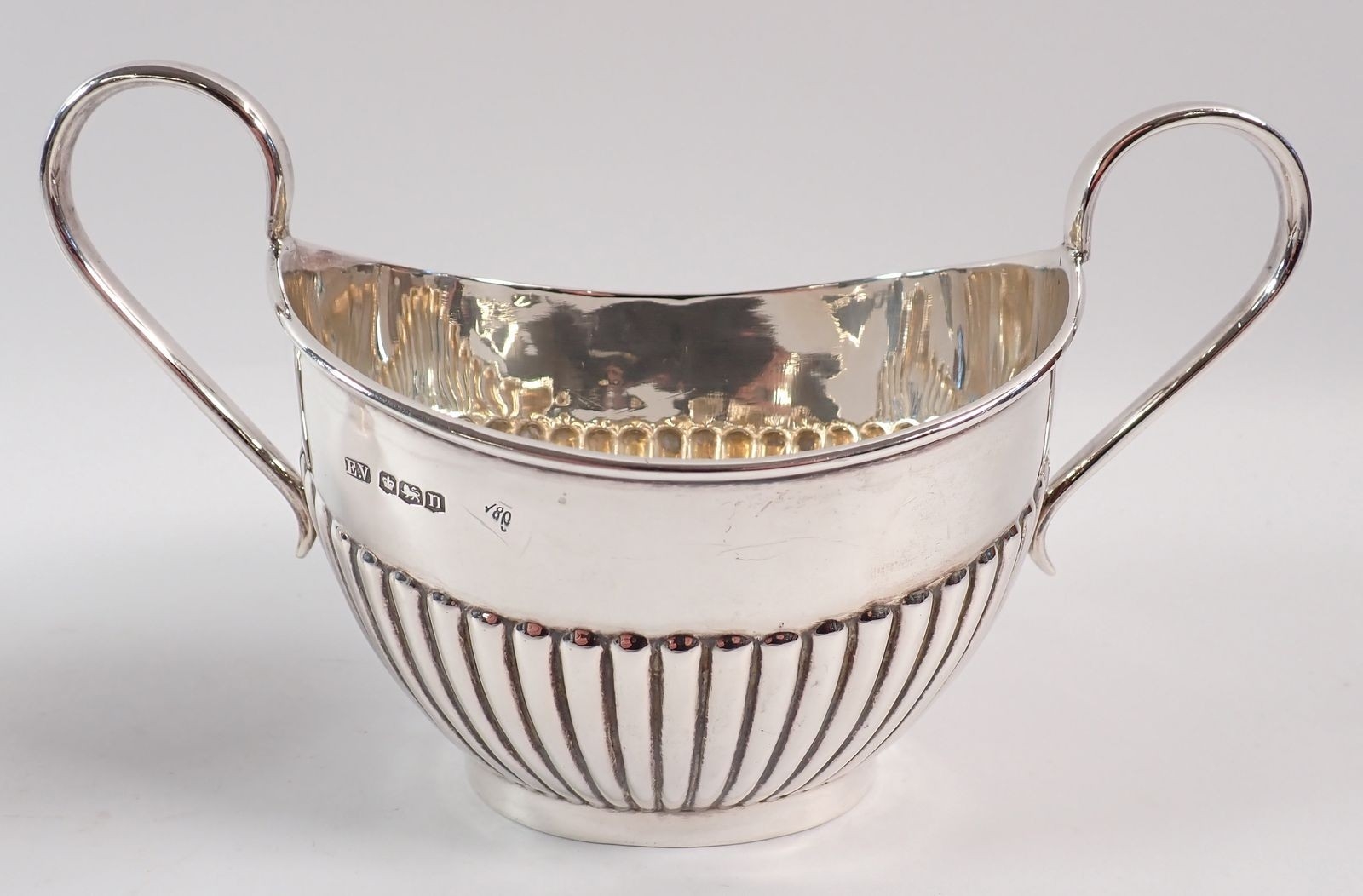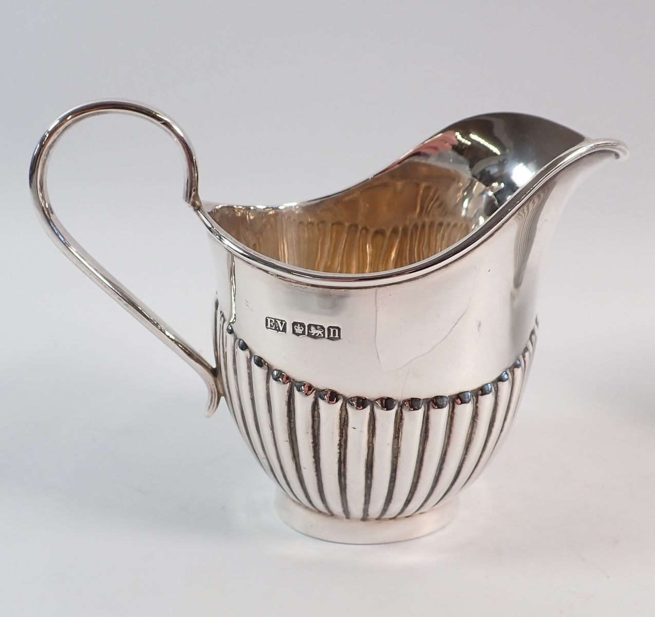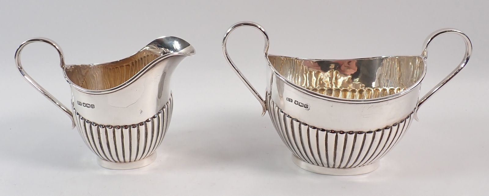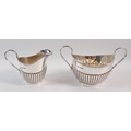 A Viners silver half gadrooned sugar bowl and milk jug, Sheffield 1930, 455g