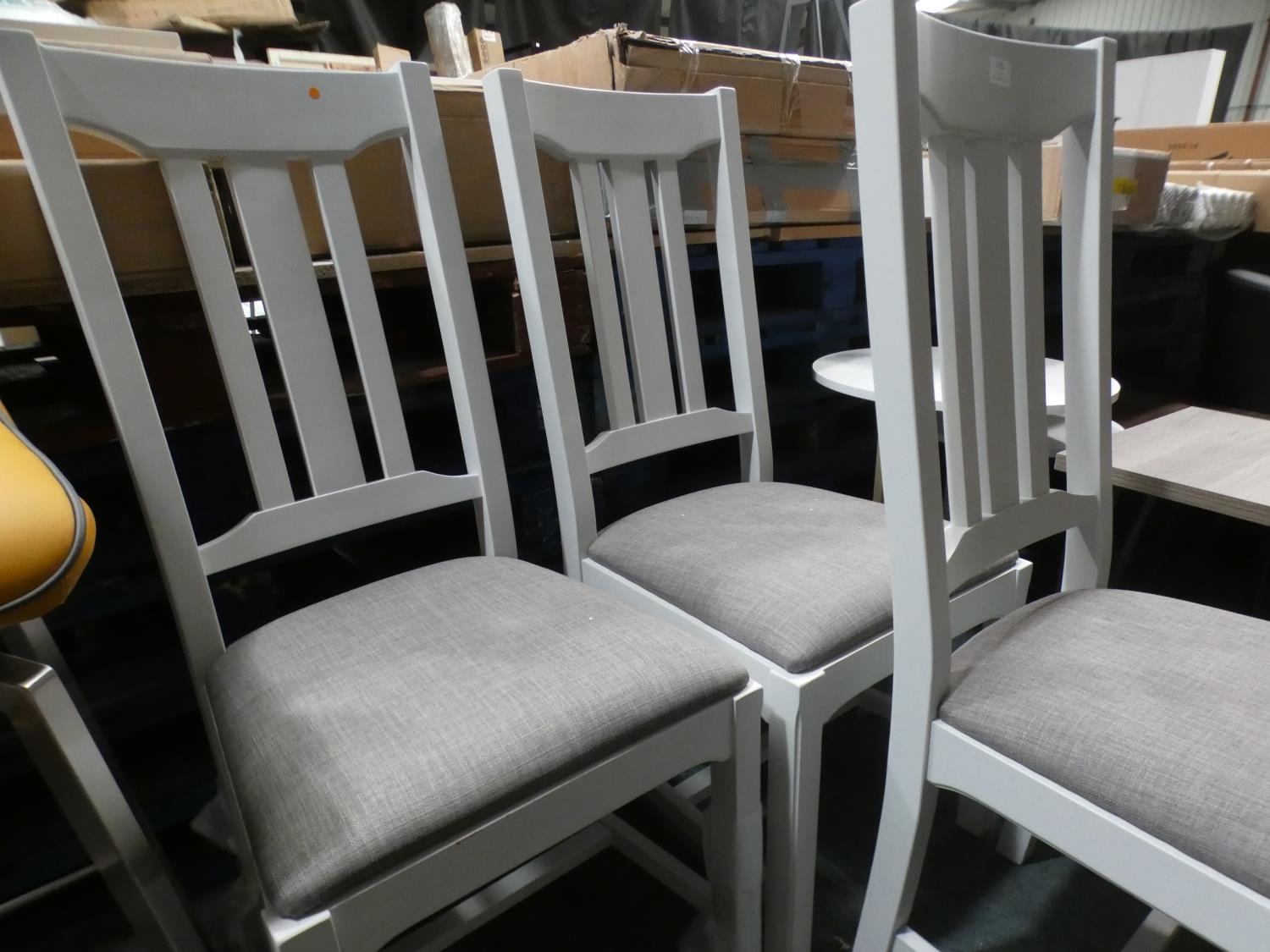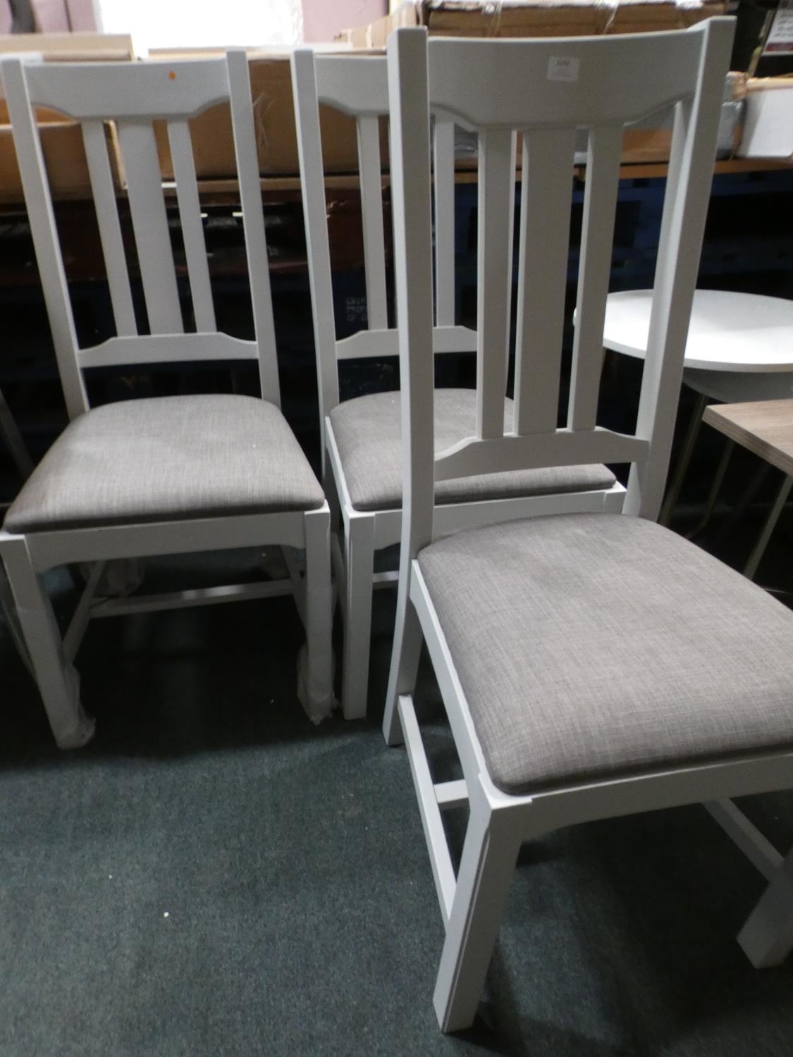 A three cloud grey painted dining chairs * This lot is subject to VAT