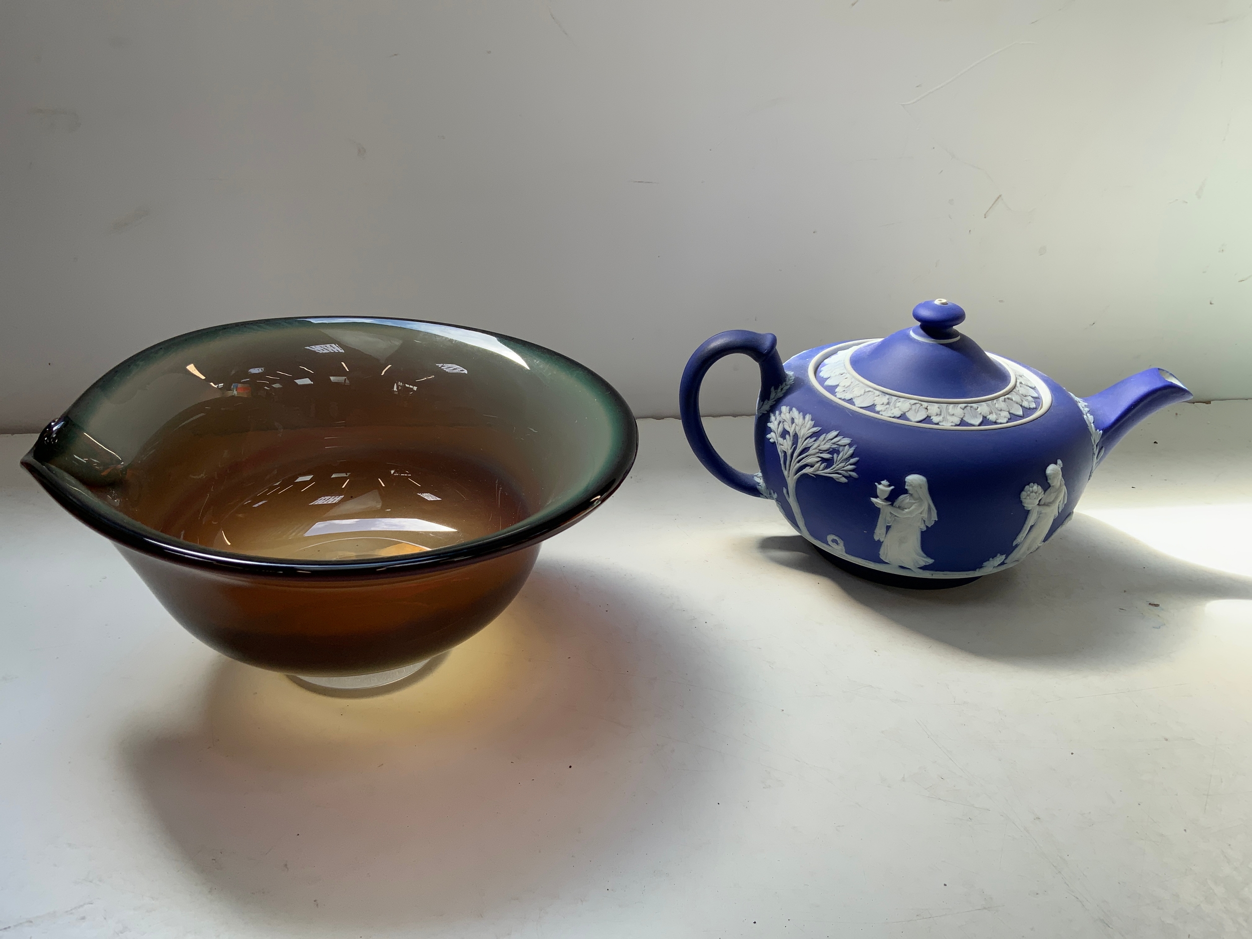 Art Glass Bowl and Wedgwood Teapot