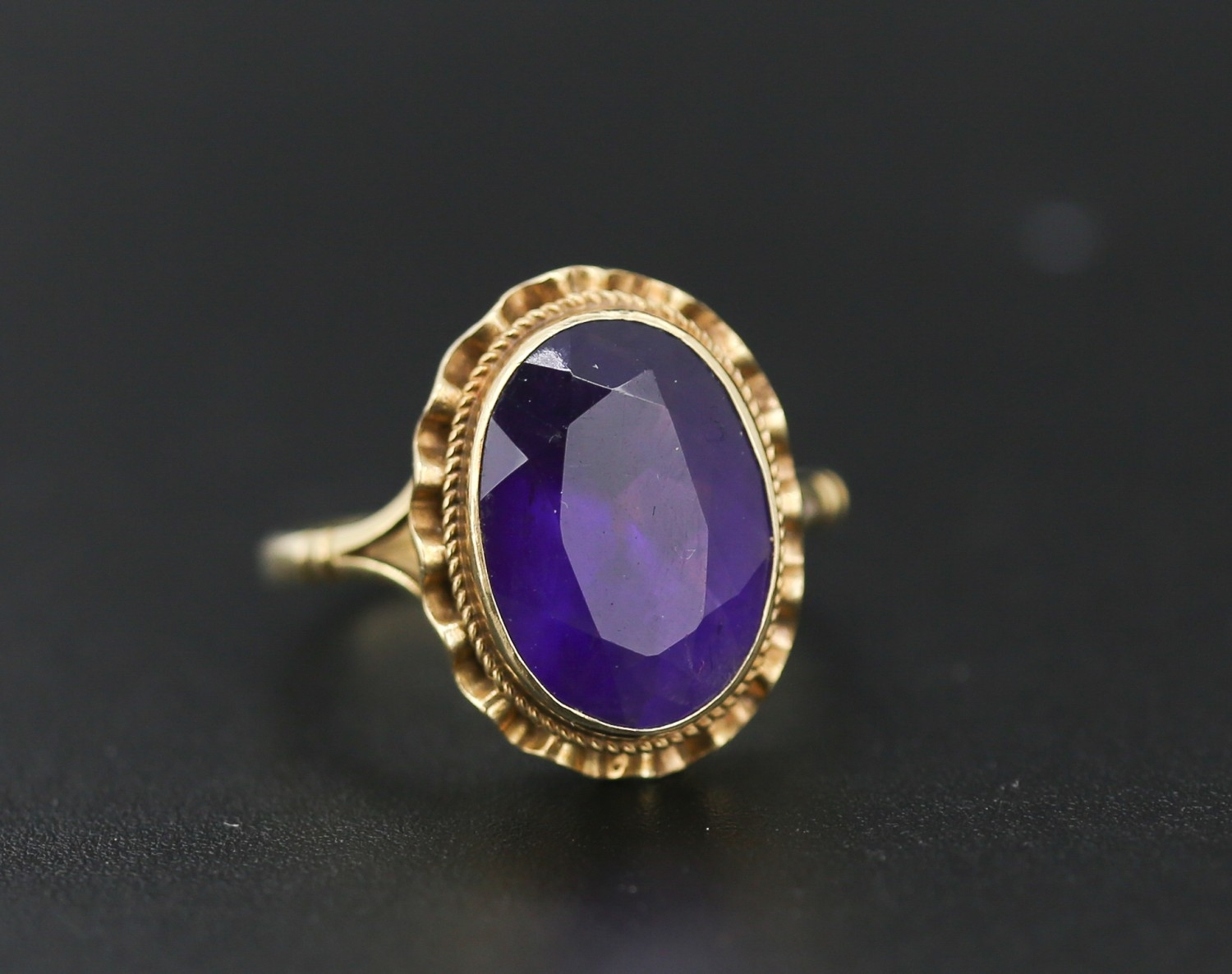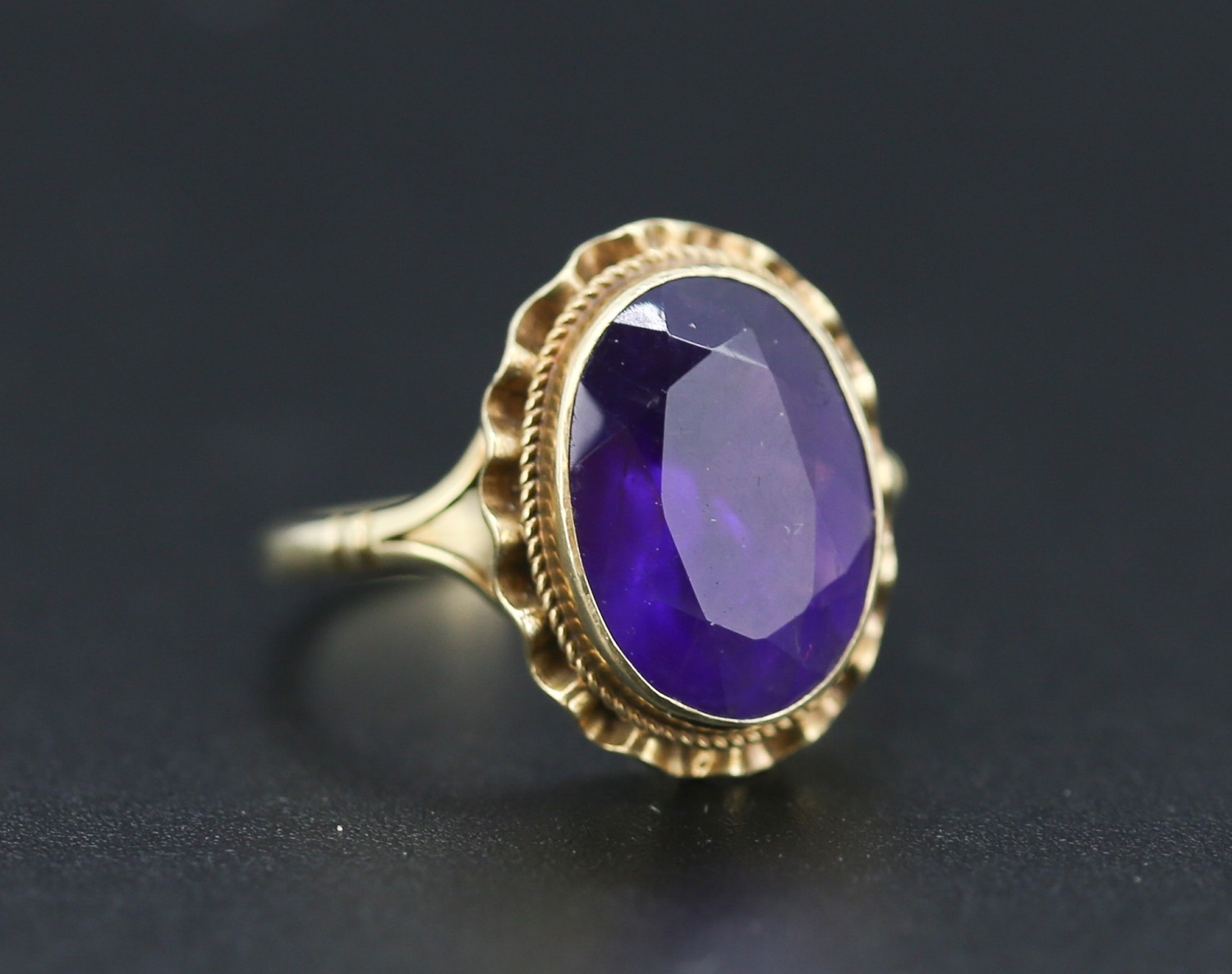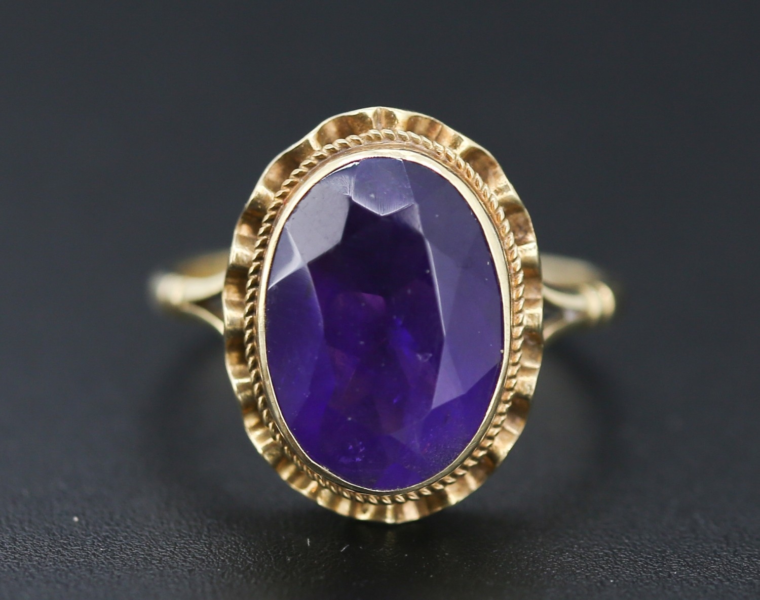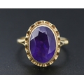 Amethyst Set Single Stone Ring Mounted in 9 Carat Yellow Gold Ring Size O