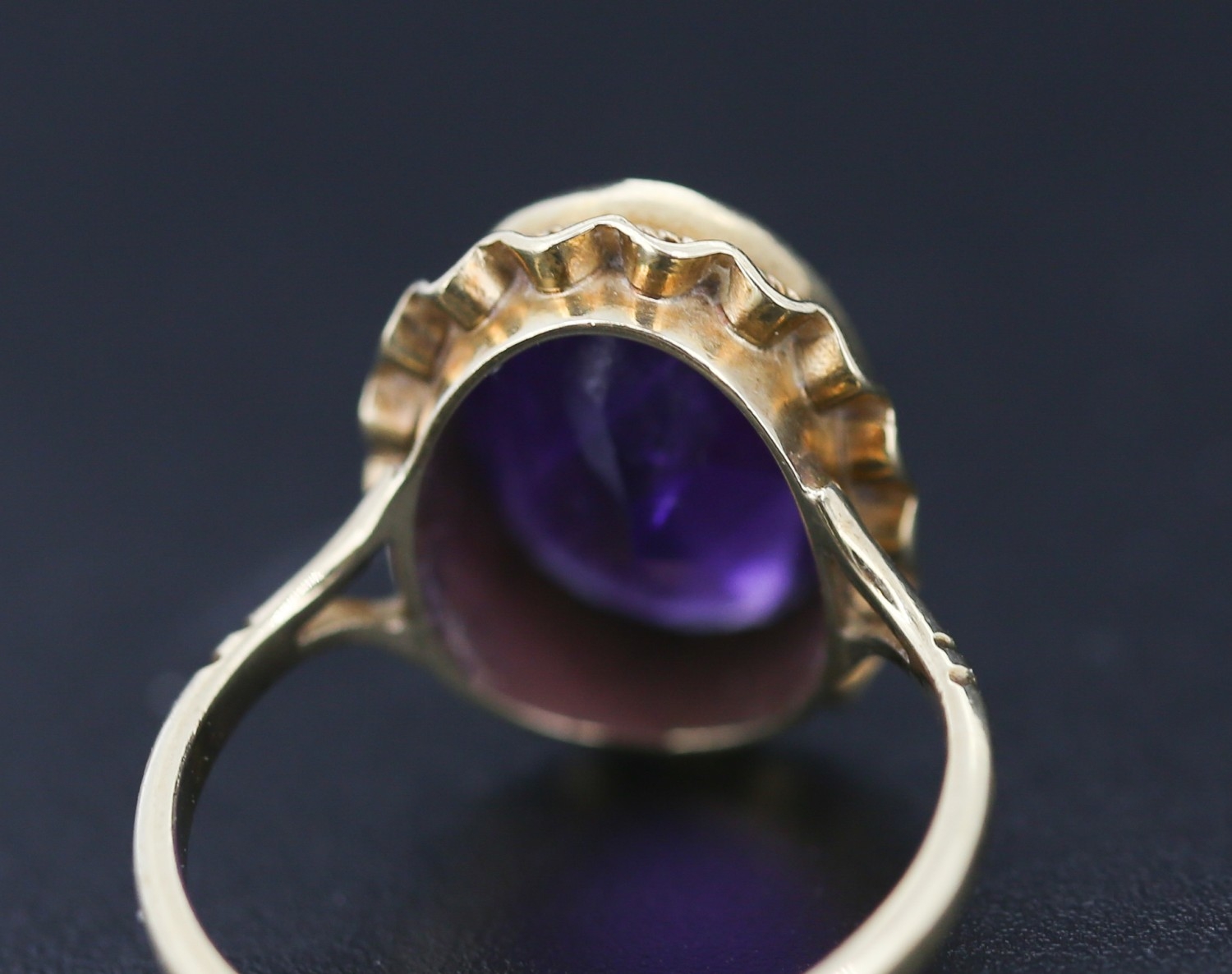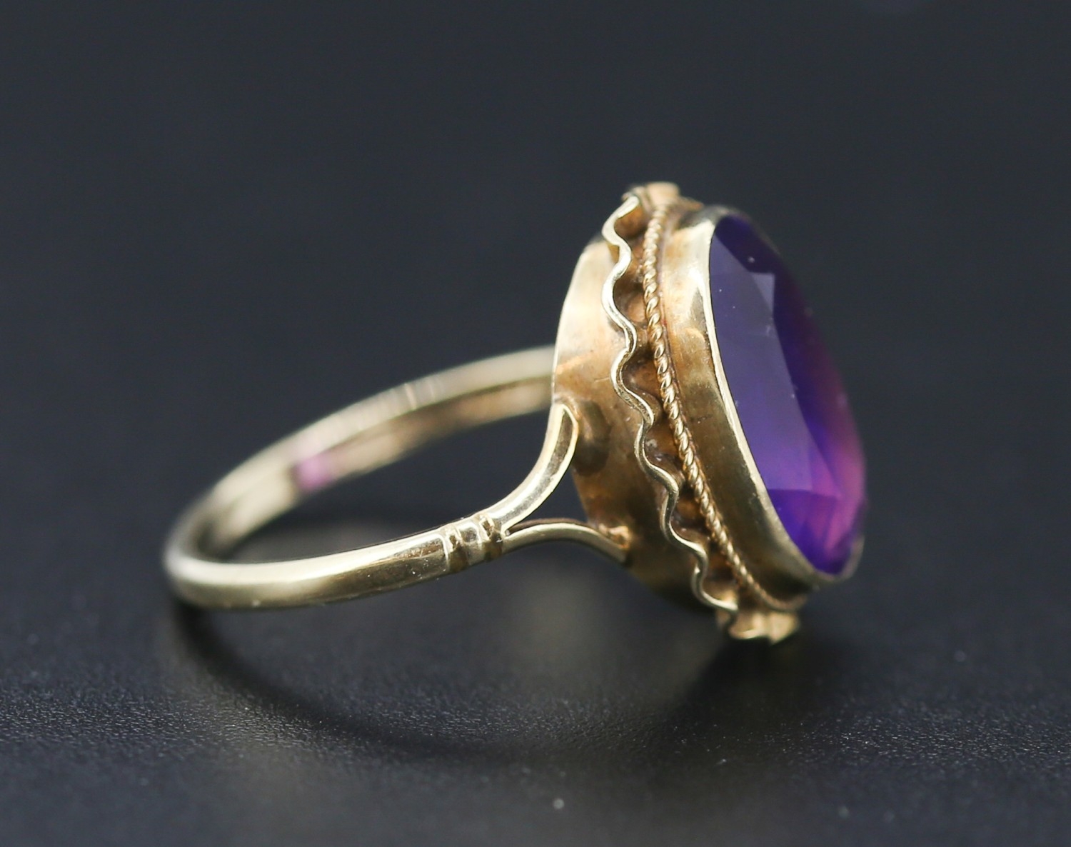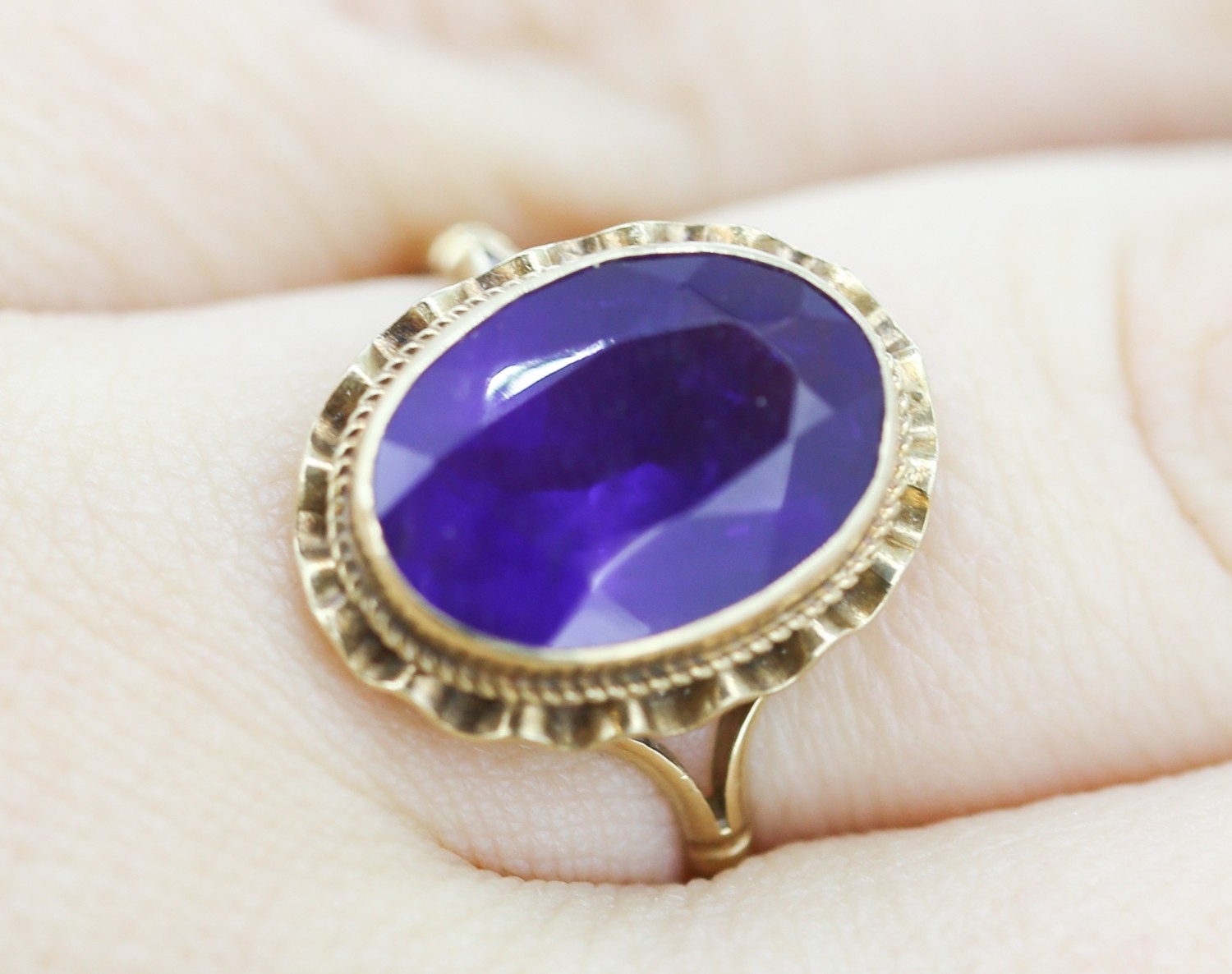 Amethyst Set Single Stone Ring Mounted in 9 Carat Yellow Gold Ring Size O