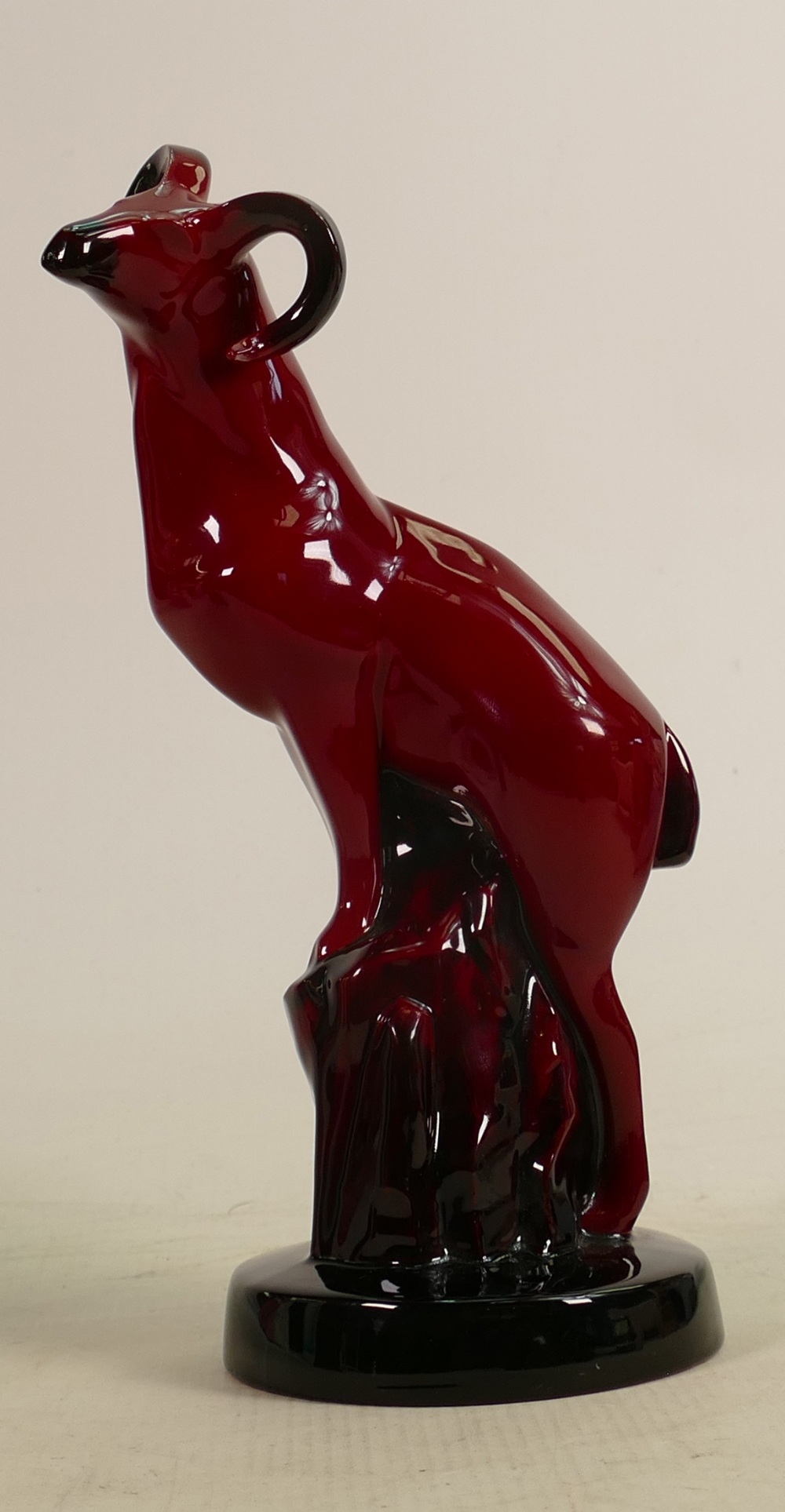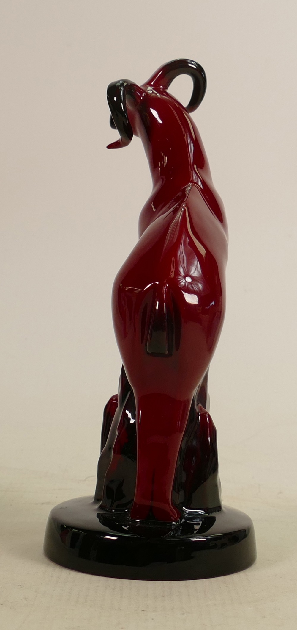 Royal Doulton Flambe model of a goat on a rock: C1980s, height 25cm.