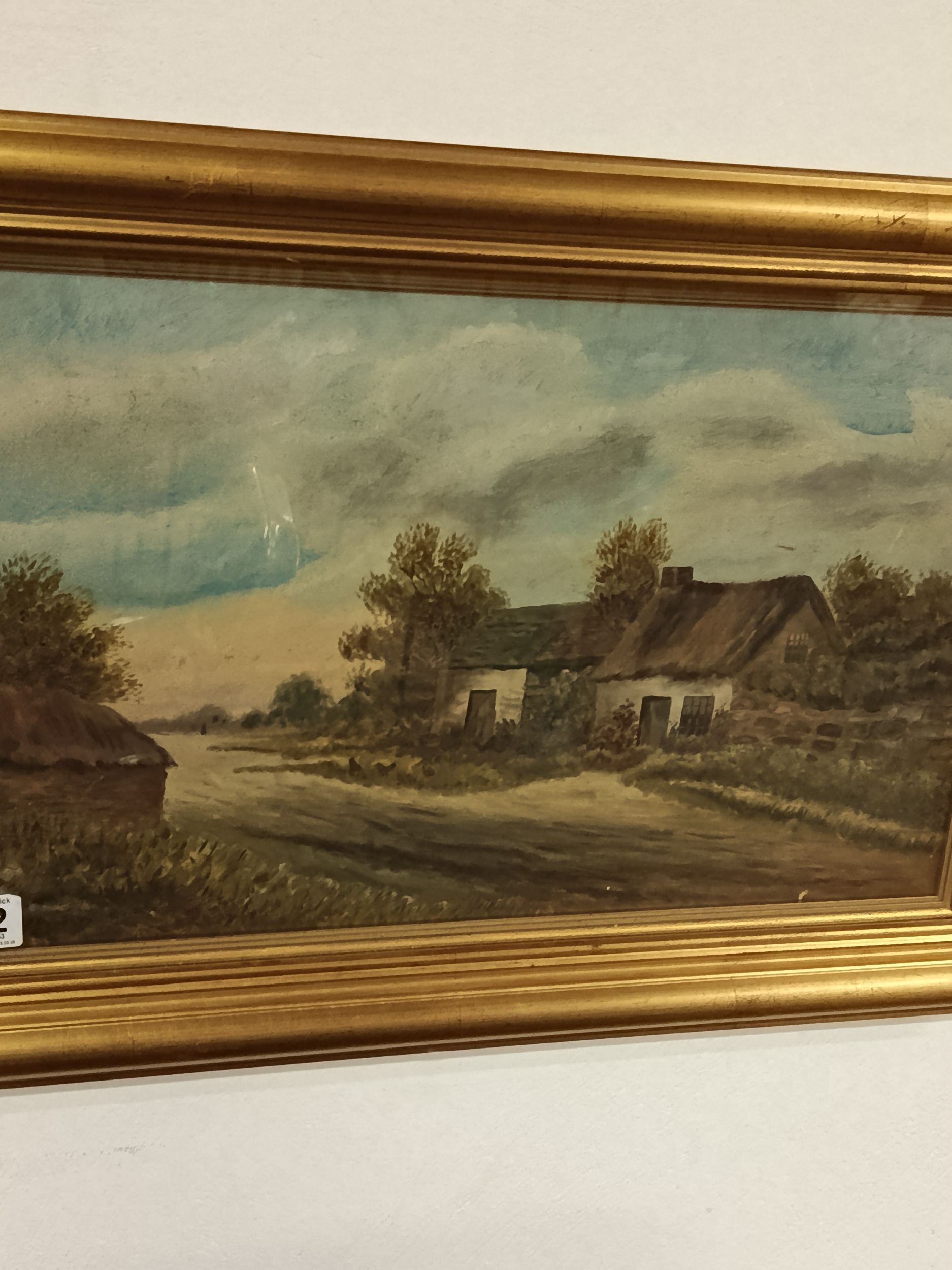 Gilt Framed - Oil on Canvas - Cottage Scene. Signed M.Morris 1908