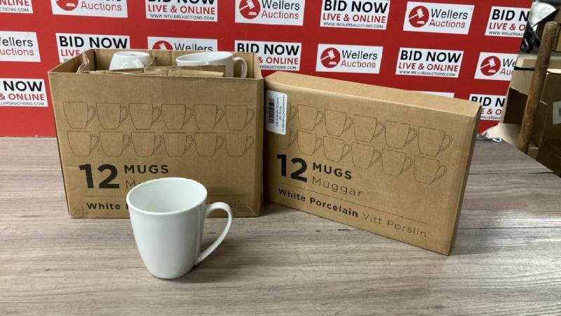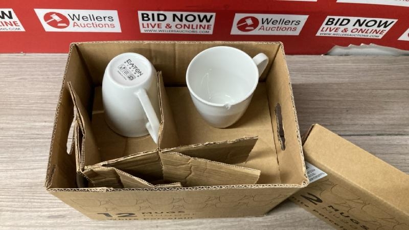 PORCELAIN MUG SET / 9 MUGS ONLY / ONE HAS A CHIP / E8