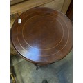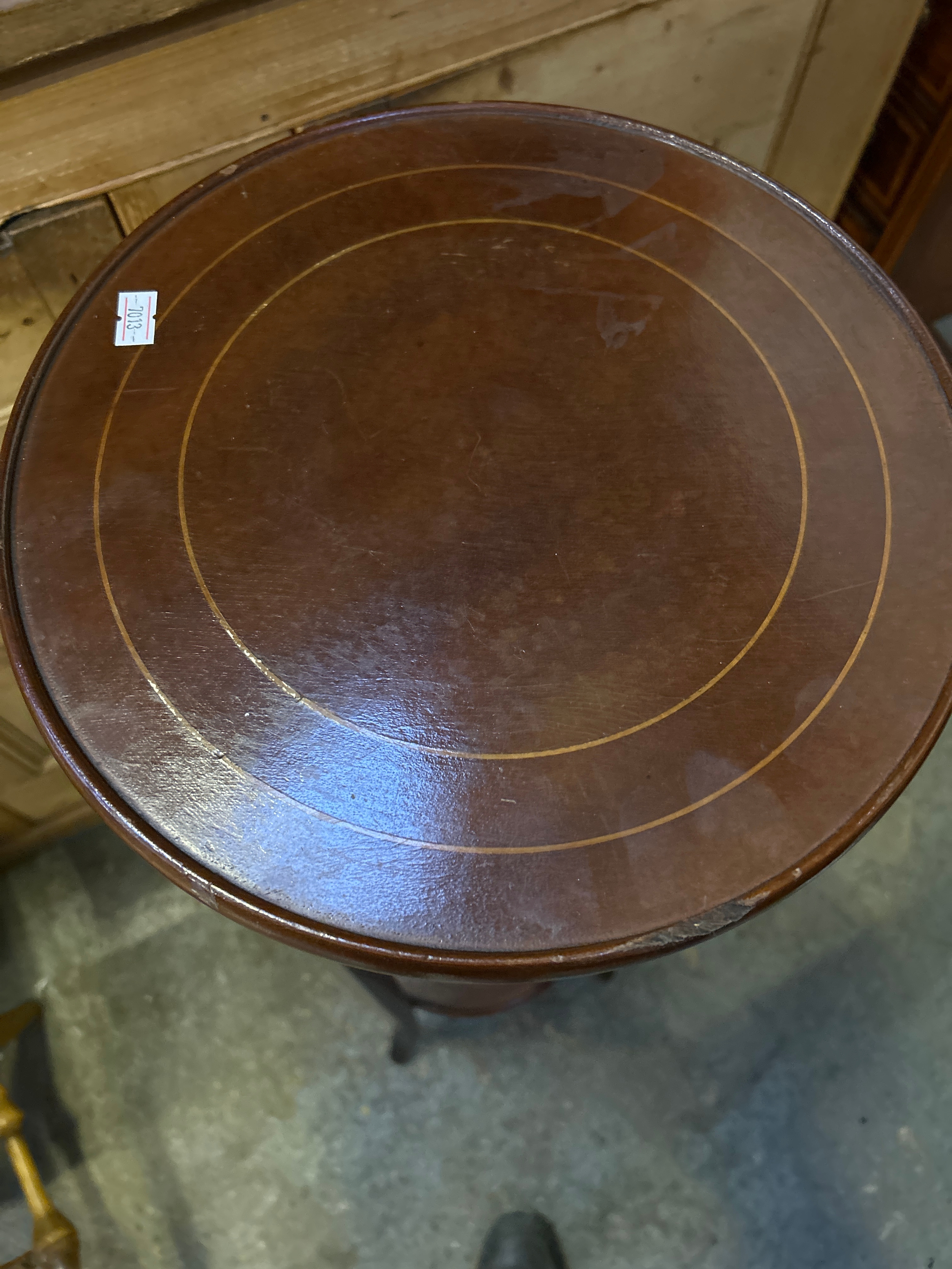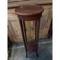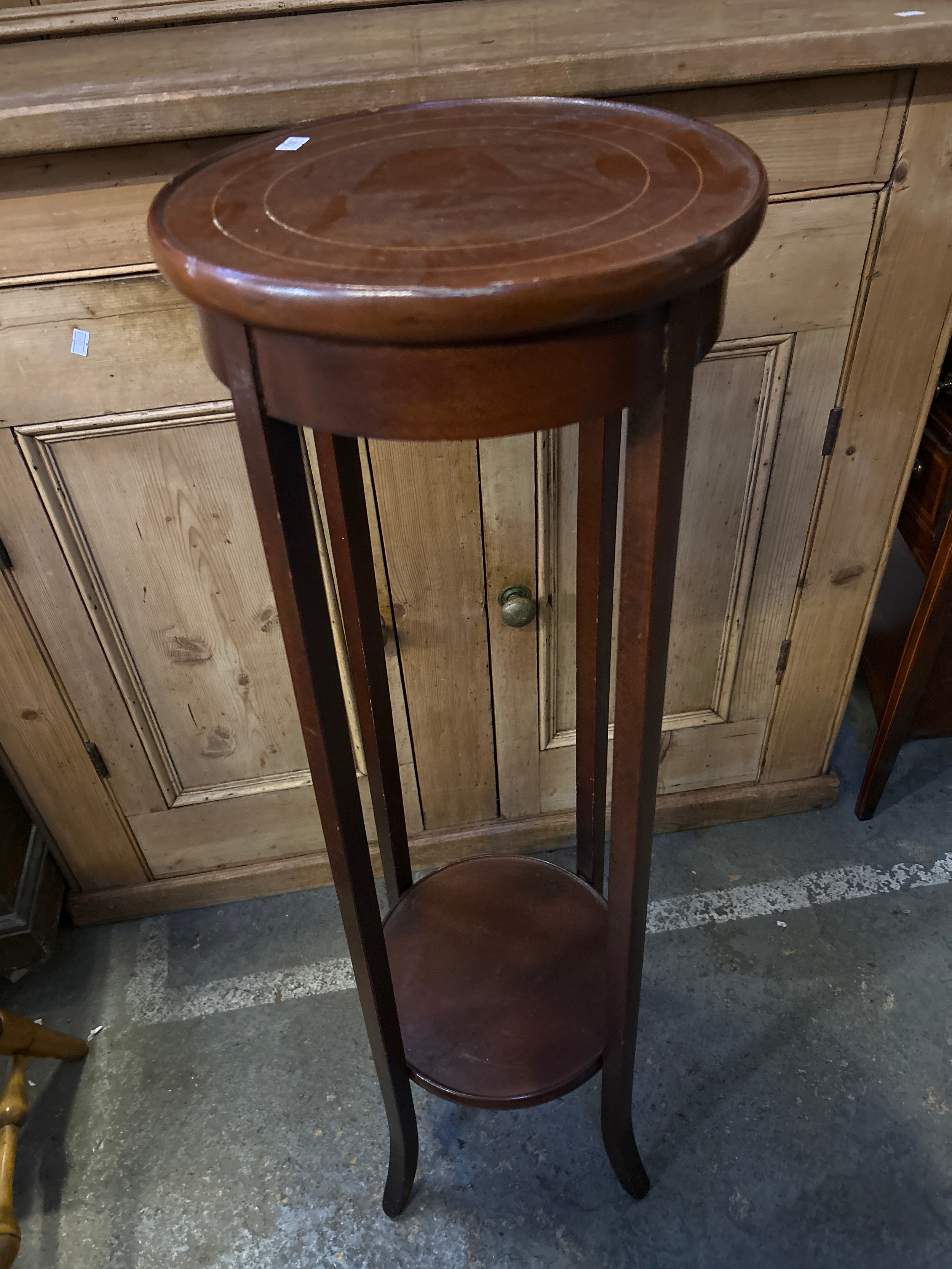An Edwardian style mahogany plant stand with boxwood stringing to the top, the four square legs joined by a shelf below