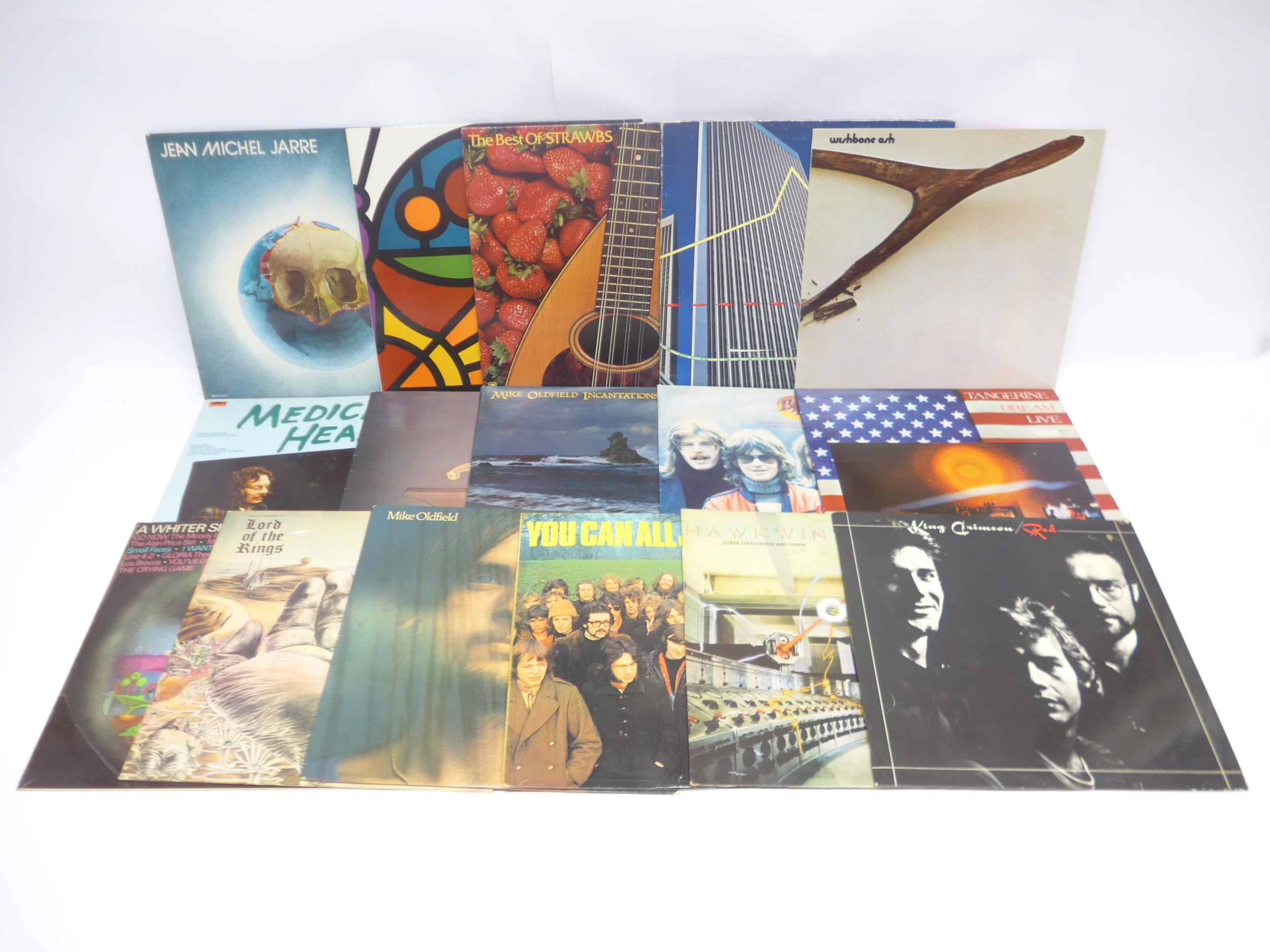Prog - A collection of sixteen LPs, artists include King Crimson, Wishbone Ash, Yes, The Strawbs, Barclay James Harvest, Jean Michel Jurre, Medicine Head, Mike Oldfield, Tangerine Dream, Bo Hansson, Rick Wakeman and 'You Can All Join In' and 'A Whiter Shade' compilations (16, vinyl and sleeves generally VG-VG+)