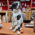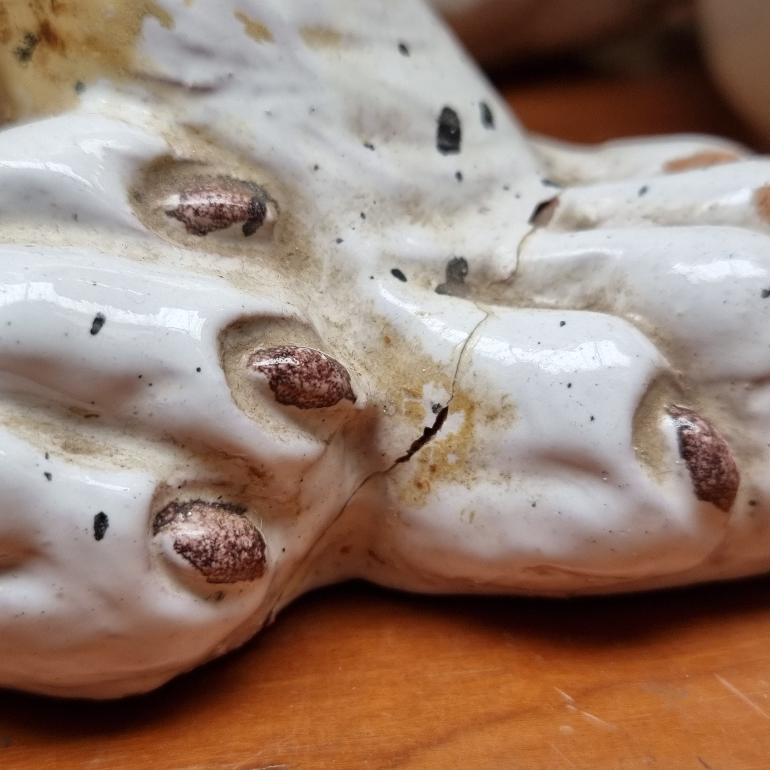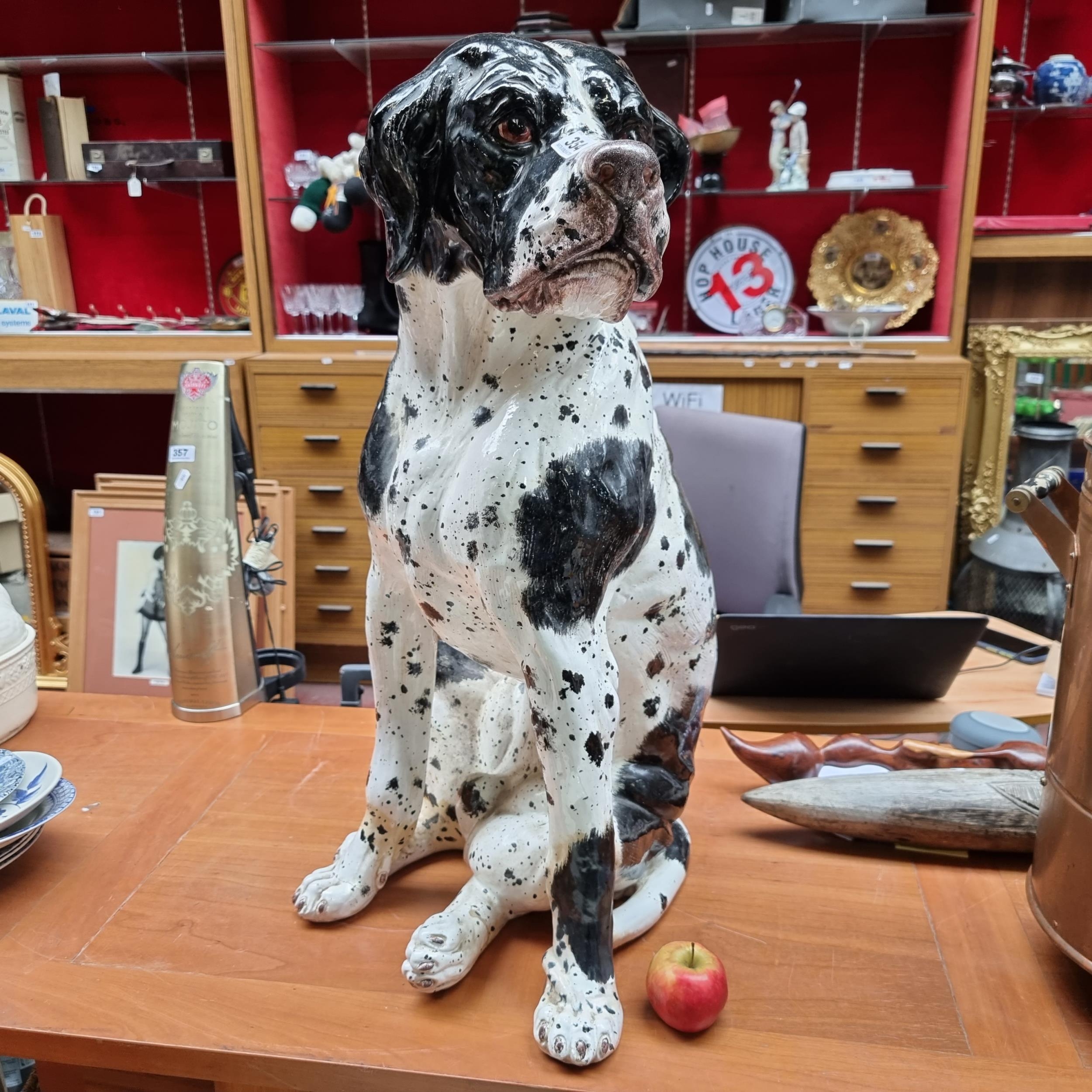 STAR LOT - A very large, rare, 19th century black and white ceramic dog. A Victorian ''Talking-Piece'' Fabulous face (One Paw with old repair). 70cm Tall. Heavy super piece. Brilliant face.