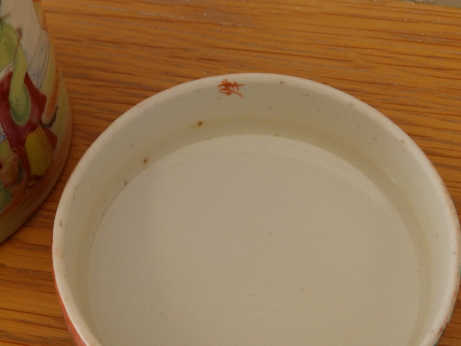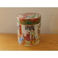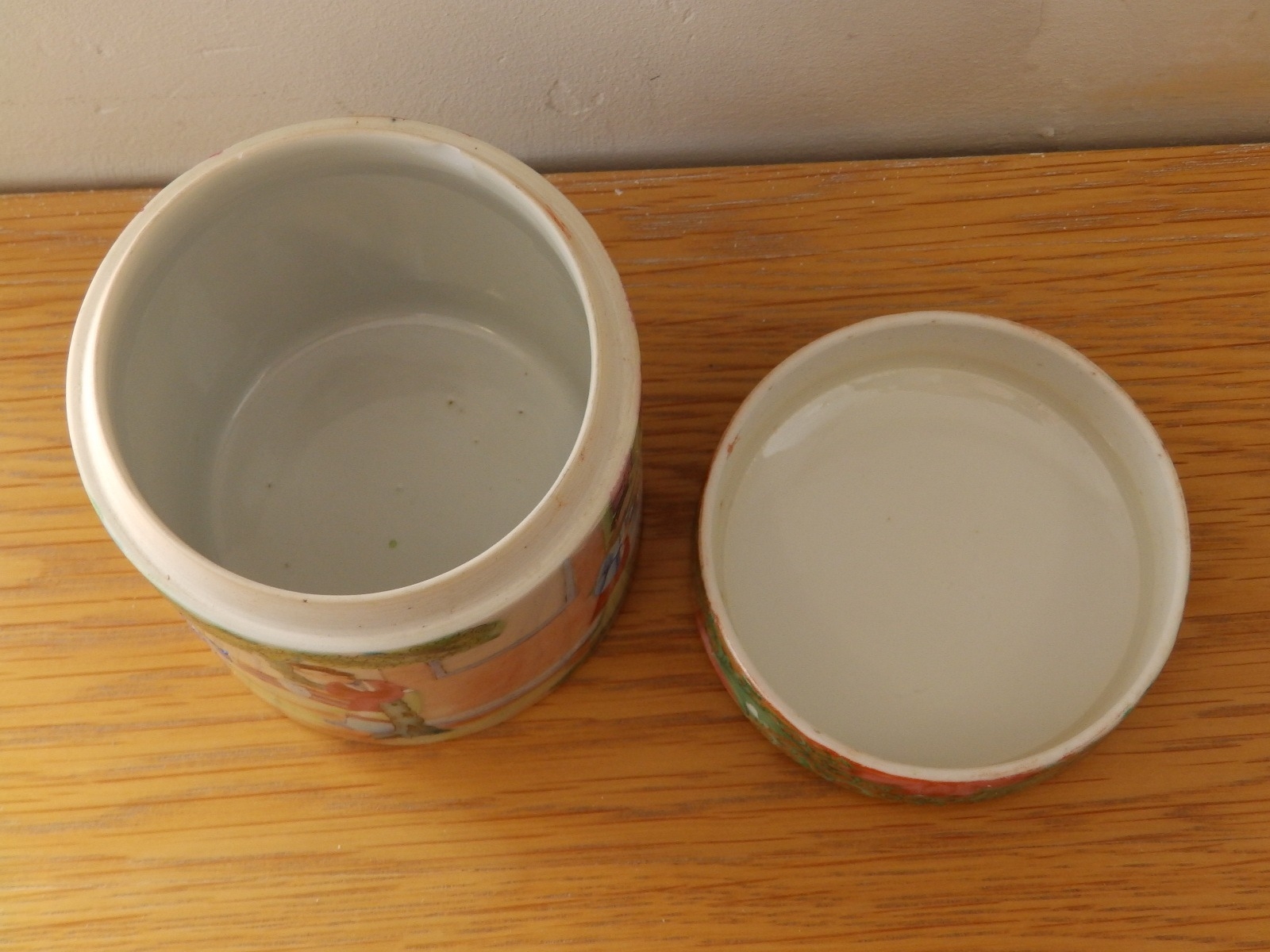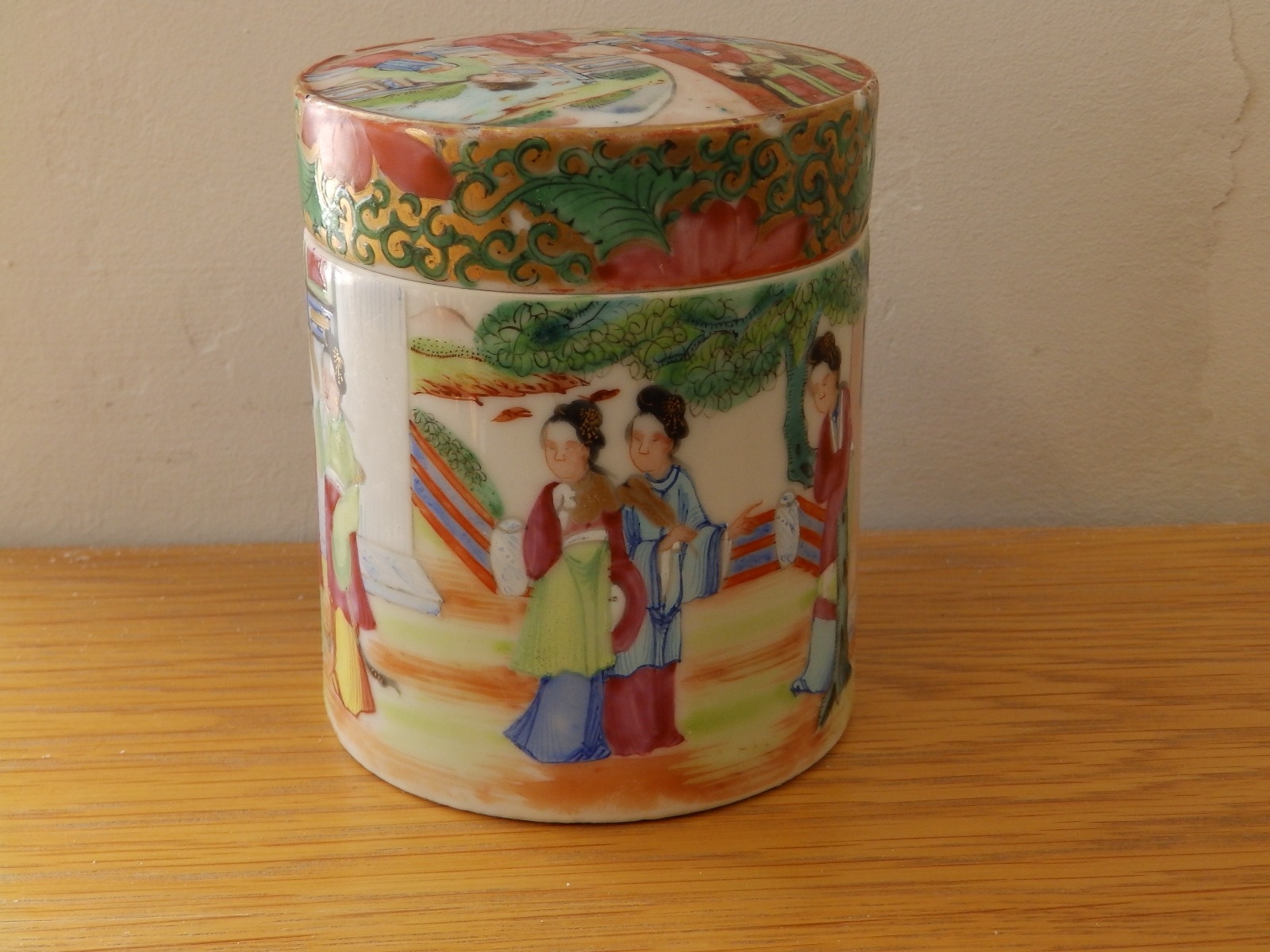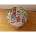 A Cantonese porcelain cylindrical jar , 3.6" high - cover chipped.