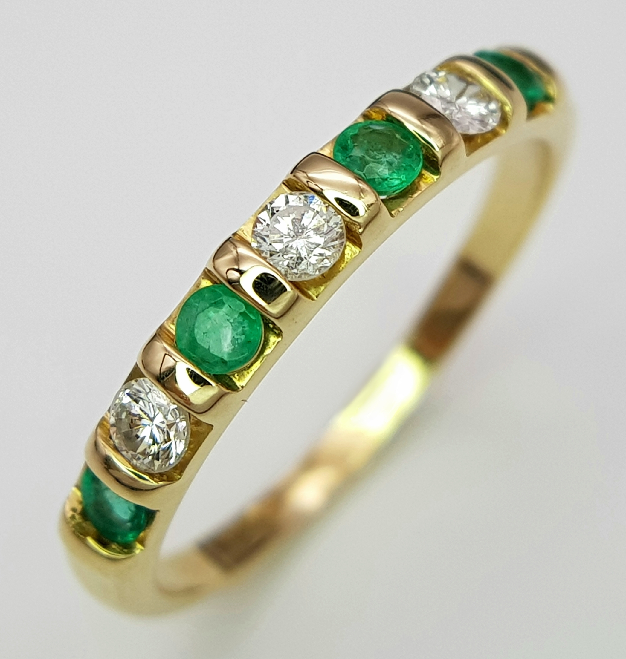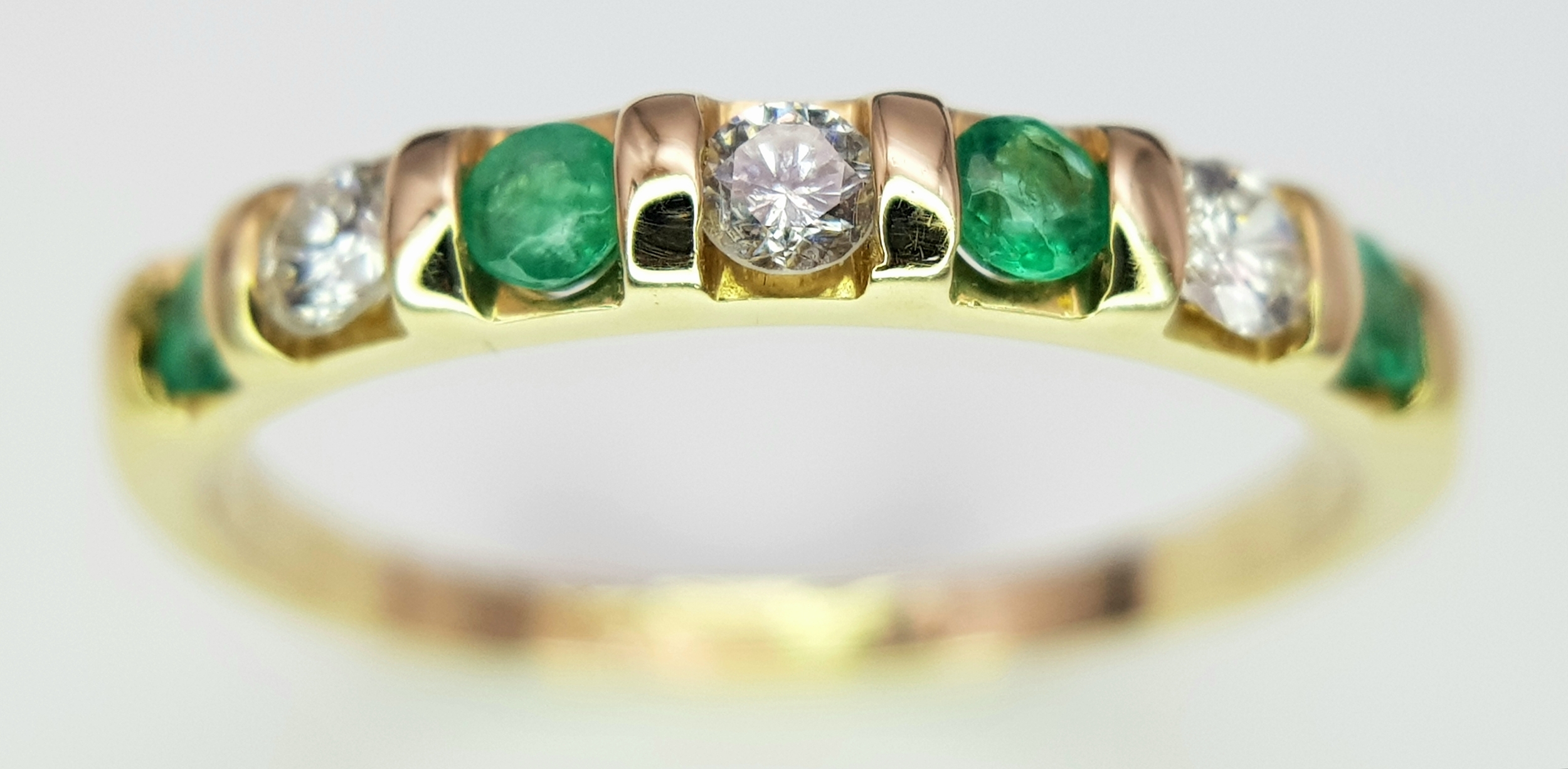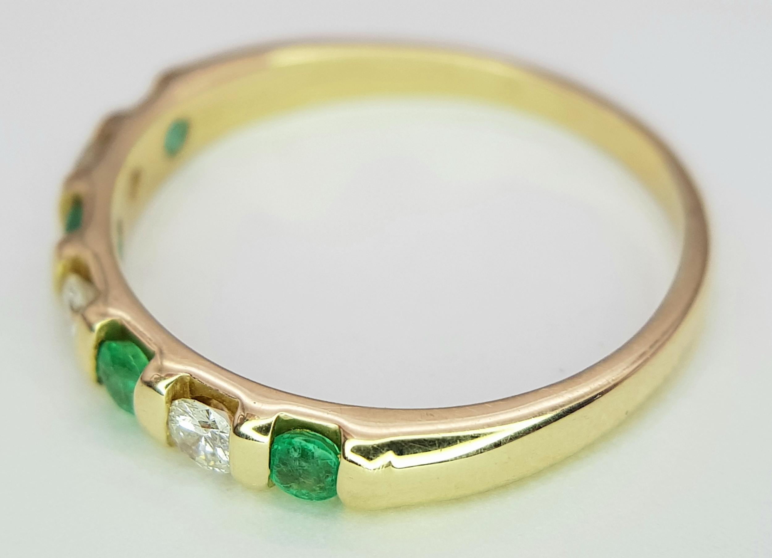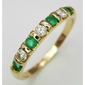 A 14K Yellow Gold, Diamond and Emerald Ring. Size P. 2.22g.