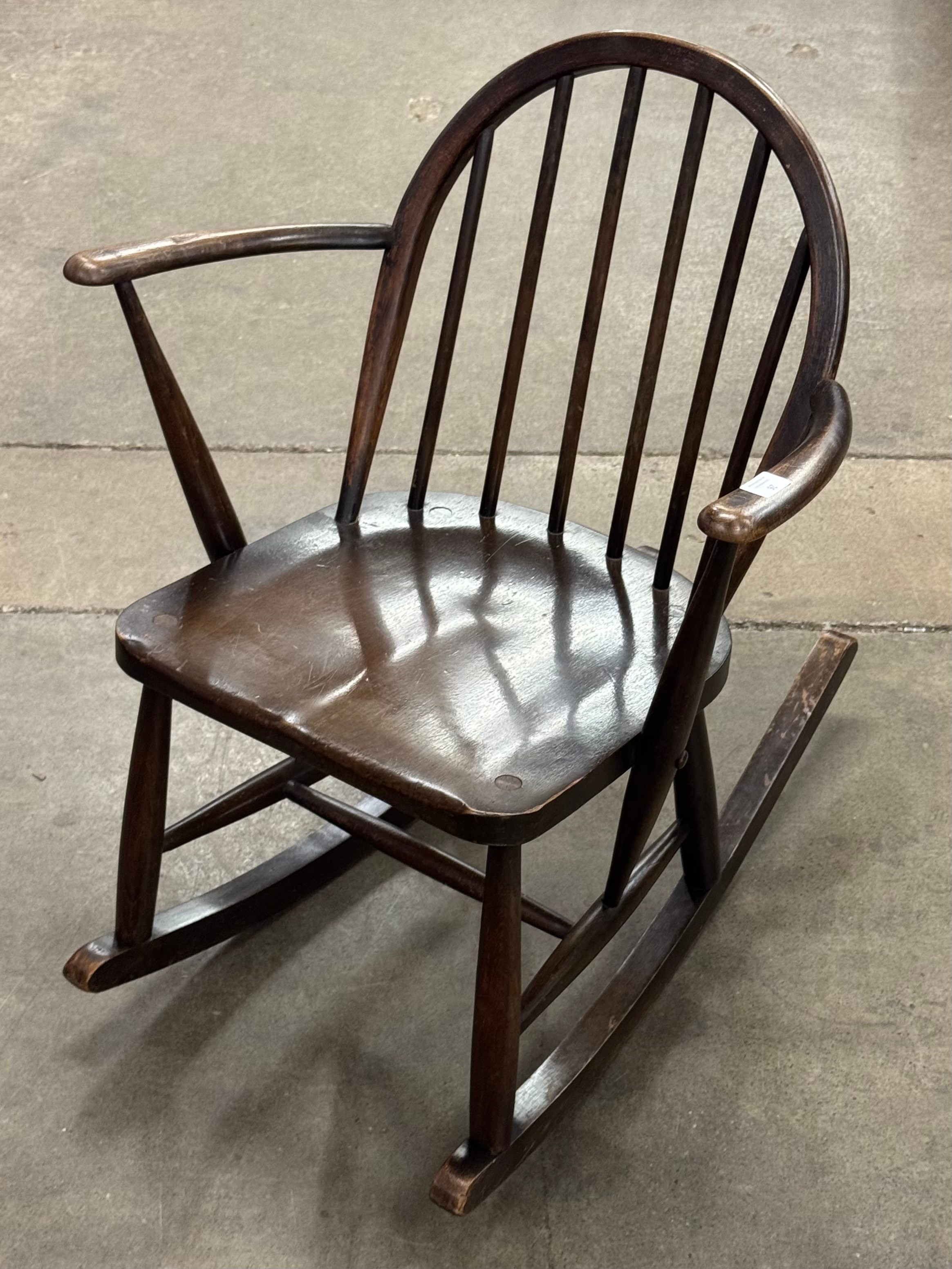 An Ercol Golden Dawn elm and beech child's Windsor rocking chair